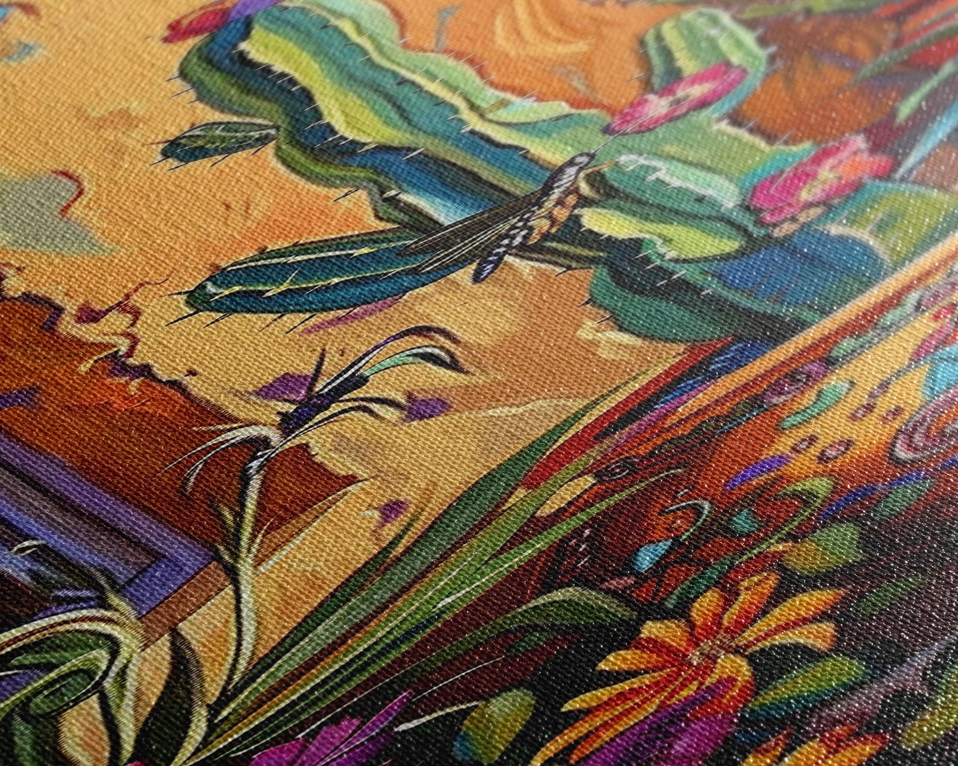 Colorful Canvas Painting of Cactus Framed, Botanical Wall Art Print, Spanish Inspired Canvas Painting, Long and Narrow Living Room Wall Art