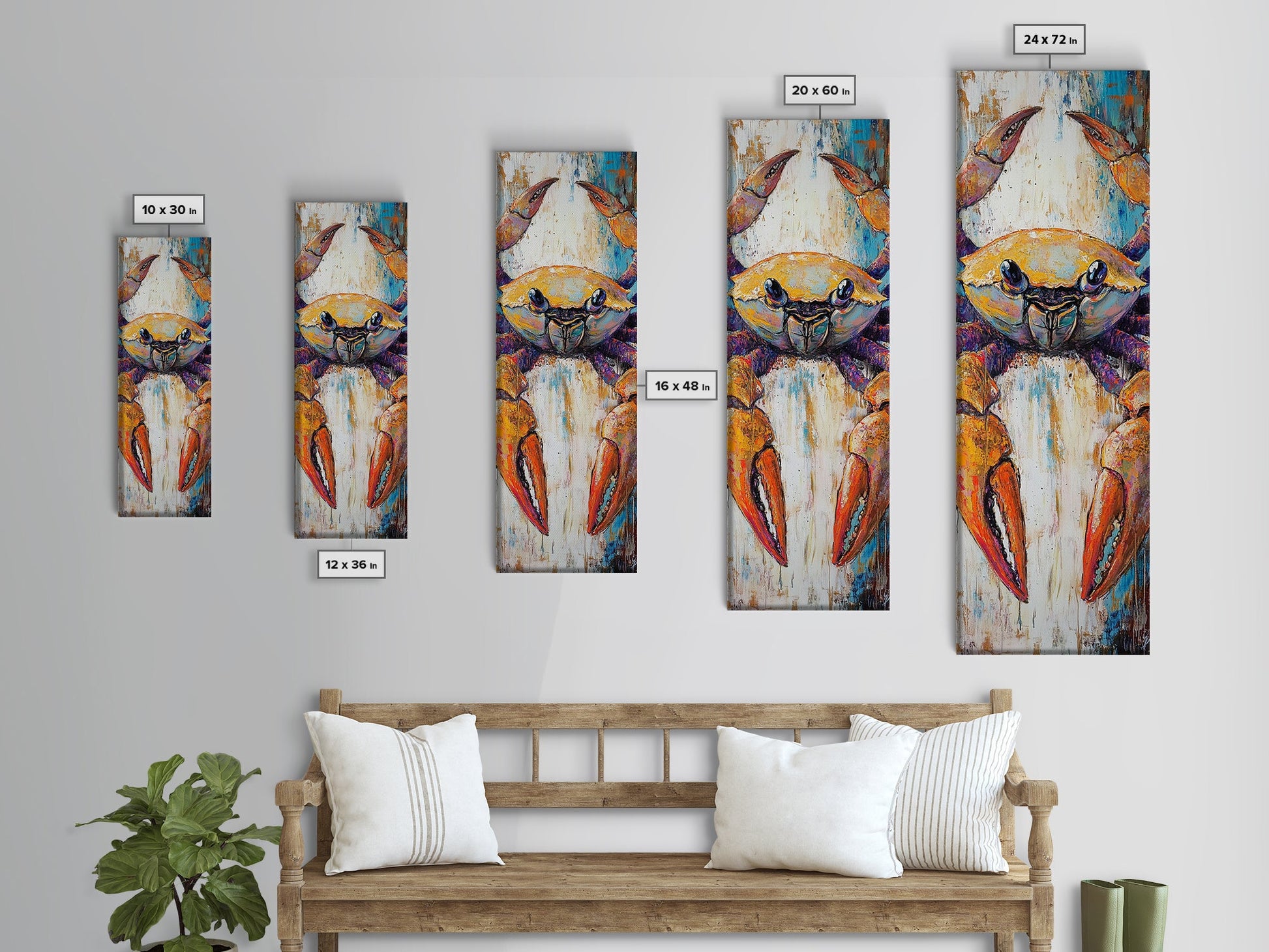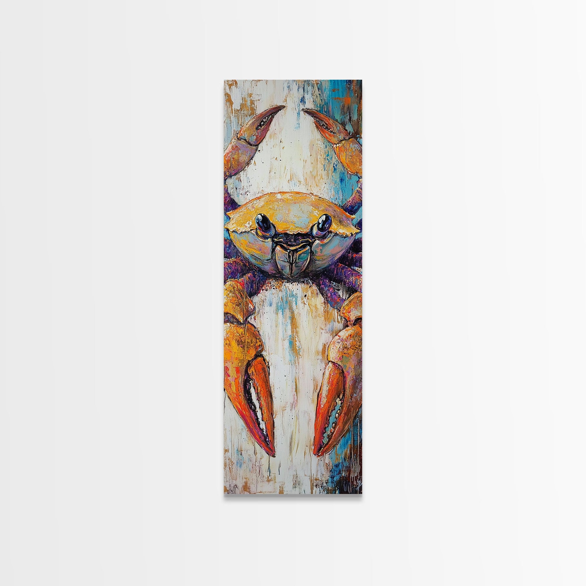 Colorful crab, coastal cowgirl wall art, crayfish painting, nautical wall art, framed canvas print, tall skinny art, rustic décor