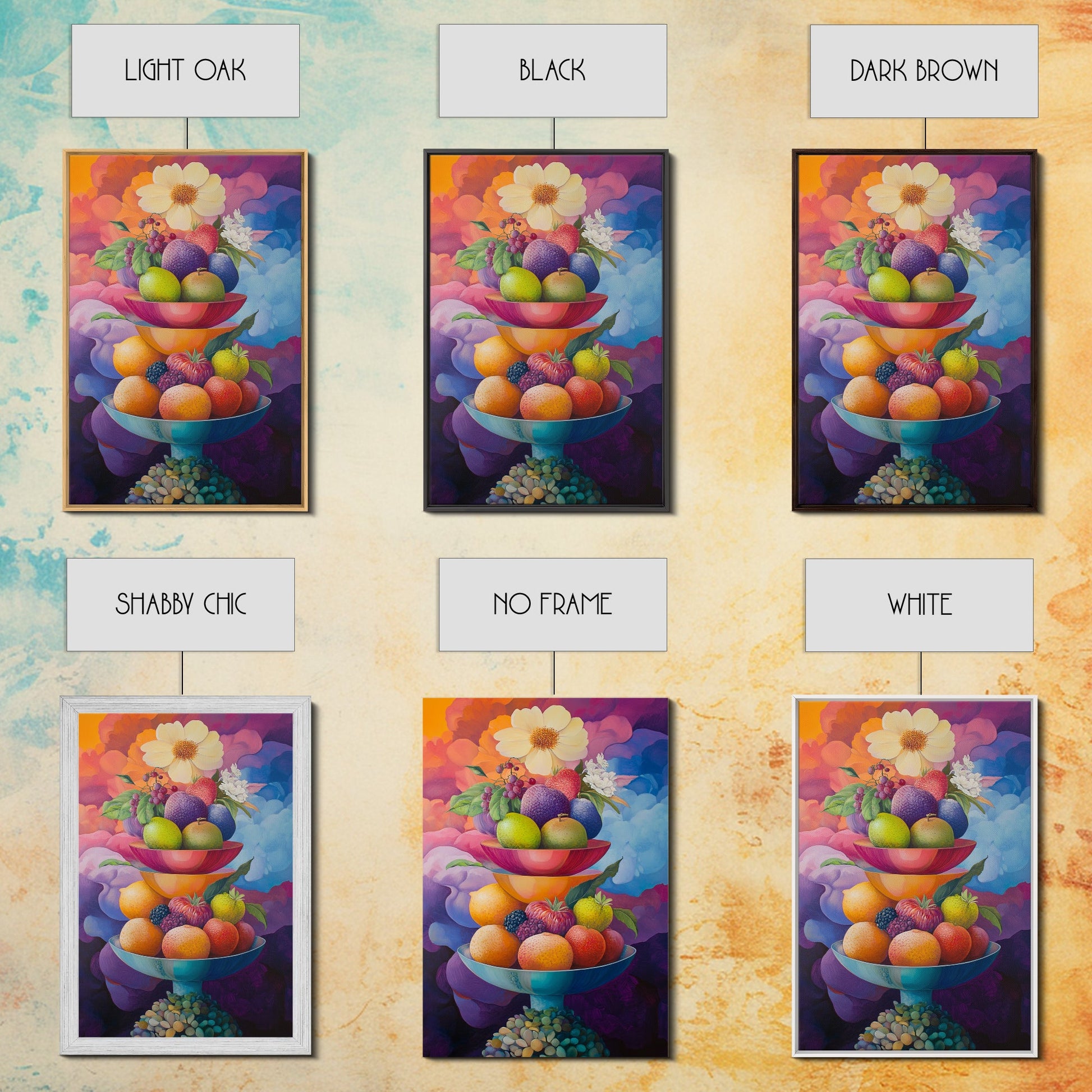 Colorful Fruit Bowl Canvas Print Featuring Still Life Painting, Whimsical Kitchen Art, Vibrant Food Review Wall Art for Dining Spaces