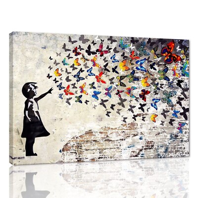 Colorful Graffiti Street Canvas Wall Art Funny Butterfly Banksy Street Art Mu...