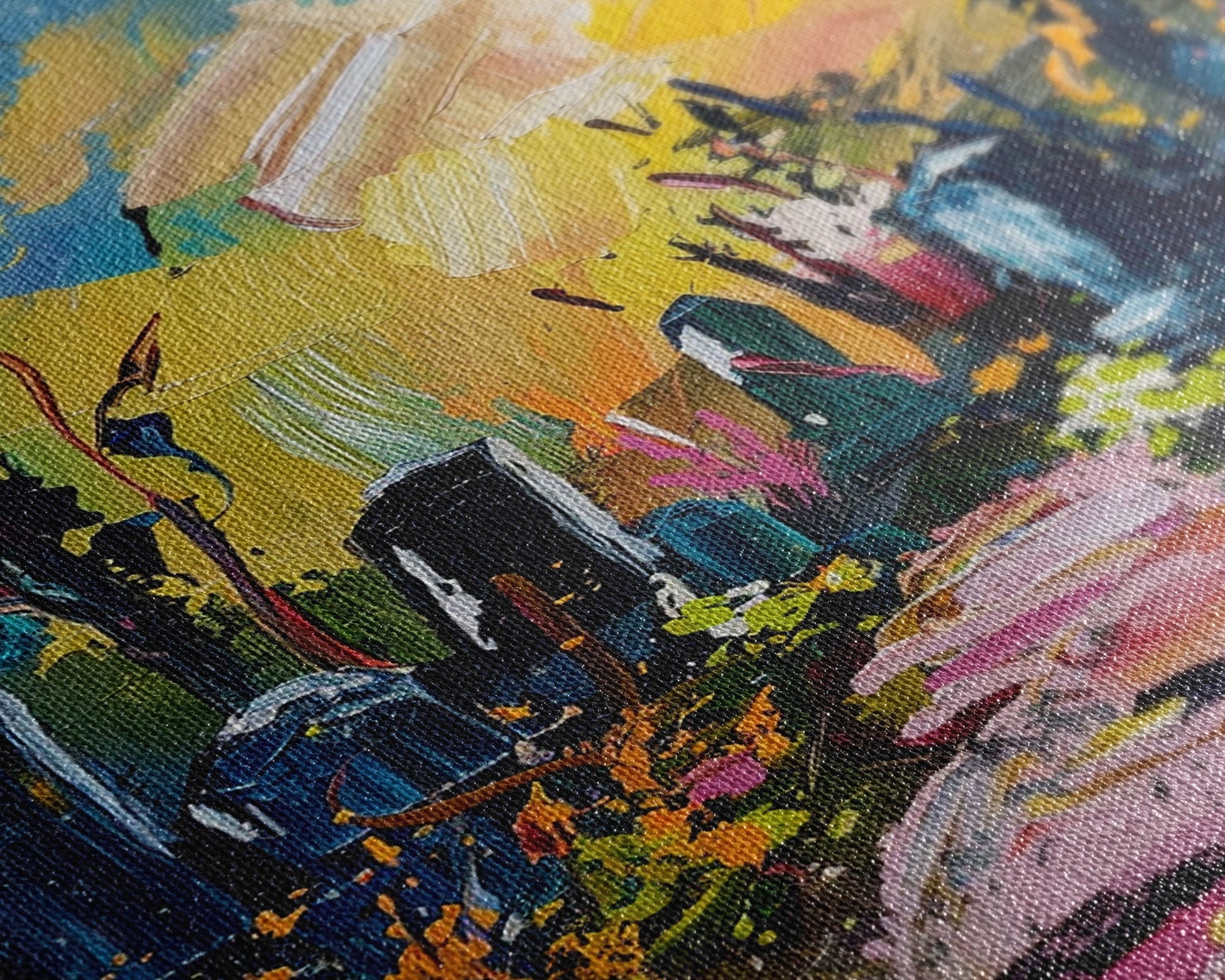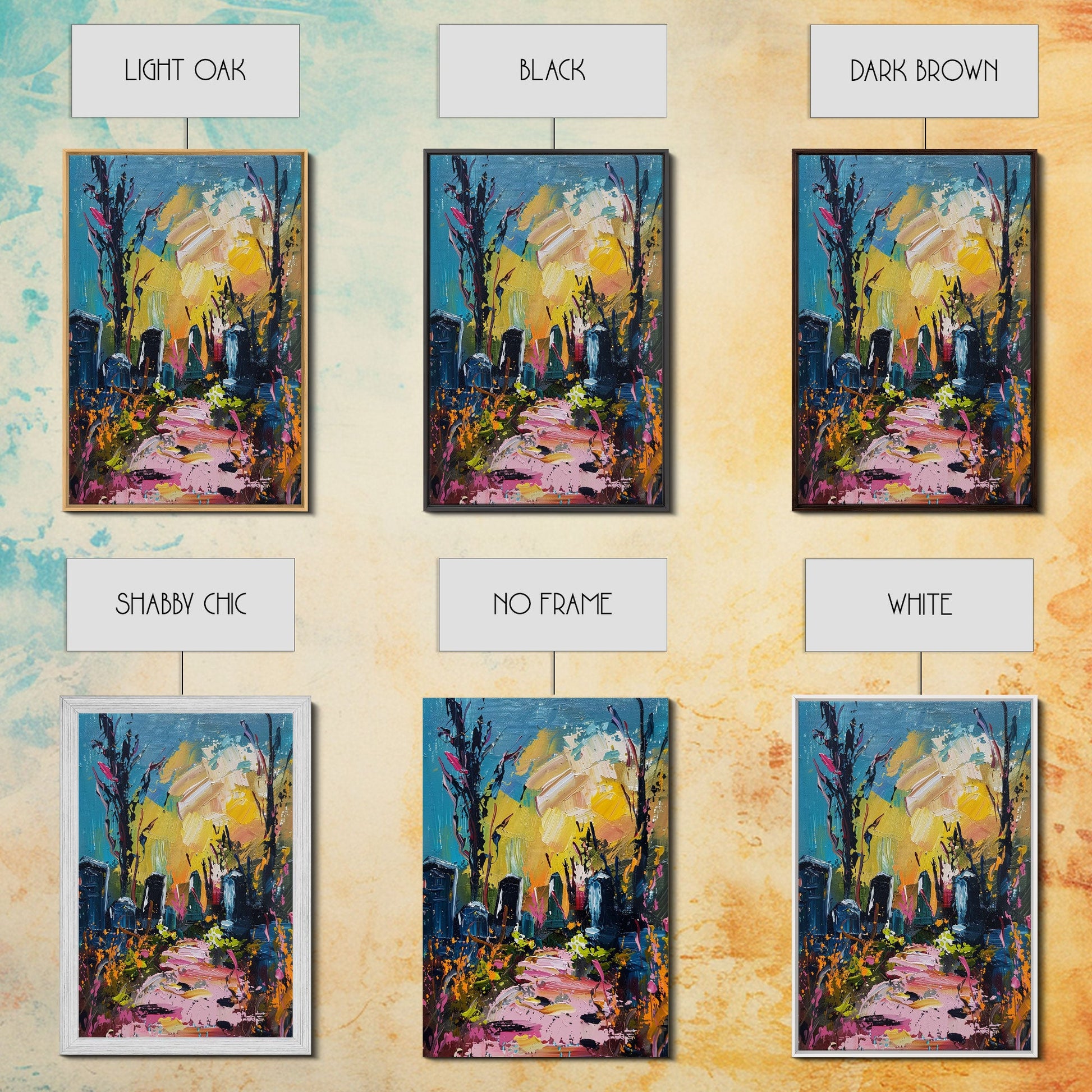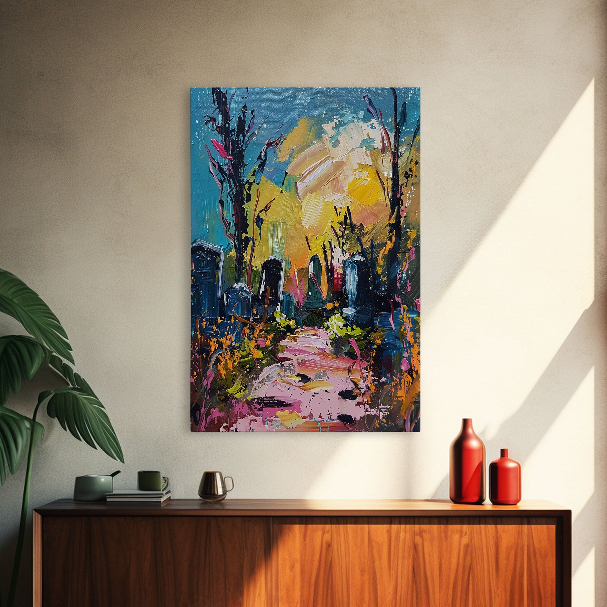 Colorful Haunted Cemetary, Springtime Halloween Mashup, Spooky Season Vibes, Framed Canvas Print, Haunted Graveyard
