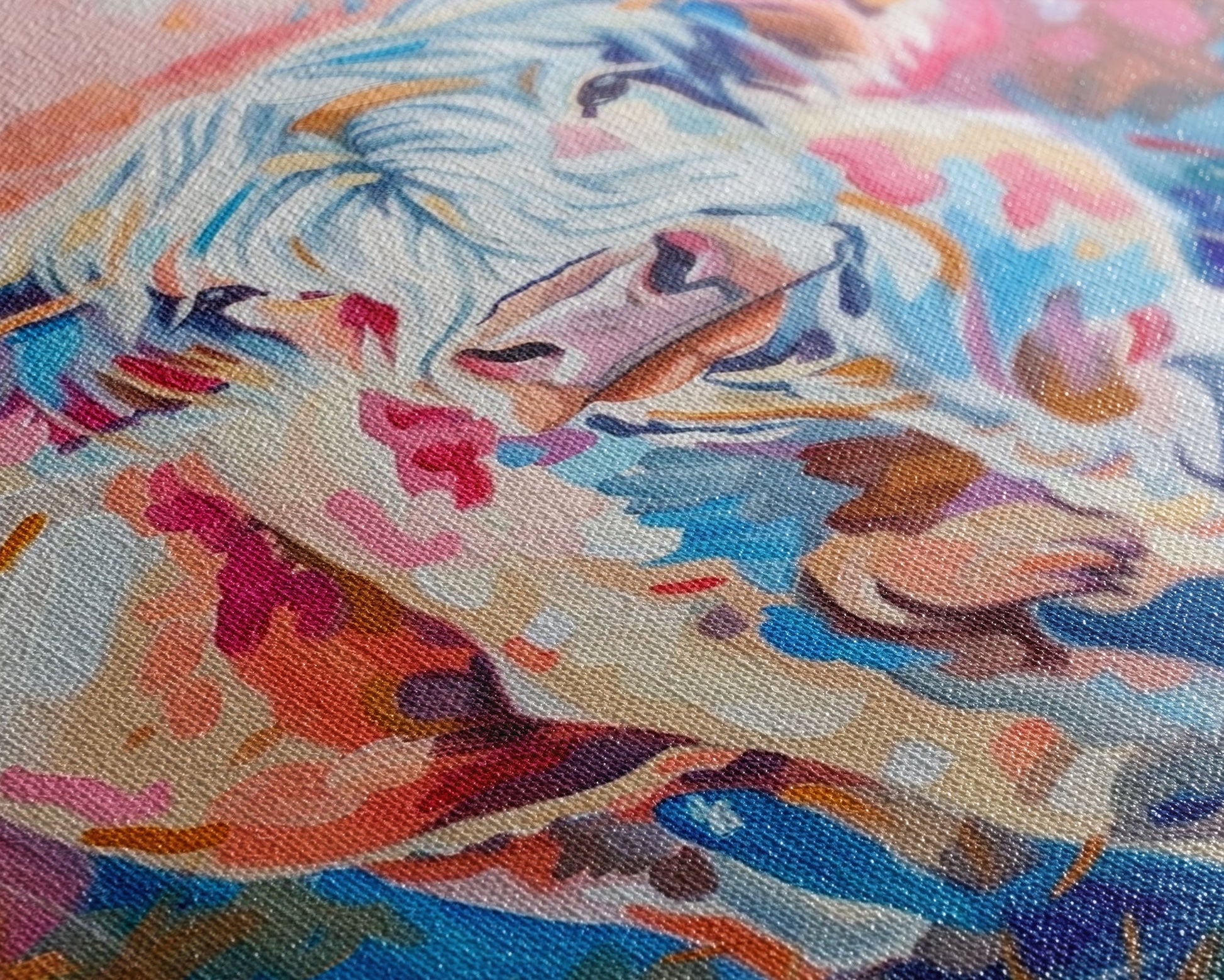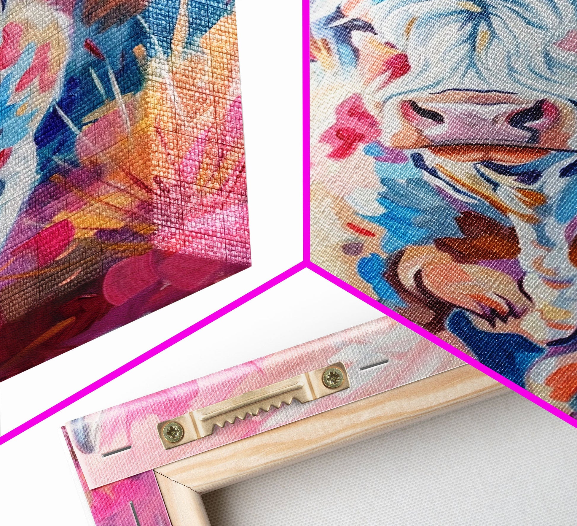 Colorful Highland Cow Art - Rustic Farmhouse Wall Decor, Vibrant Animal Painting, Living Room Art, Highland Cow Canvas Print
