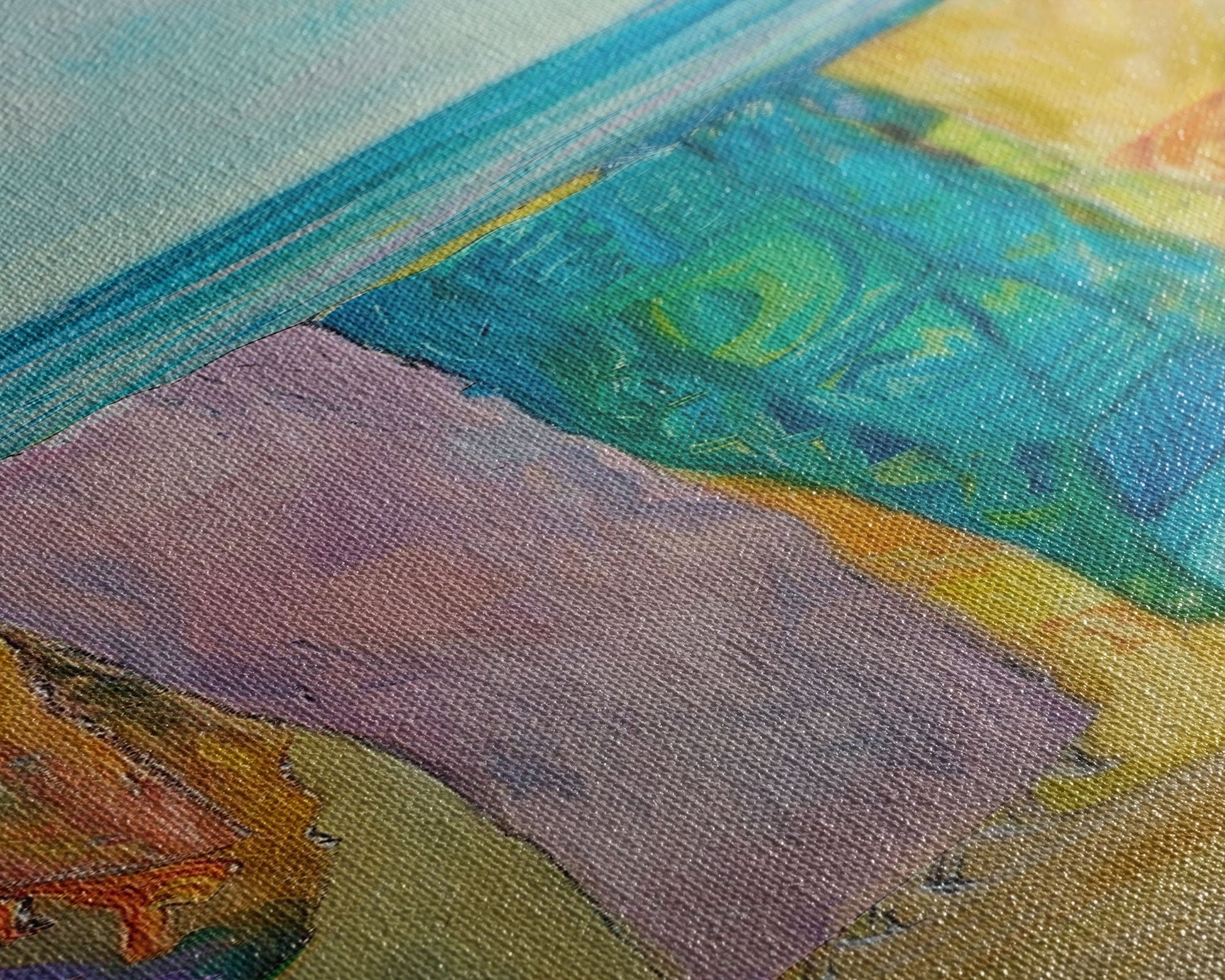 Most of our canvases are made in the USA, with the exception of canvases ordered with the light oak unstained frames, and any large canvases (24x48, 30x60, 16x48 and 20x60) ordered WITH a frame. These are temporarily made in and shipped from Europe, while we try to find a more consistent supplier in the USA.