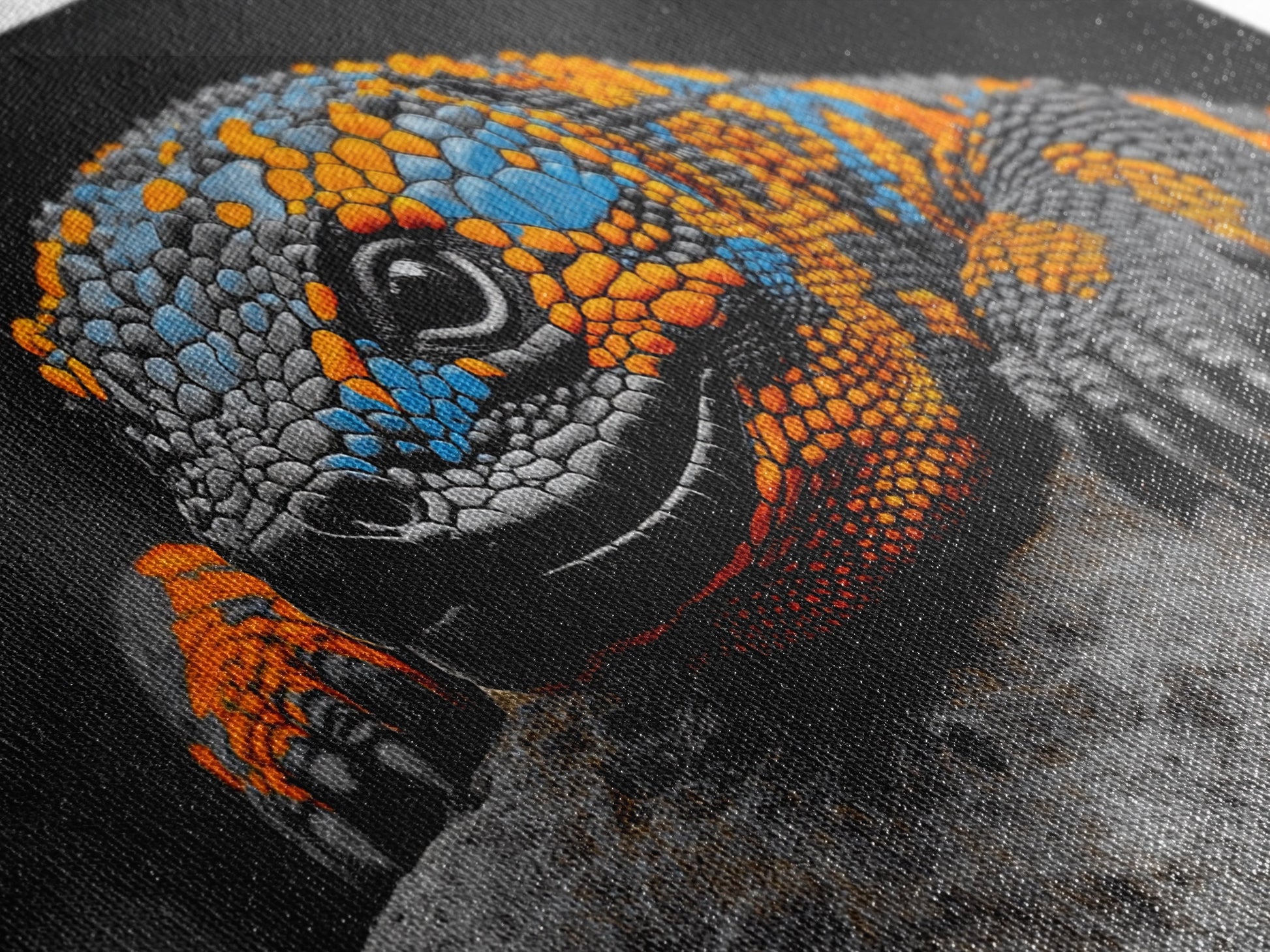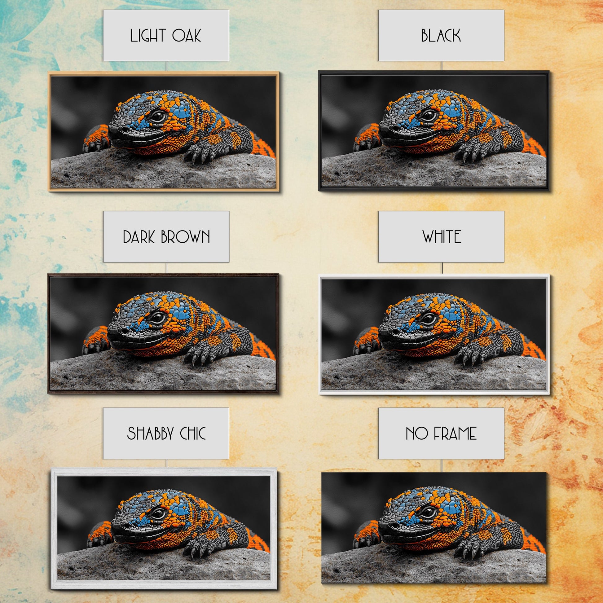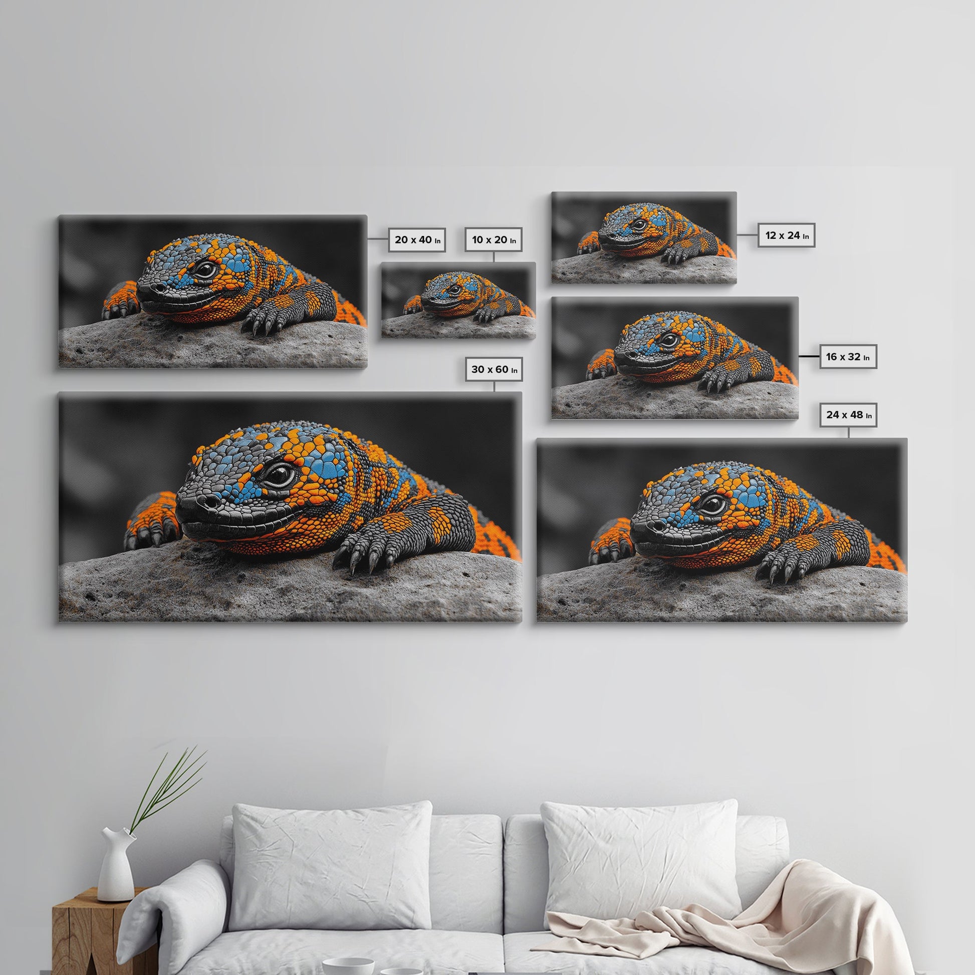 Colorful Lizard, Wildlife Closeup, Exotic Creature, Nature Bold, Framed Canvas Print, Reptile Lover Gift, Office Wall Art, Vibrant Wildlife Art