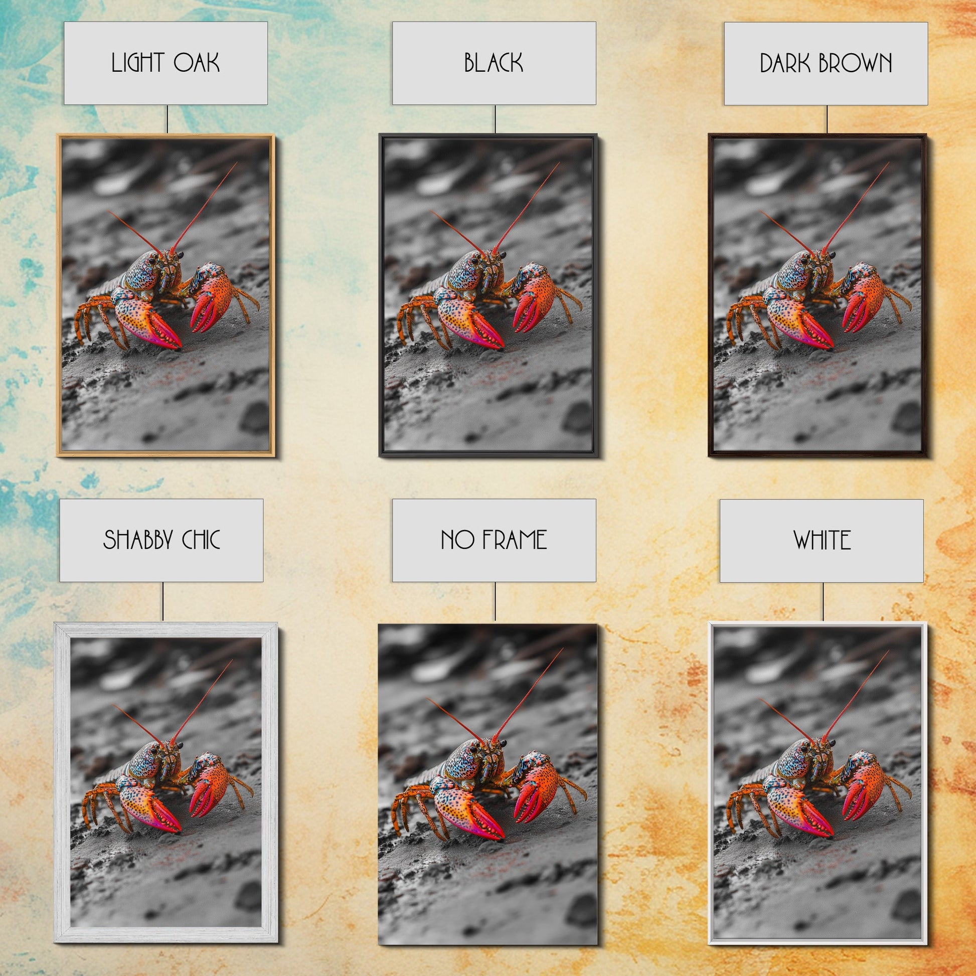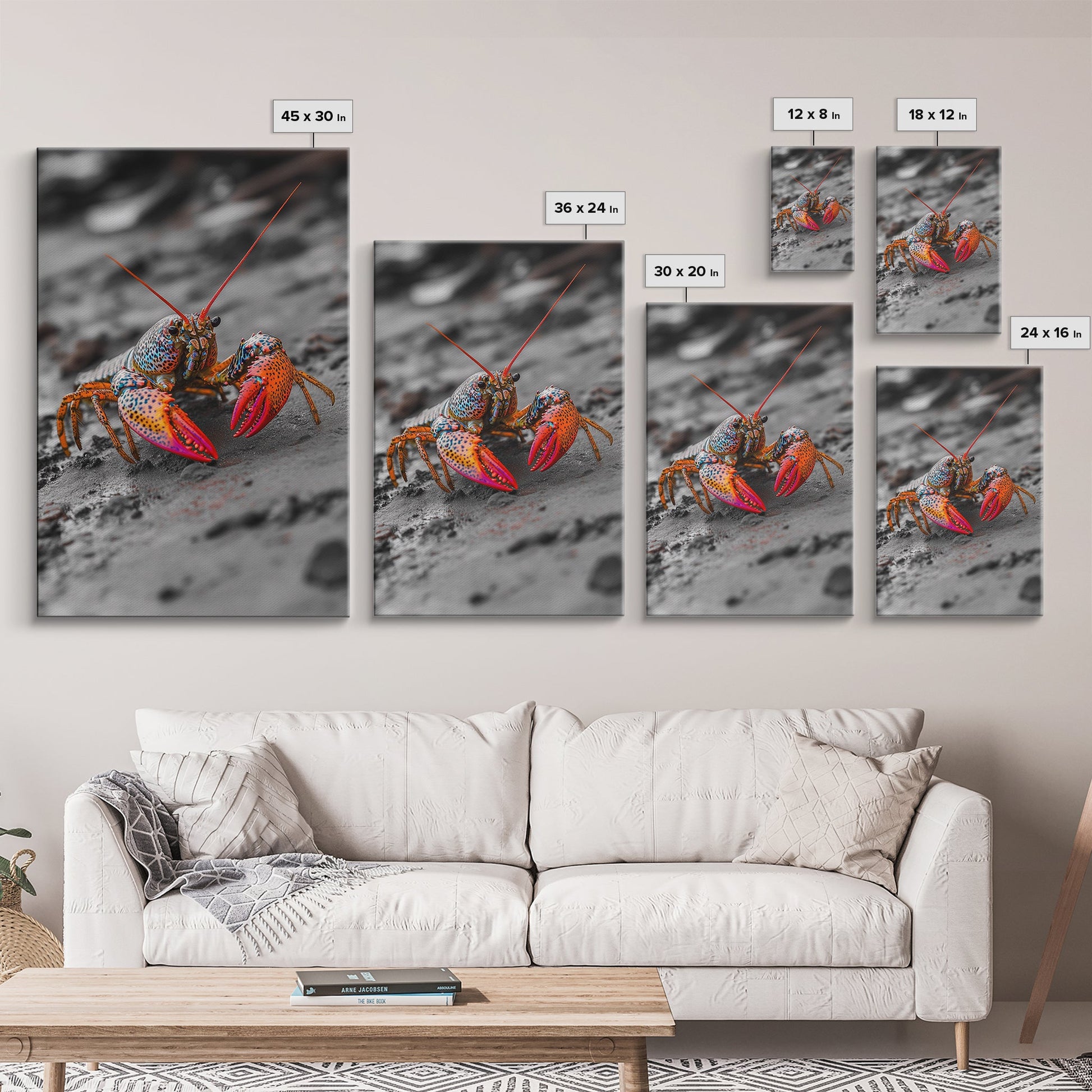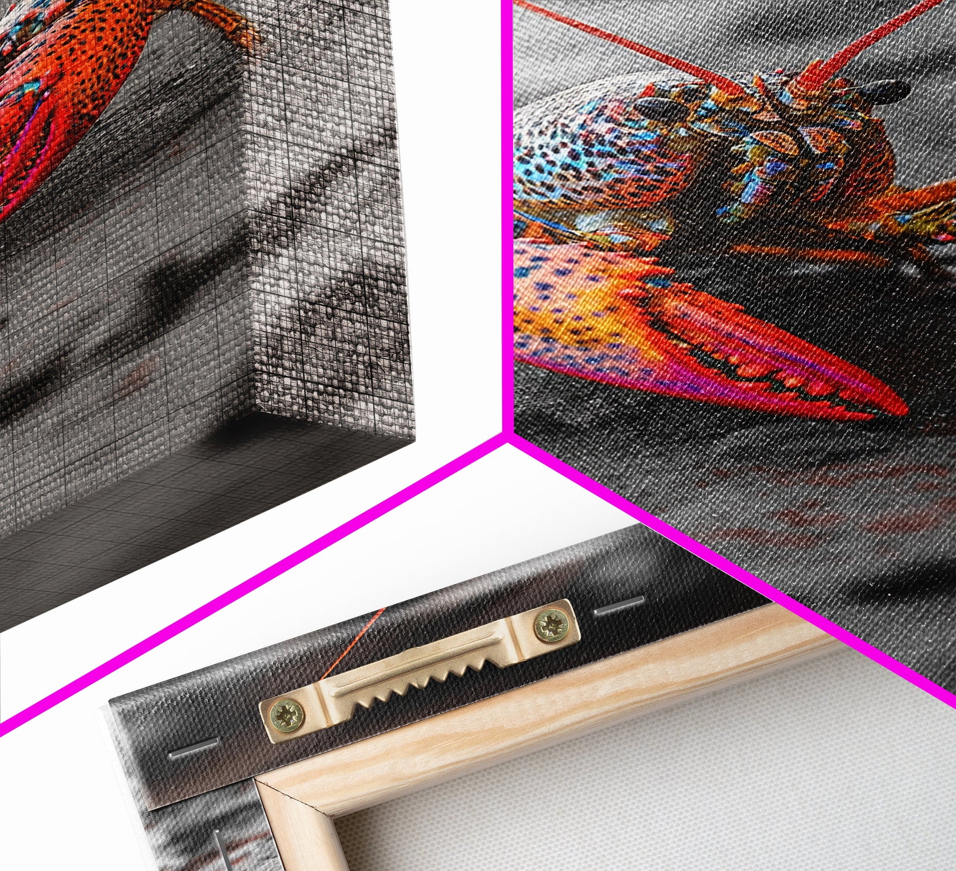 Colorful Lobster, Beach Wildlife, Close-Up Macro Art, Framed Canvas Print, Kitchen Wall Art, Coastal Marine Decor, Vibrant Style