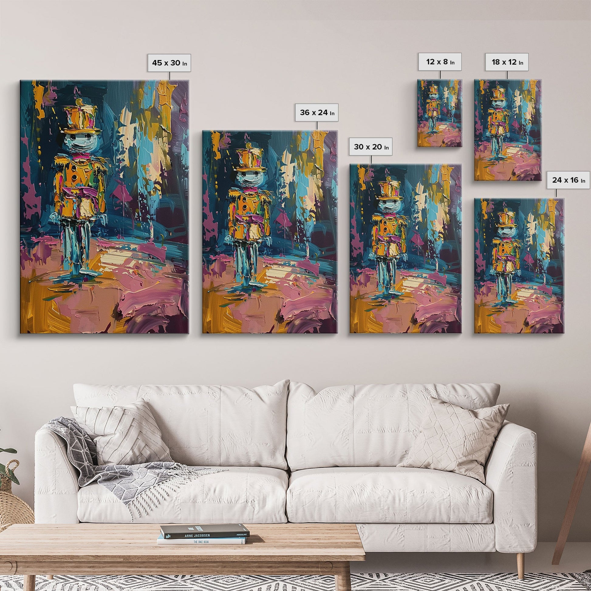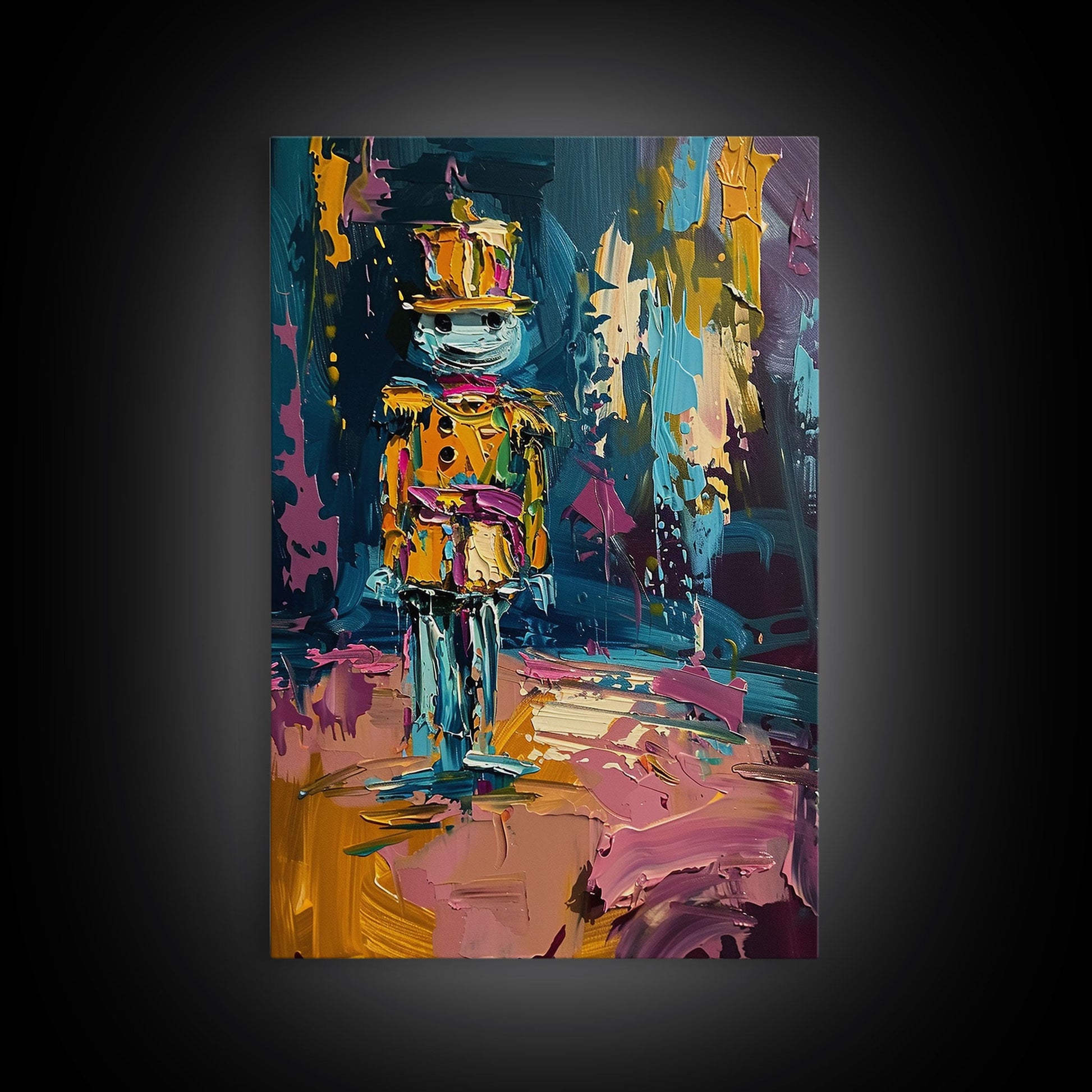 Colorful Skeleton Nutcracker Framed Canvas Print, Halloween Nutcracker Decor, Spooky Toy Art, Skeleton Wall Art, Haunted Nutcracker Print