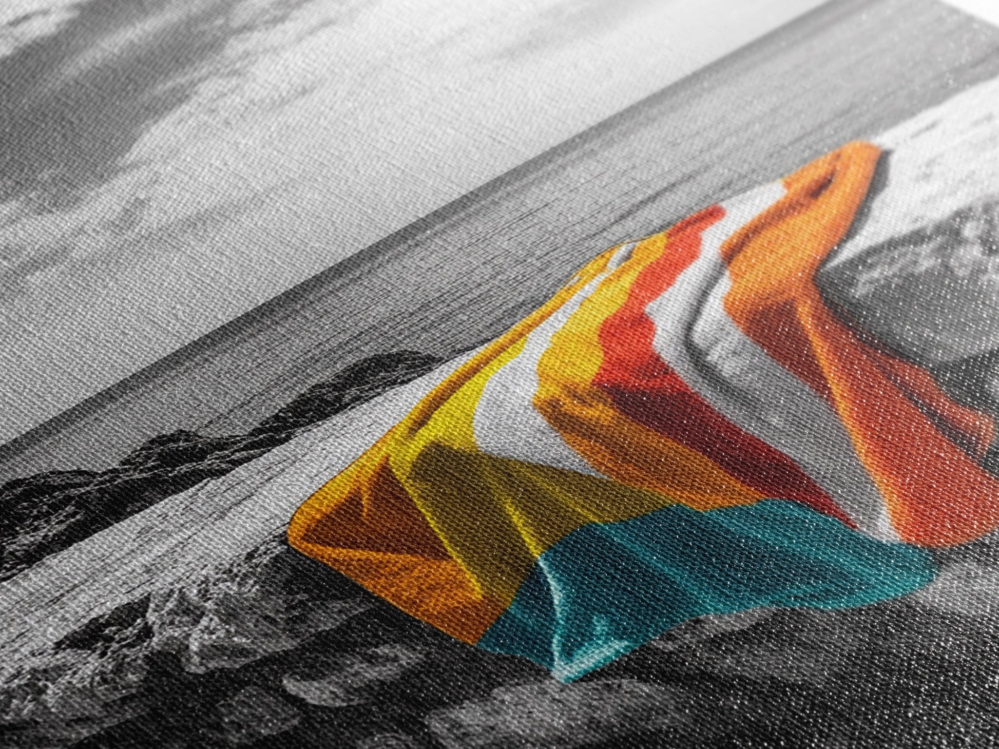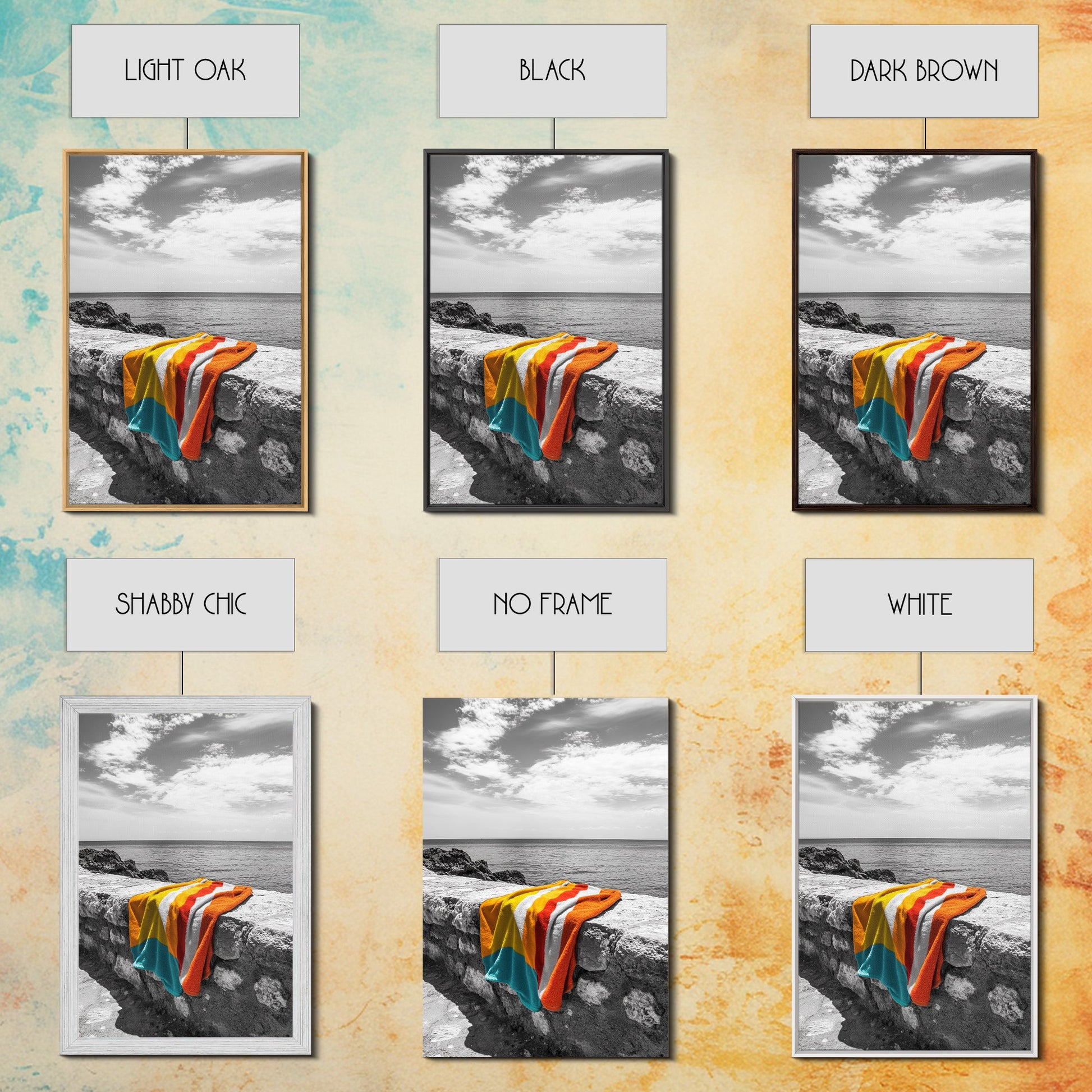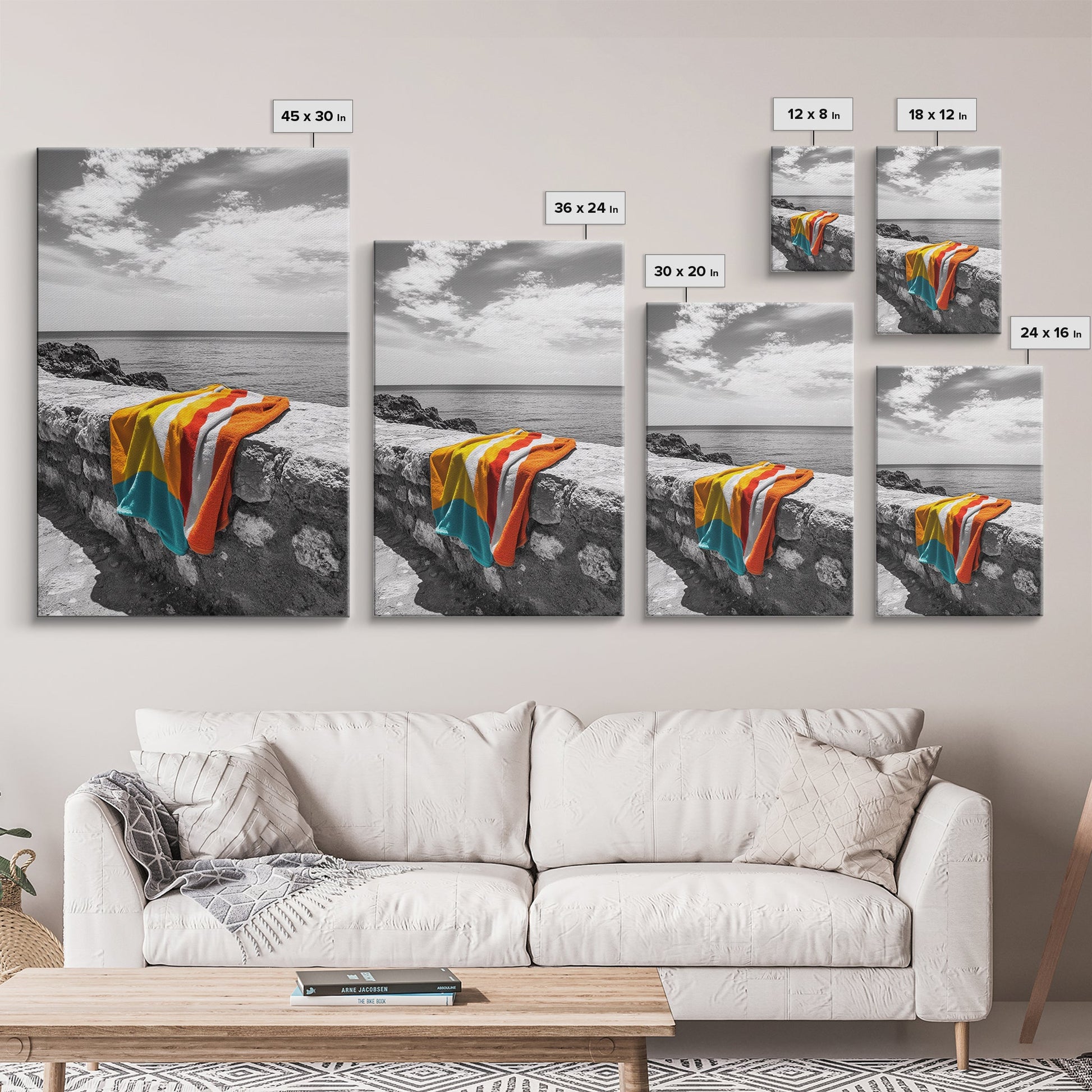 Colorful Towel, Coastal Vibes, Seaside Style, Bold Decor, Framed Canvas Print vibrant beach towel photo, bathroom wall art, summer art