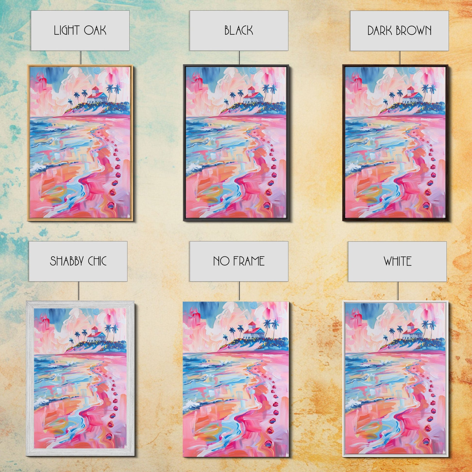 Colorful Tropical Beach Scene with Palm Tree - Framed Canvas Print, Vibrant Coastal Art, Living Room Decor, Beach Wall Art