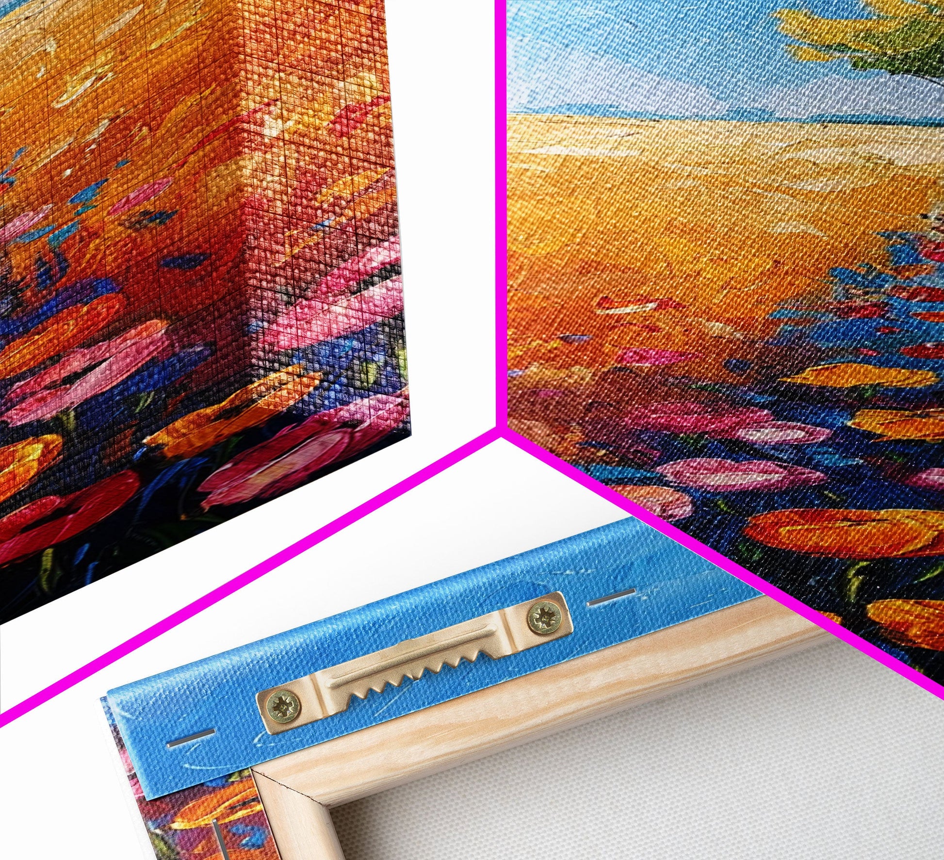 *SHIPPING: Every canvas is carefully wrapped in bubble wrap and foam corner protectors, and shipped fully assembled and ready to hang with sawtooth hangers in a flat box. All you need is a hammer!