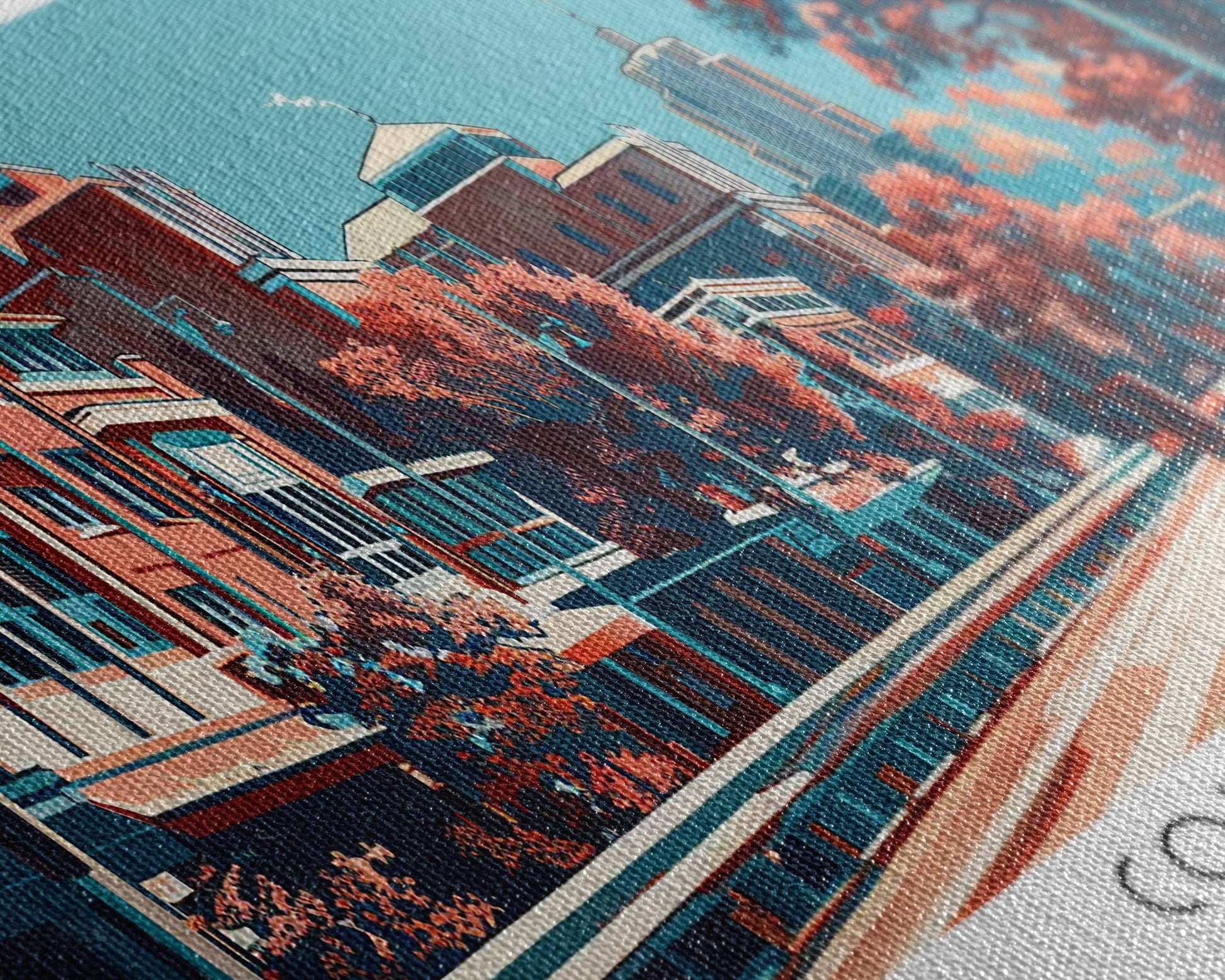 Columbus Georgia Panoramic Painting, Framed Canvas Print, Mid Century Modern Wall Art, Retro Pop Art Travel Poster, Home Decor, City Art
