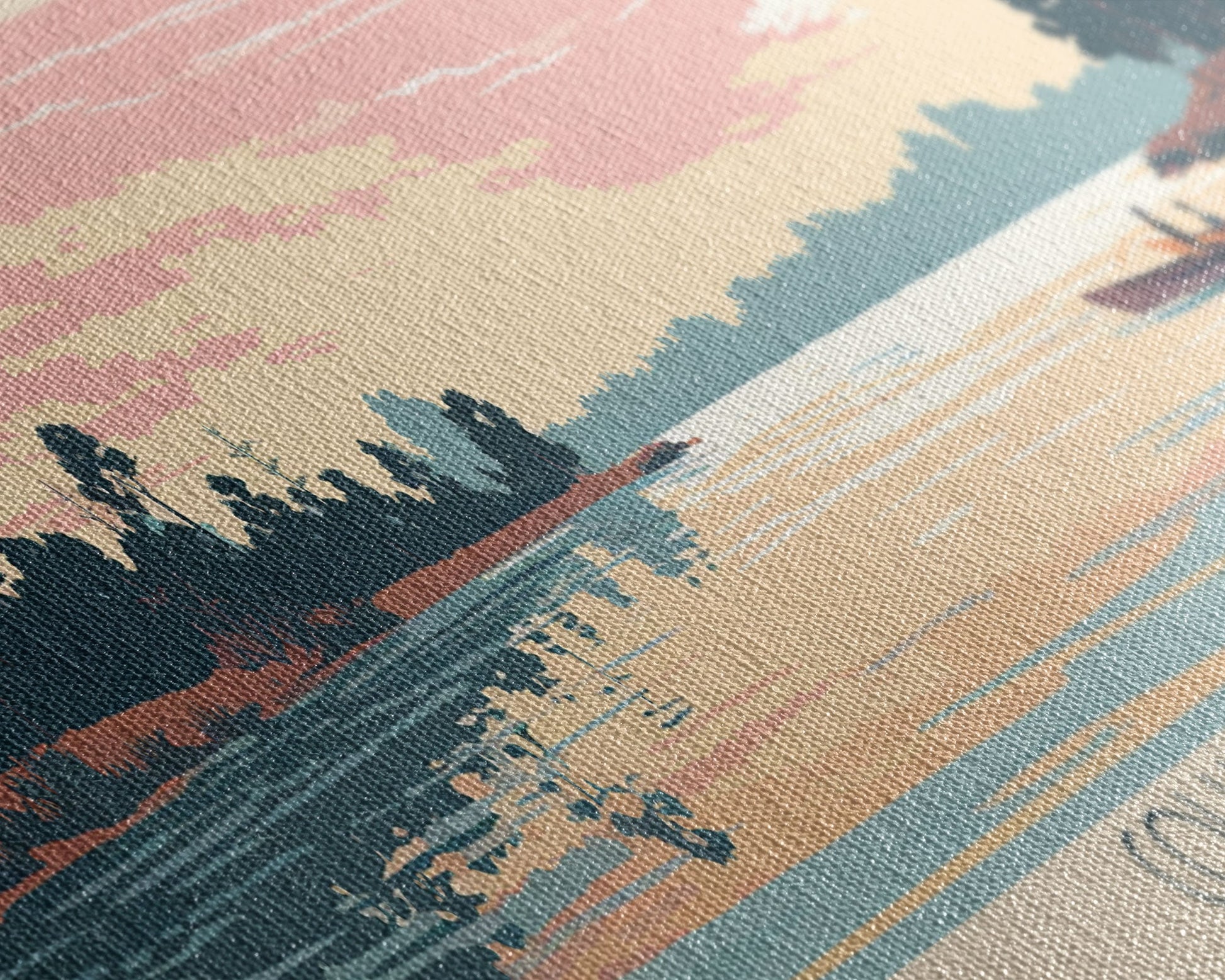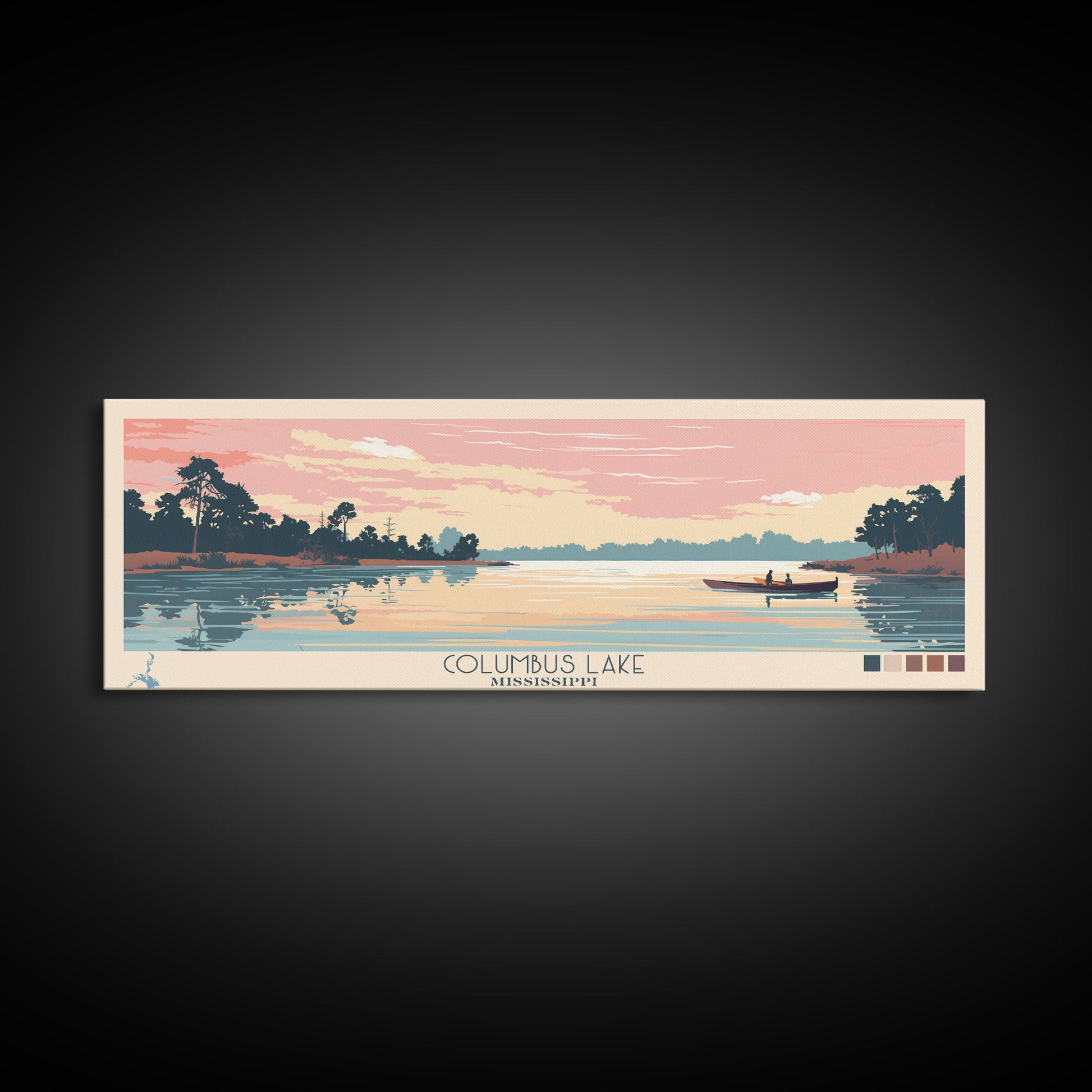 Columbus Lake Mississippi Framed Canvas Print, Midcentury Modern Panoramic Wall Art, Living Room Decor, Pop Art, Travel Poster Art, Scenic Nature Painting