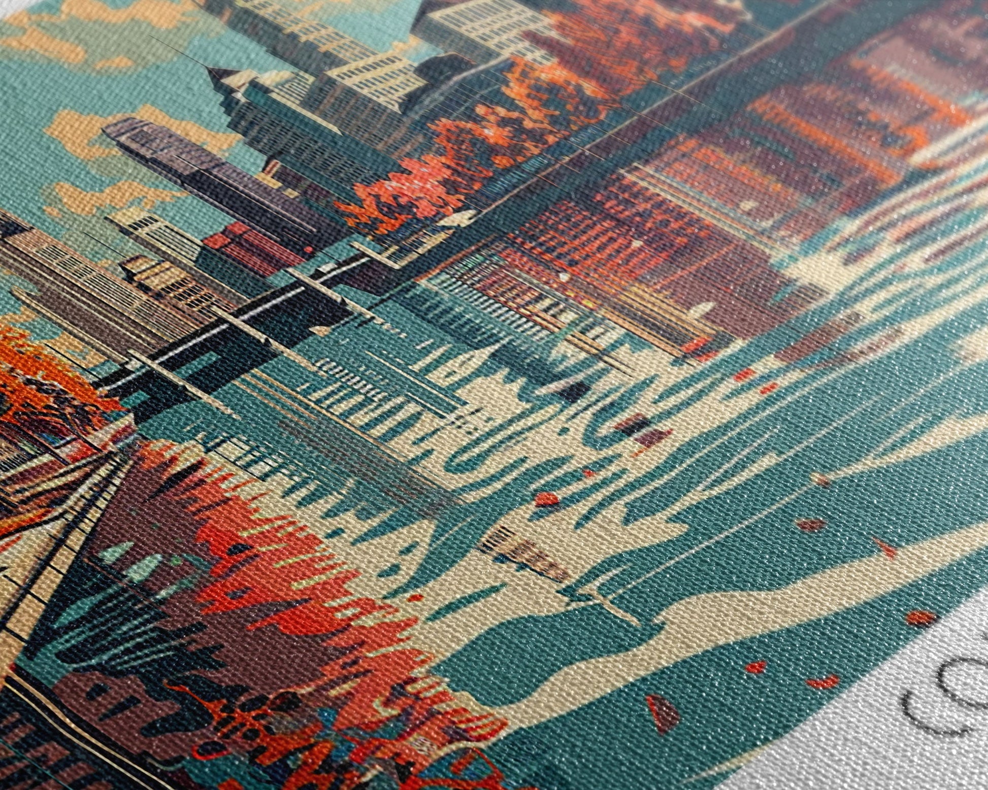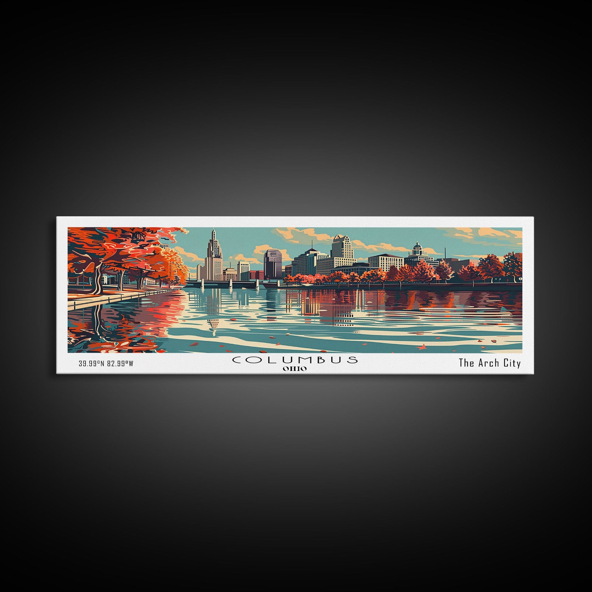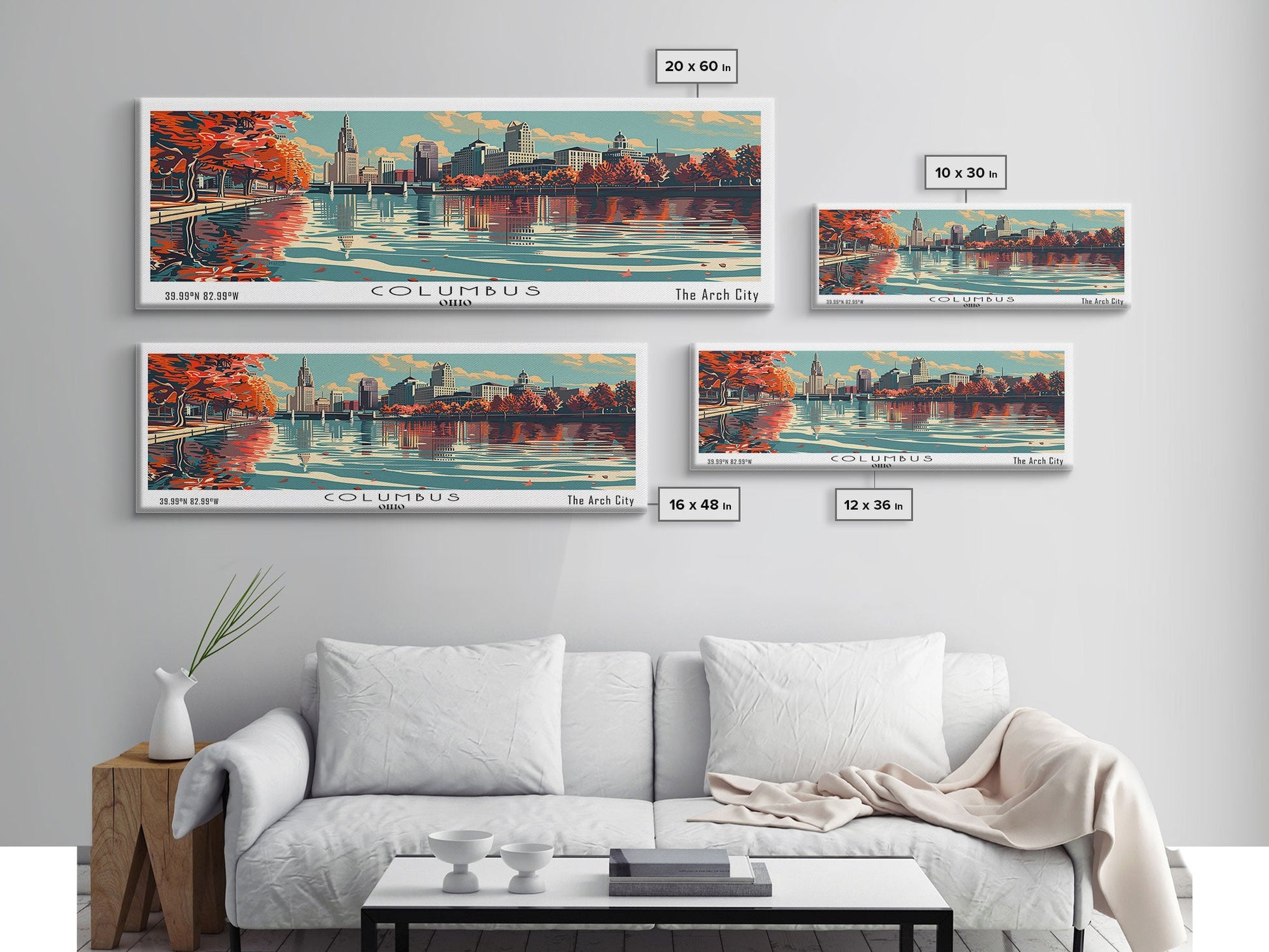 Columbus Ohio Panoramic Painting, Framed Canvas Print, Mid Century Modern Wall Art, Retro Pop Art Travel Poster, Living Room Decor, City Art