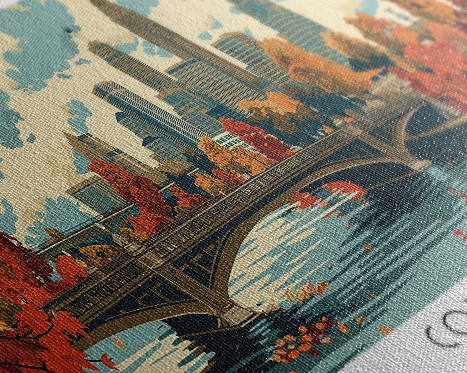 Columbus Ohio Panoramic Wall Art, Mid Century Modern Framed Canvas Print, Retro Pop Art Travel Poster, City Living Room Decor, Office Wall Art