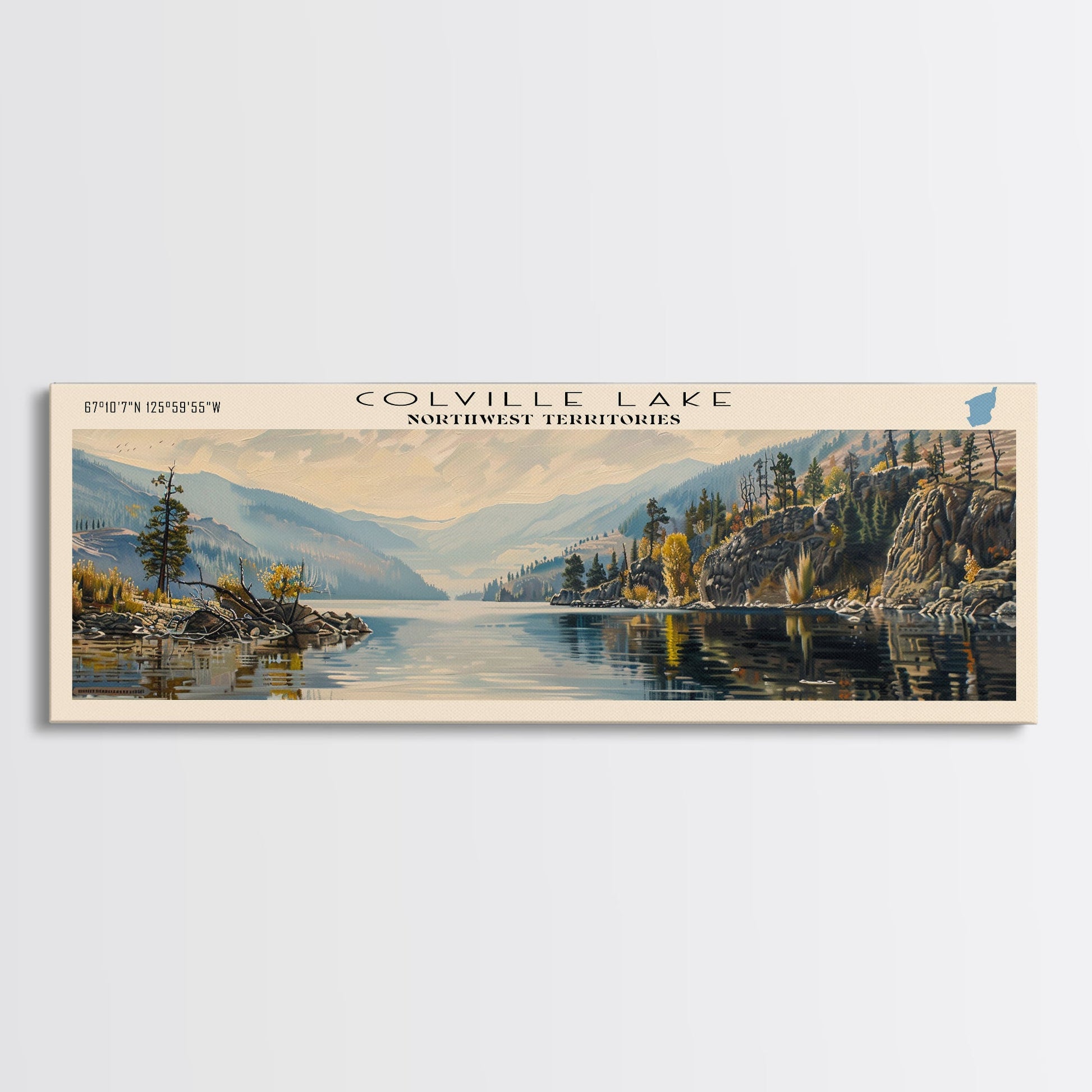Colville Lake Framed Canvas Print, Lake House Decor, Panoramic Wide Art, Travel Poster, Modern Lake Painting, Nature Art