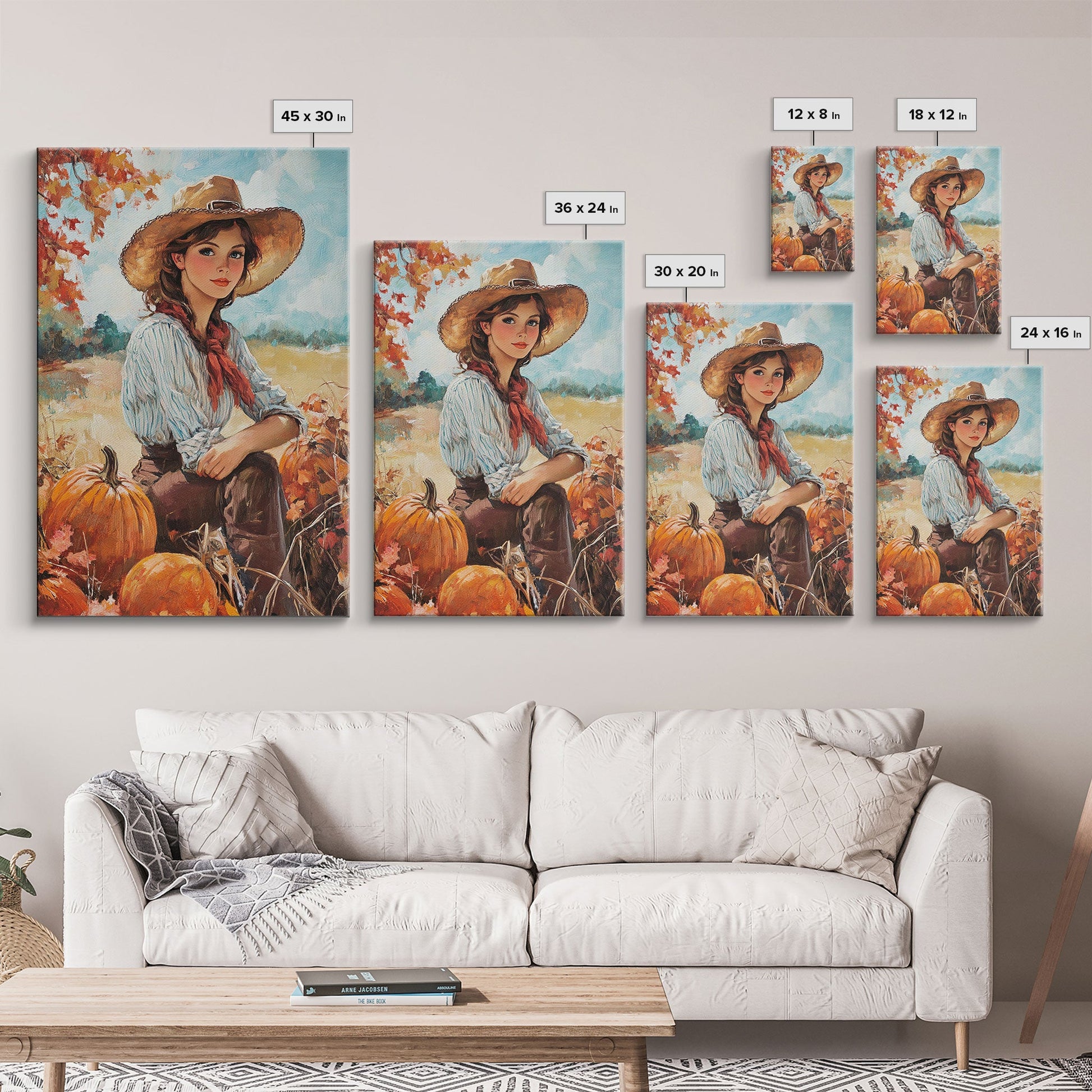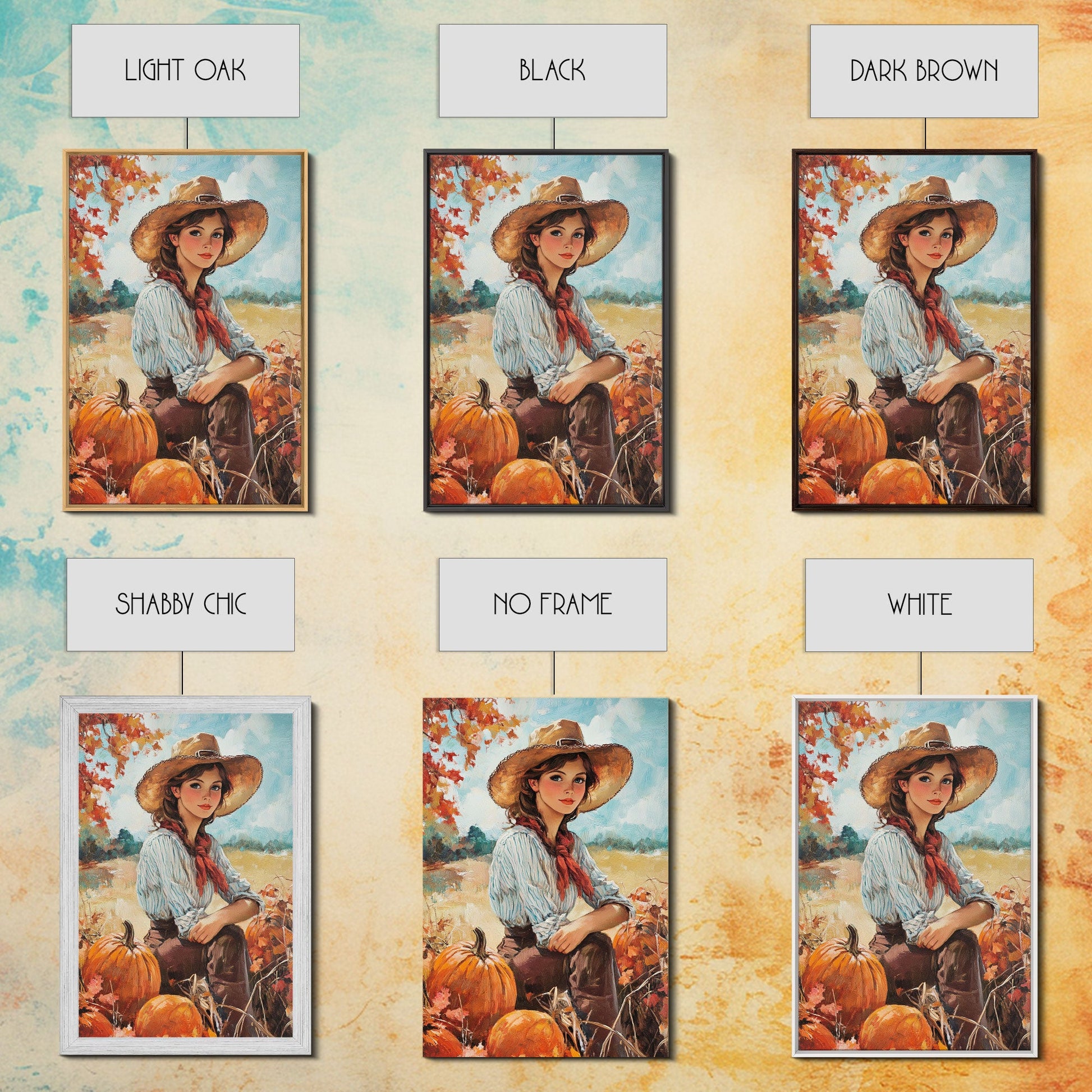 Country fall harvest framed canvas print pumpkins and a serene autumn landscape perfect seasonal wall art for rustic farmhouse home decor