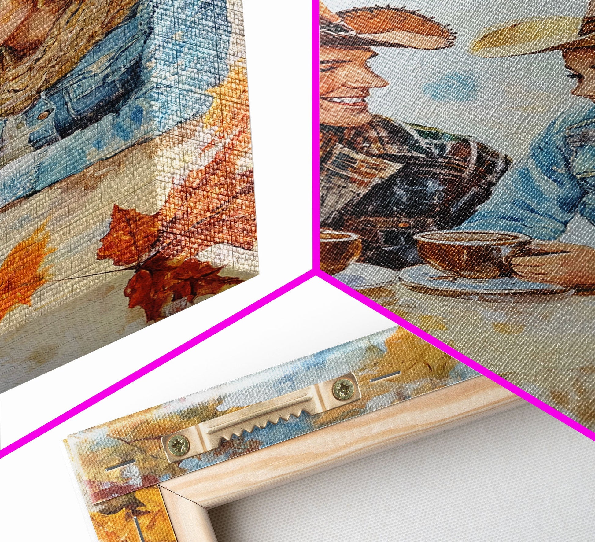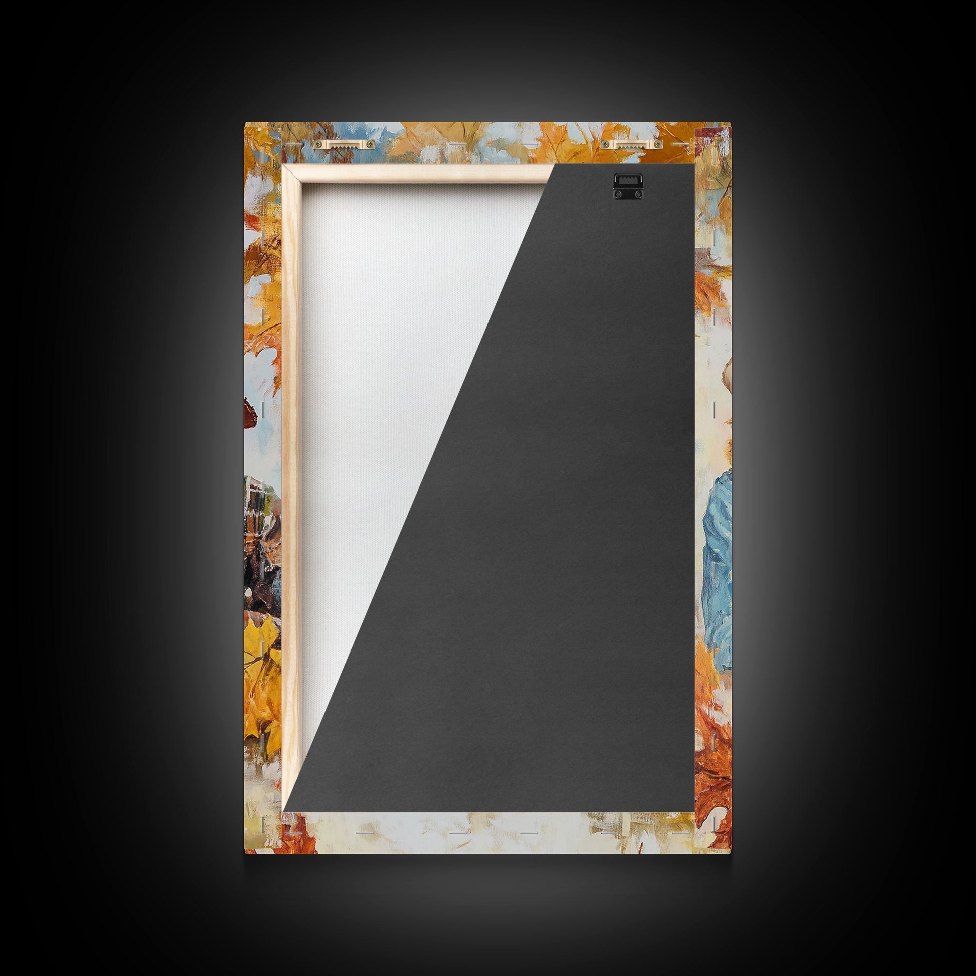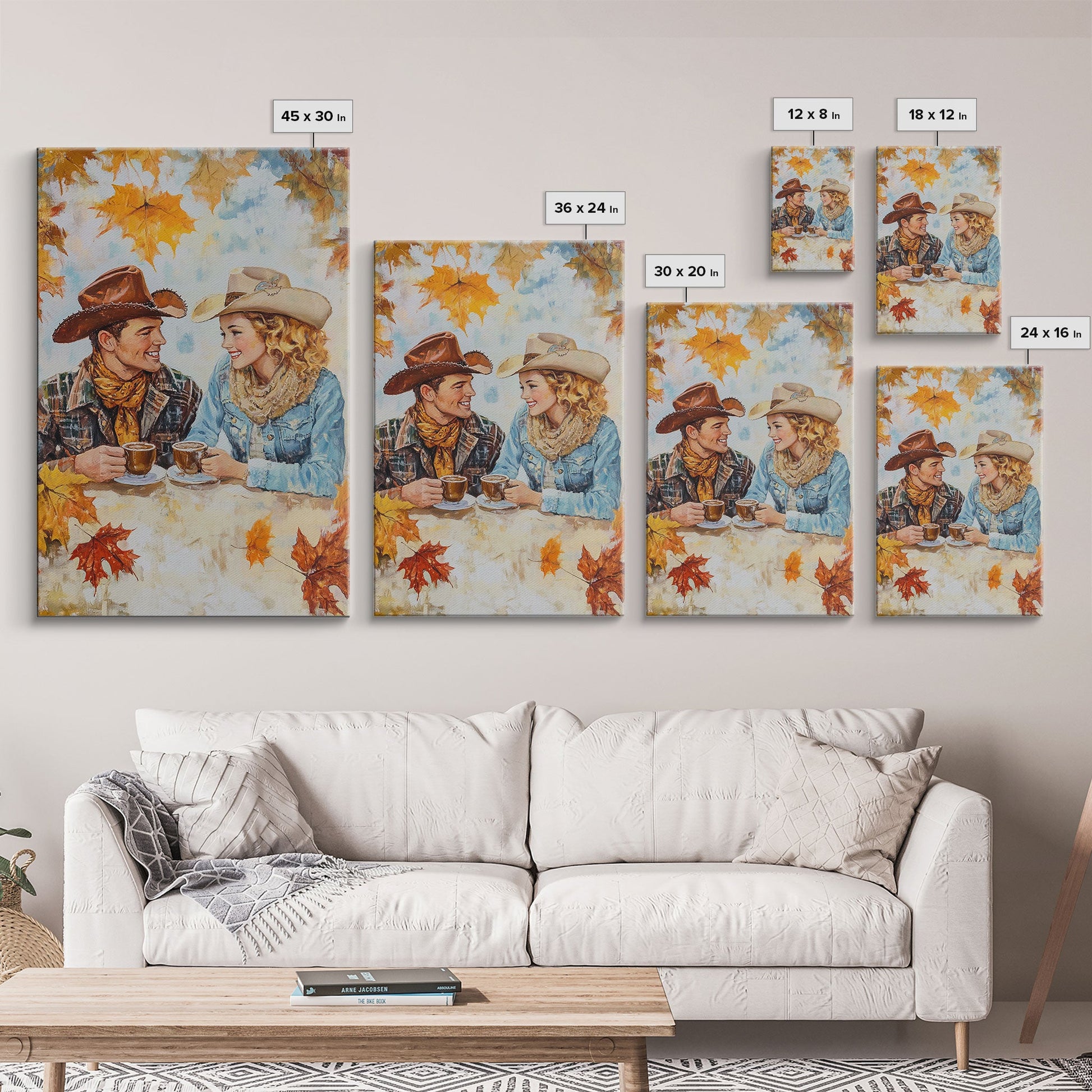 Cowboy and Cowgirl Fall Scene Framed Canvas Print - 2024 Rustic Autumn Love Country Art Gift Idea Fall Wall Decor