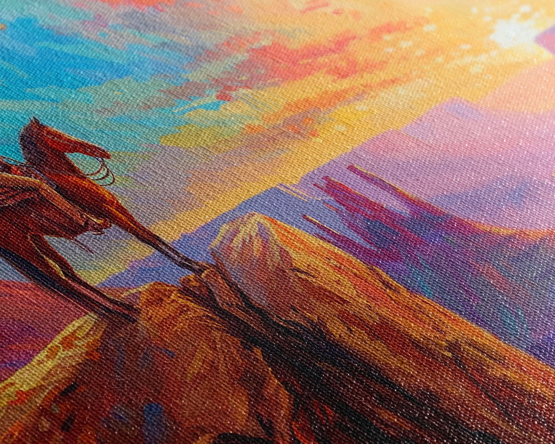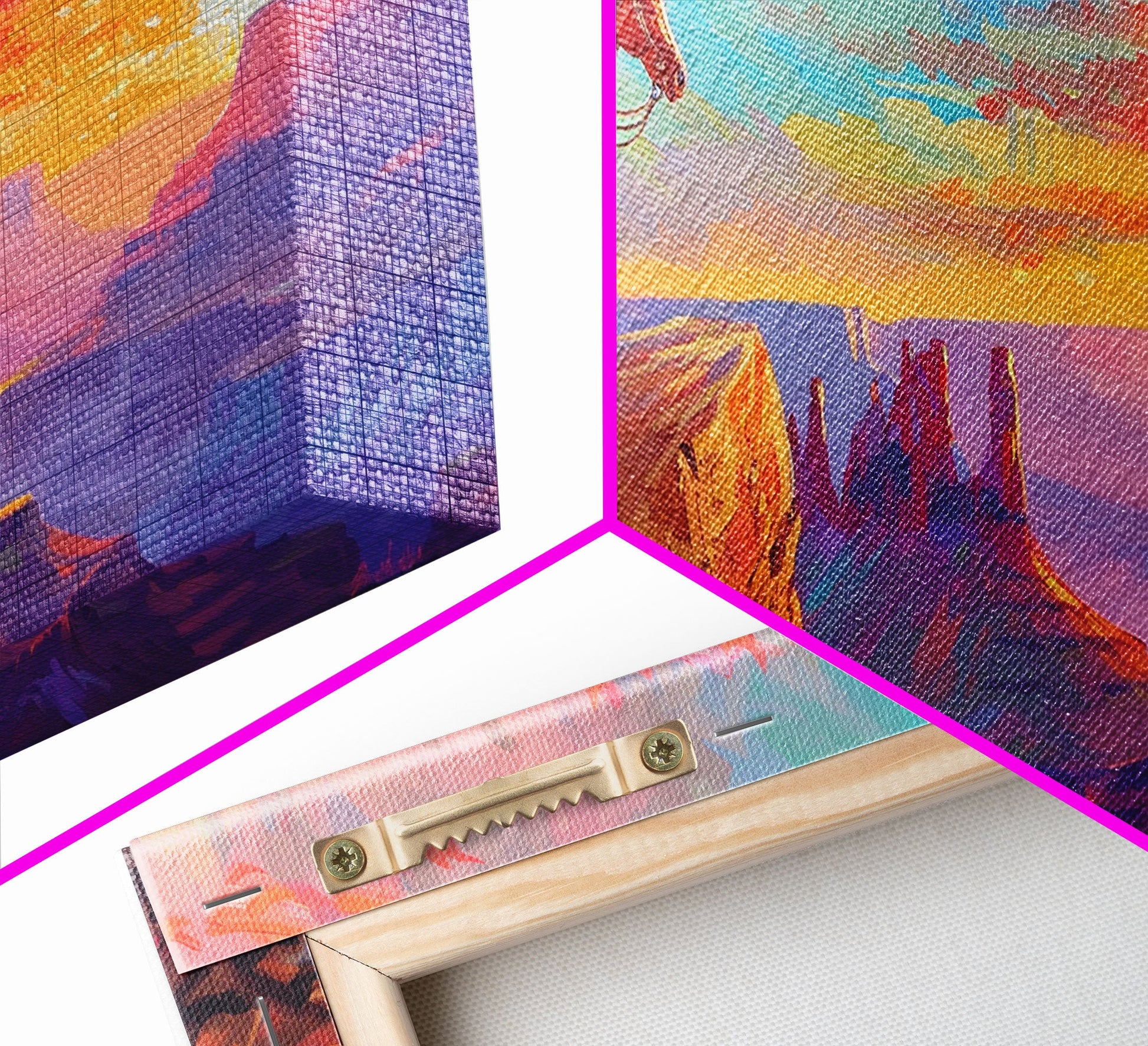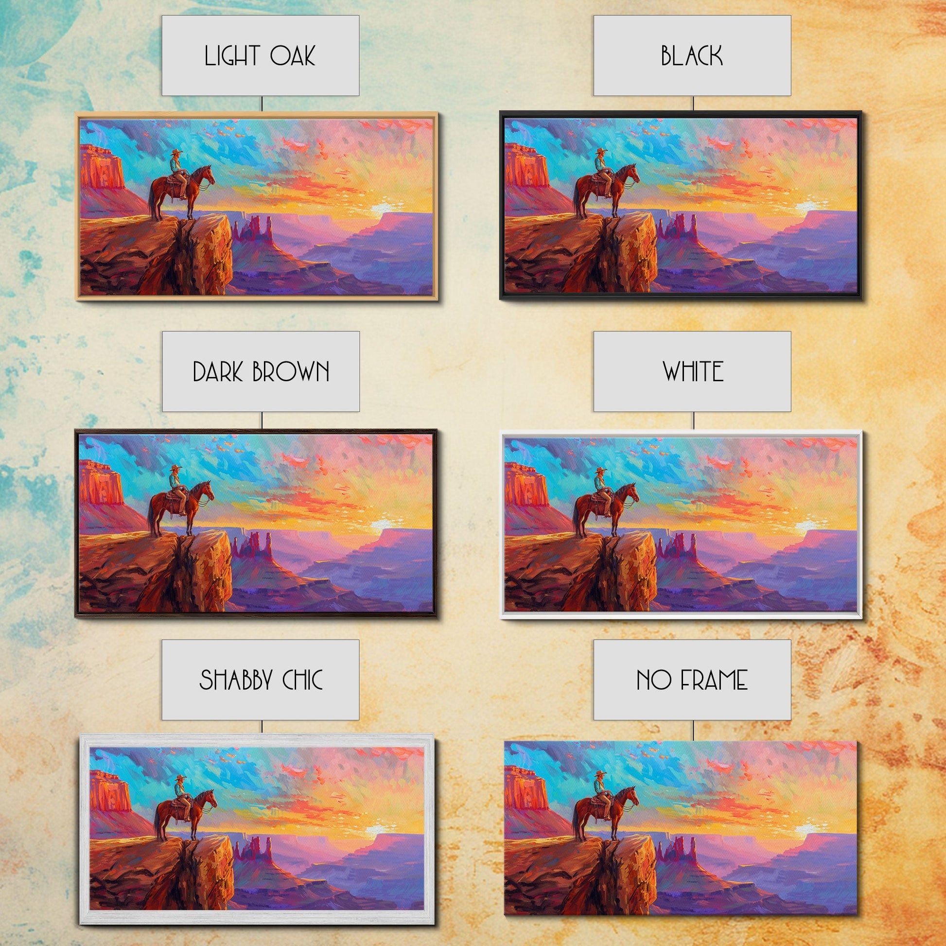 Cowboy and Horse with Canyon View, Farmhouse Style Framed Canvas Print for Bedroom Wall Art, Vibrant Home Decor, Western Scenic Art