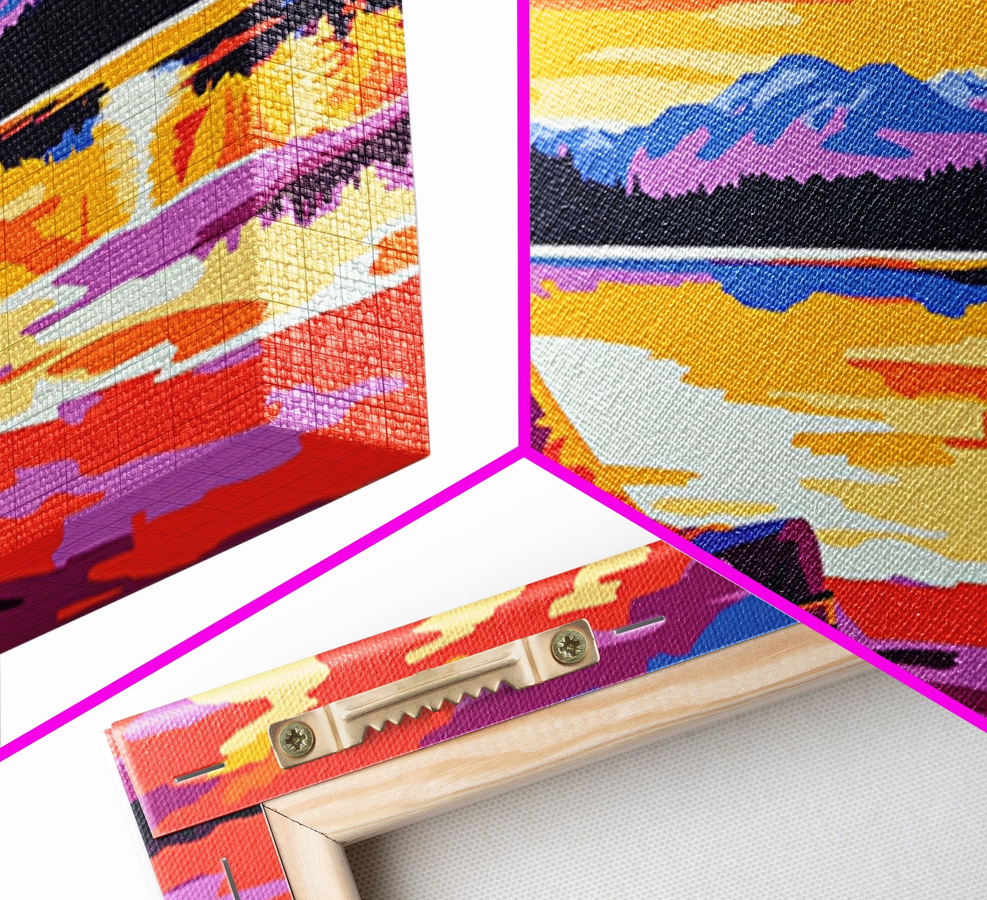 Hello and thank you for taking the time to view our modern high quality giclée artwork! We offer both posters and stretched canvas prints. Our posters are printed on Ultra Matte 60 lb / 230 GSM high quality photo paper, with a thickness of 10 mil. Our canvases are printed on museum grade 350 GSM canvas material with ECO friendly archival grade ink, then hand stretched and stapled over premium, FSC certified and shrink resistant frames. Designed and built to last a lifetime.