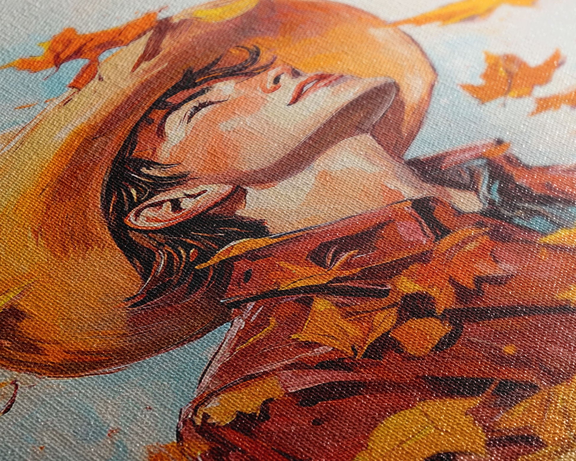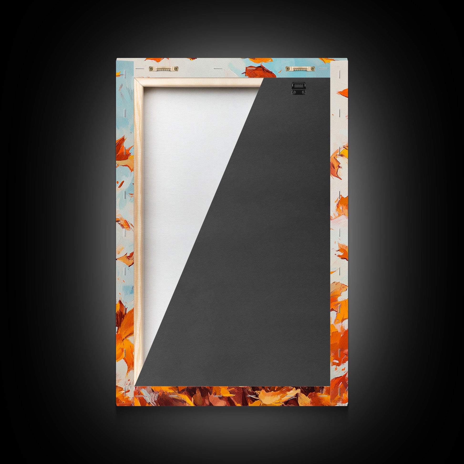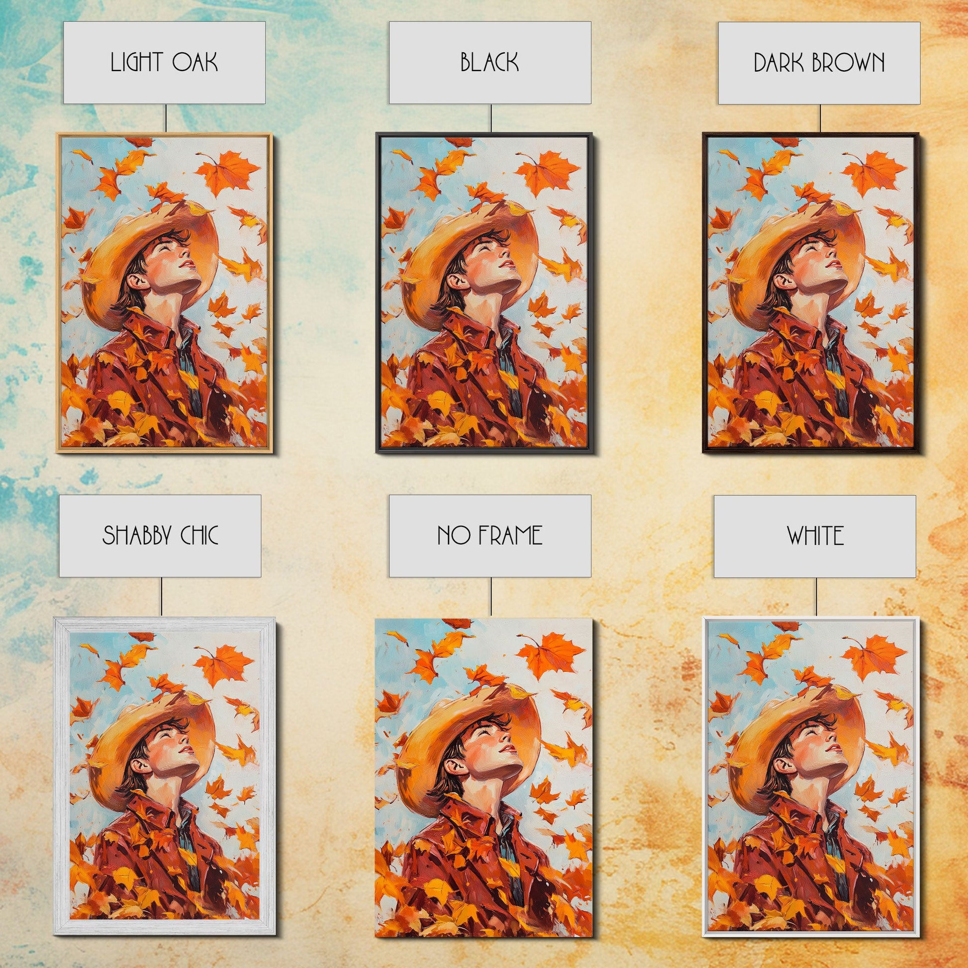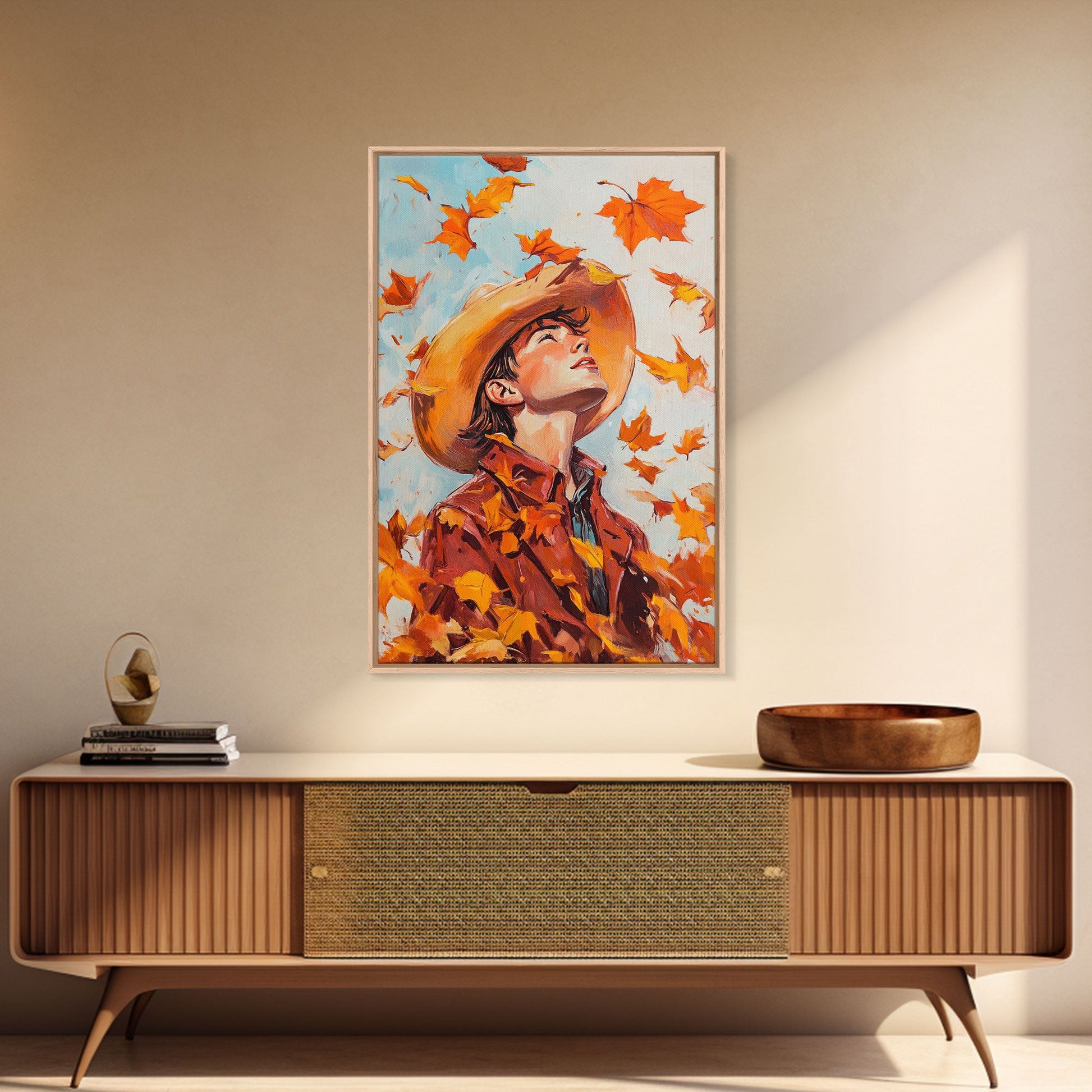Cowboy Fall Decor Canvas Print with Windblown Leaves, Rustic Farmhouse Autumn Holiday Wall Art Seasonal Gift Idea 2024
