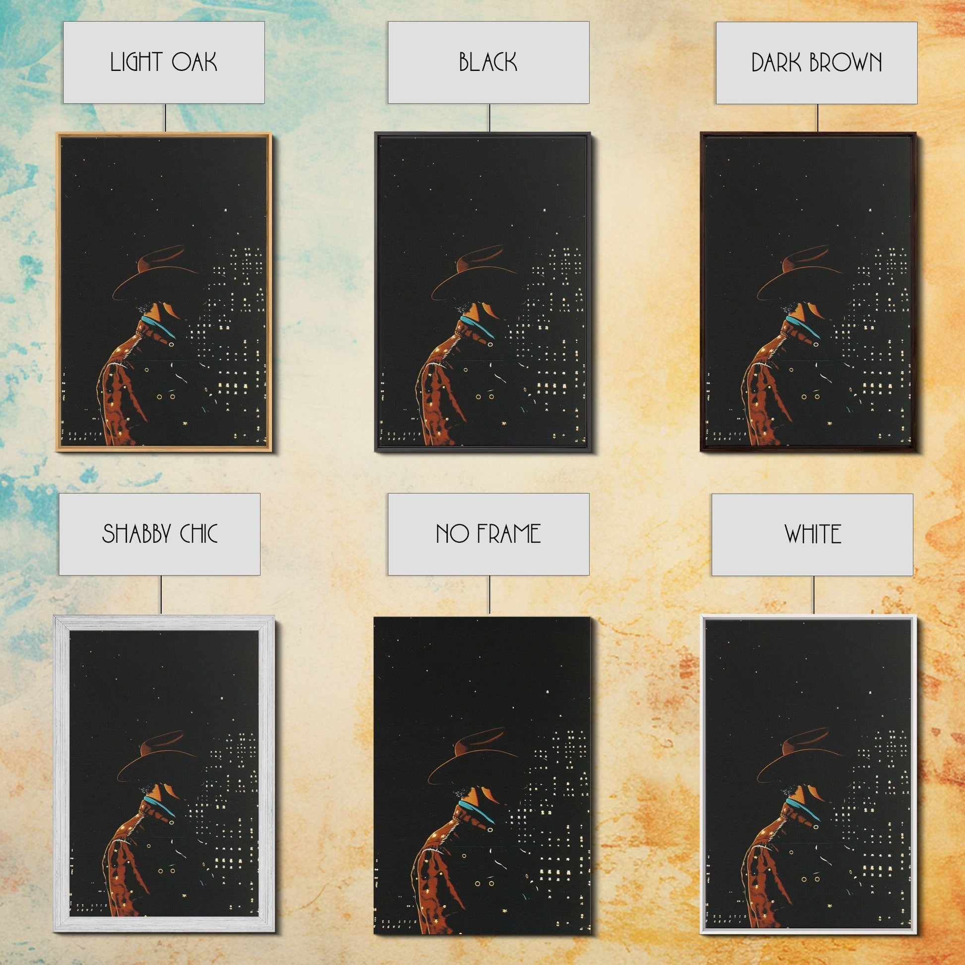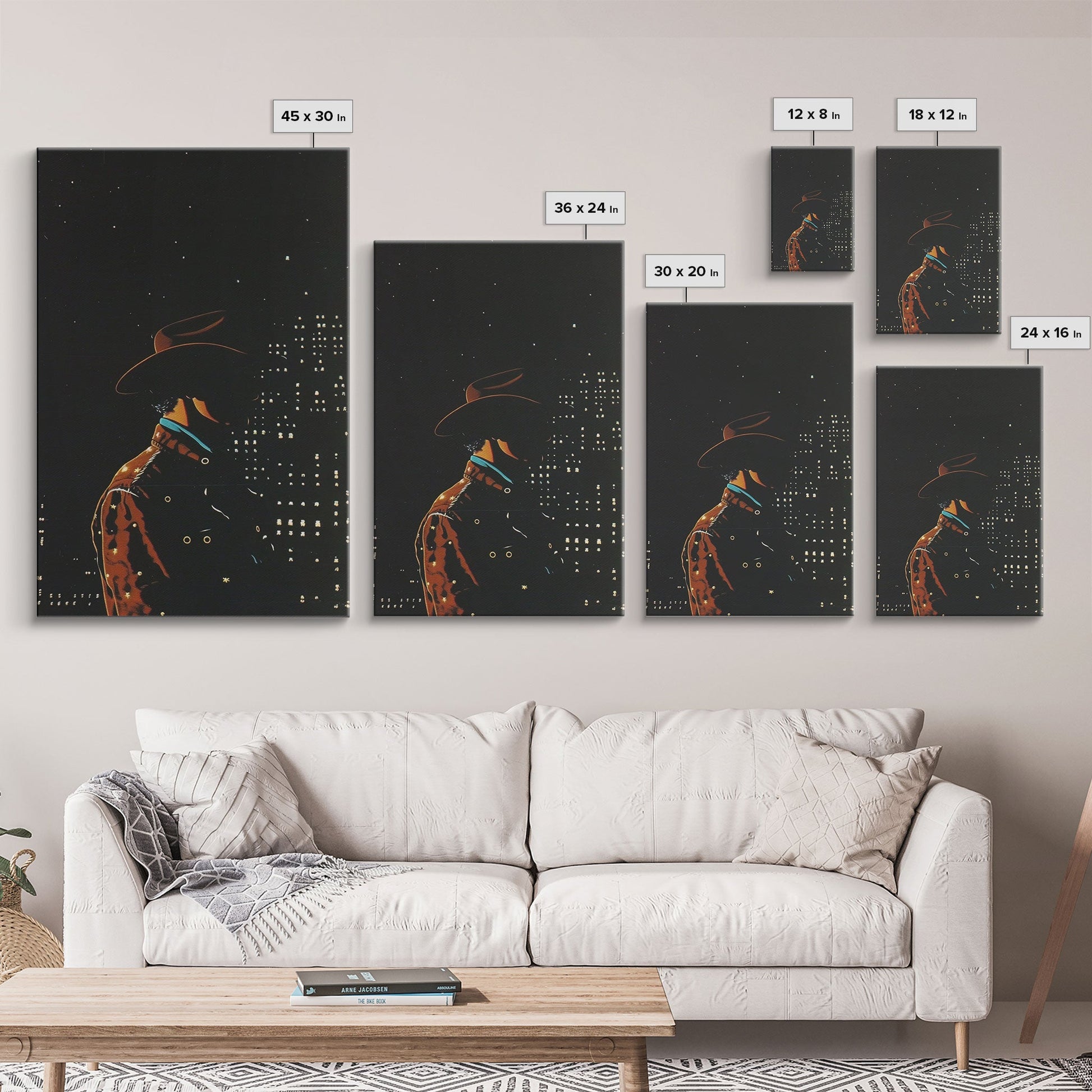 Cowboy in the City Night Print - Framed Canvas Wall Art, Urban Western Decor, City Cowboy Artwork for Living Room, Modern Western Art