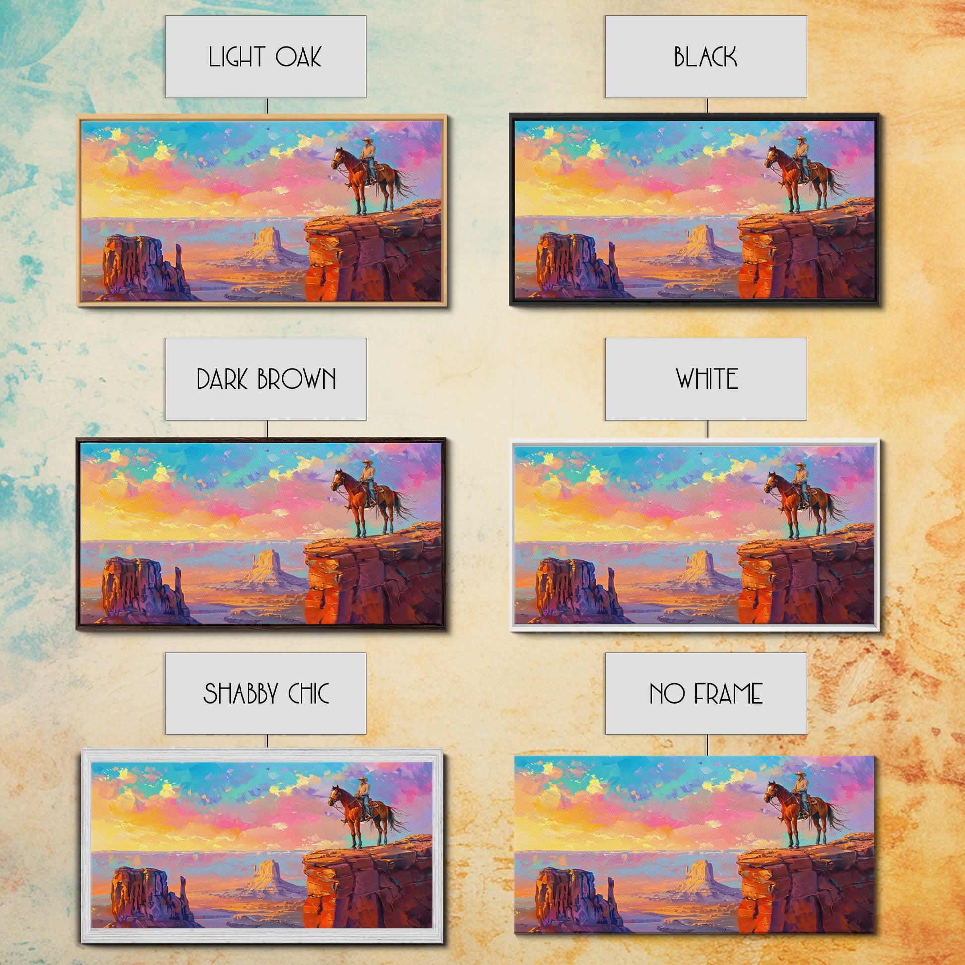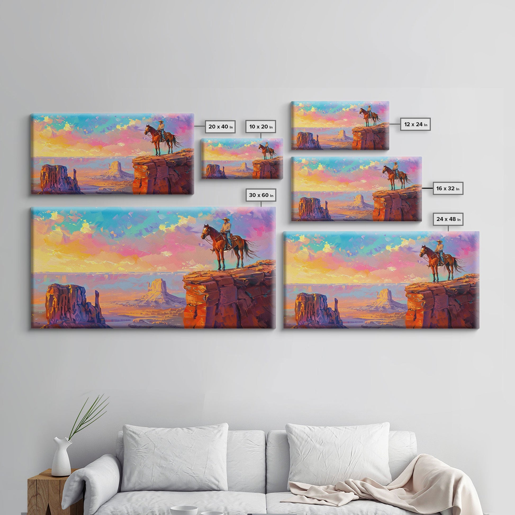 Cowboy Overlooking Monument Valley, Farmhouse Style Framed Canvas Print for Bedroom Wall Art, Rustic Home Decor, Scenic Western Landscape