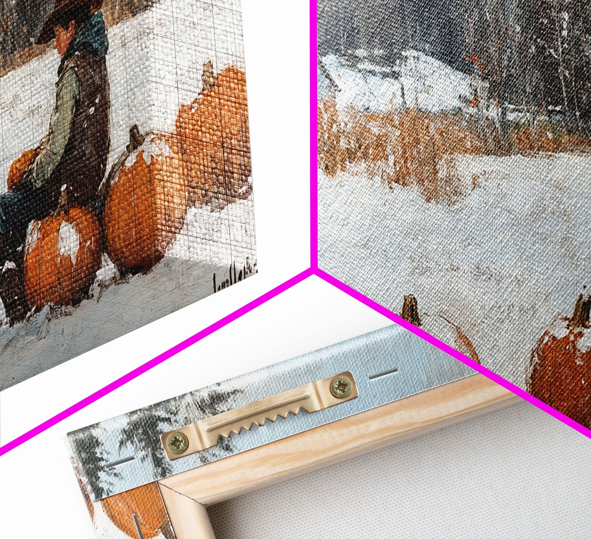 Cowboy Sipping Coffee Autumn Decor Framed Canvas Print Perfect Above Sofa Wall Art Western Home Decor Moody Fall Artwork Rustic