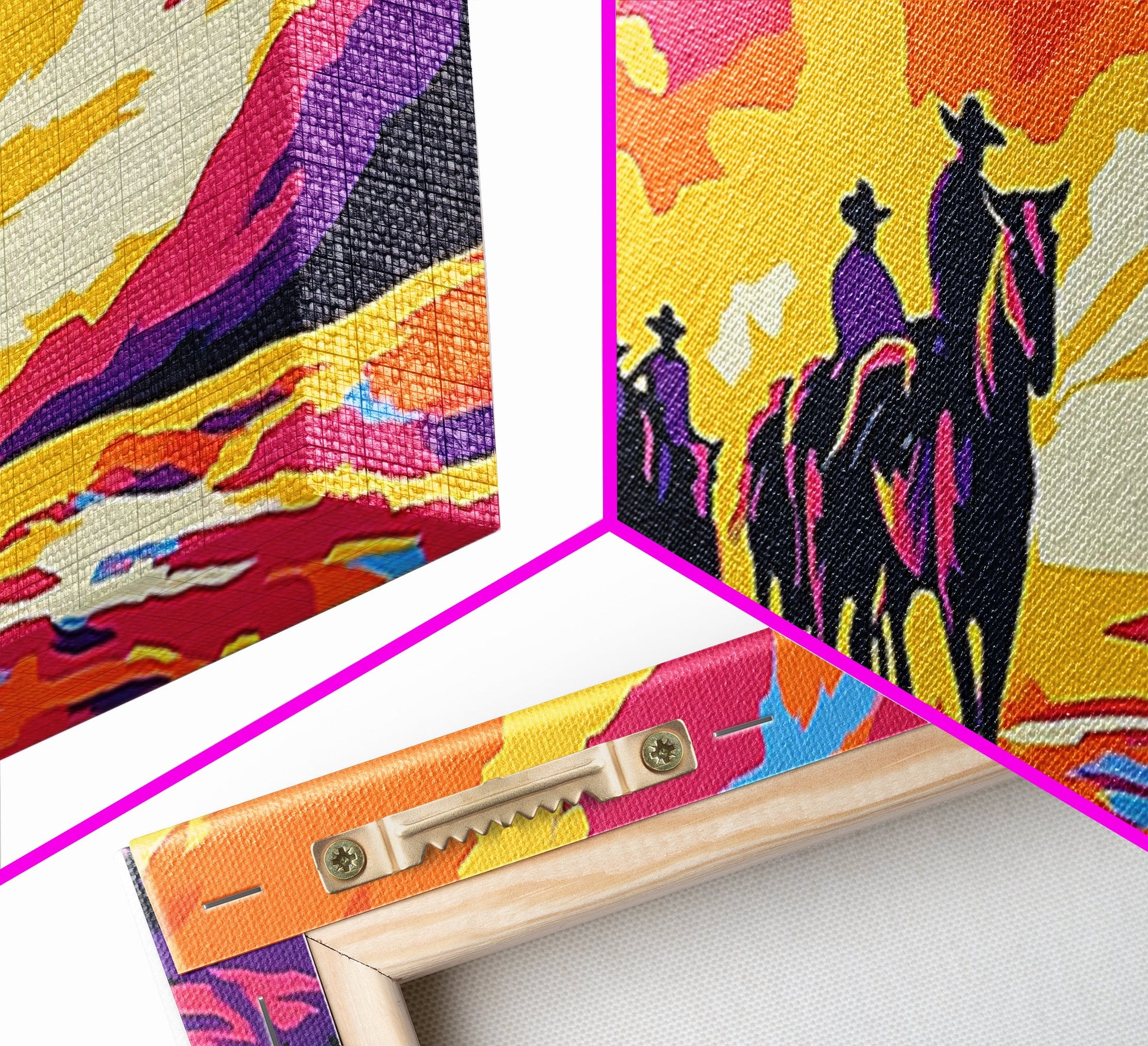 Cowboy Trail, sunset painting, southwest wall art, western decor, gift idea, extra wide art, panoramic painting, canvas print, rustic art