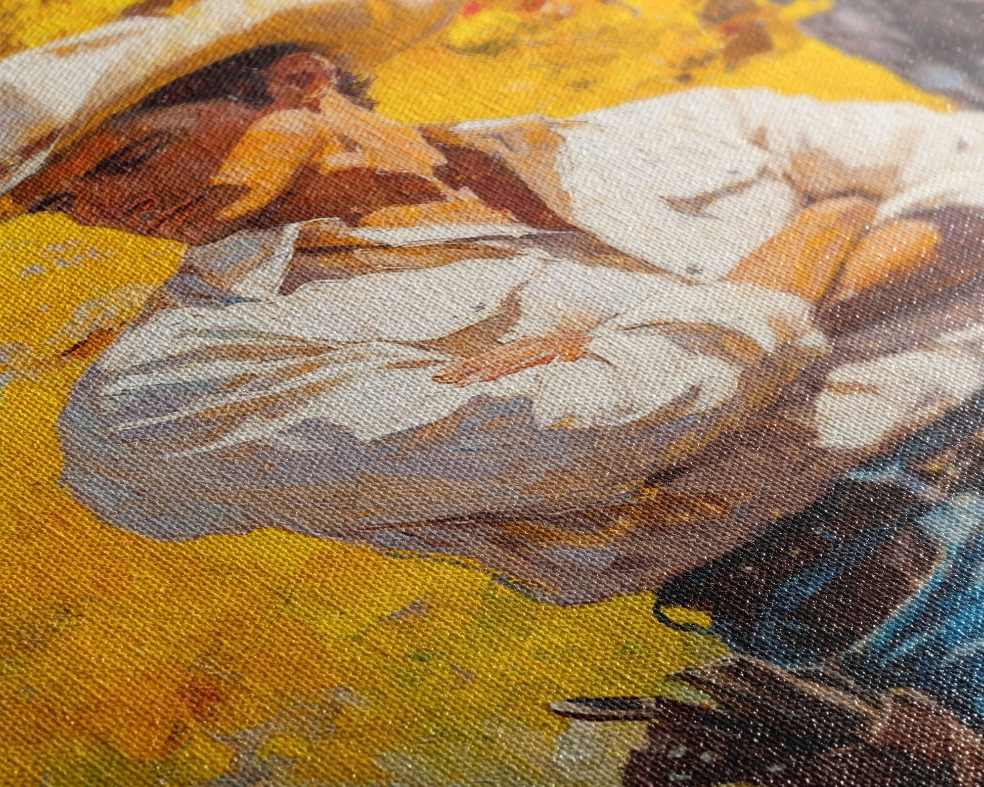 Most of our canvases are made in the USA, with the exception of canvases ordered with the light oak unstained frames, and any large canvases (24x48, 30x60, 16x48 and 20x60) ordered WITH a frame. These are temporarily made in and shipped from Europe, while we try to find a more consistent supplier in the USA.