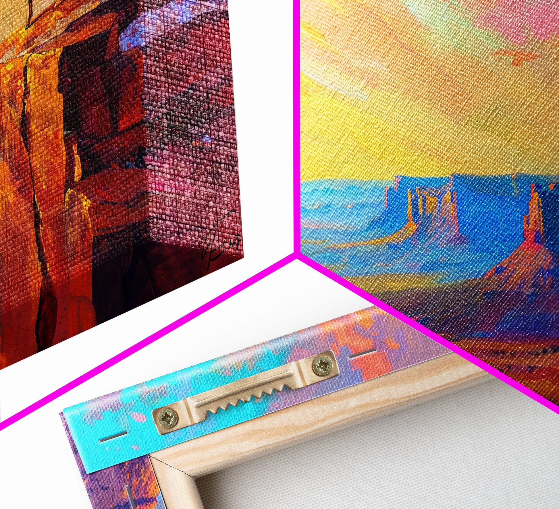 Hello and thank you for taking the time to view our modern high quality giclée artwork! We offer both posters and stretched canvas prints. Our posters are printed on Ultra Matte 60 lb / 230 GSM high quality photo paper, with a thickness of 10 mil. Our canvases are printed on museum grade 350 GSM canvas material with ECO friendly archival grade ink, then hand stretched and stapled over premium, FSC certified and shrink resistant frames. Designed and built to last a lifetime.