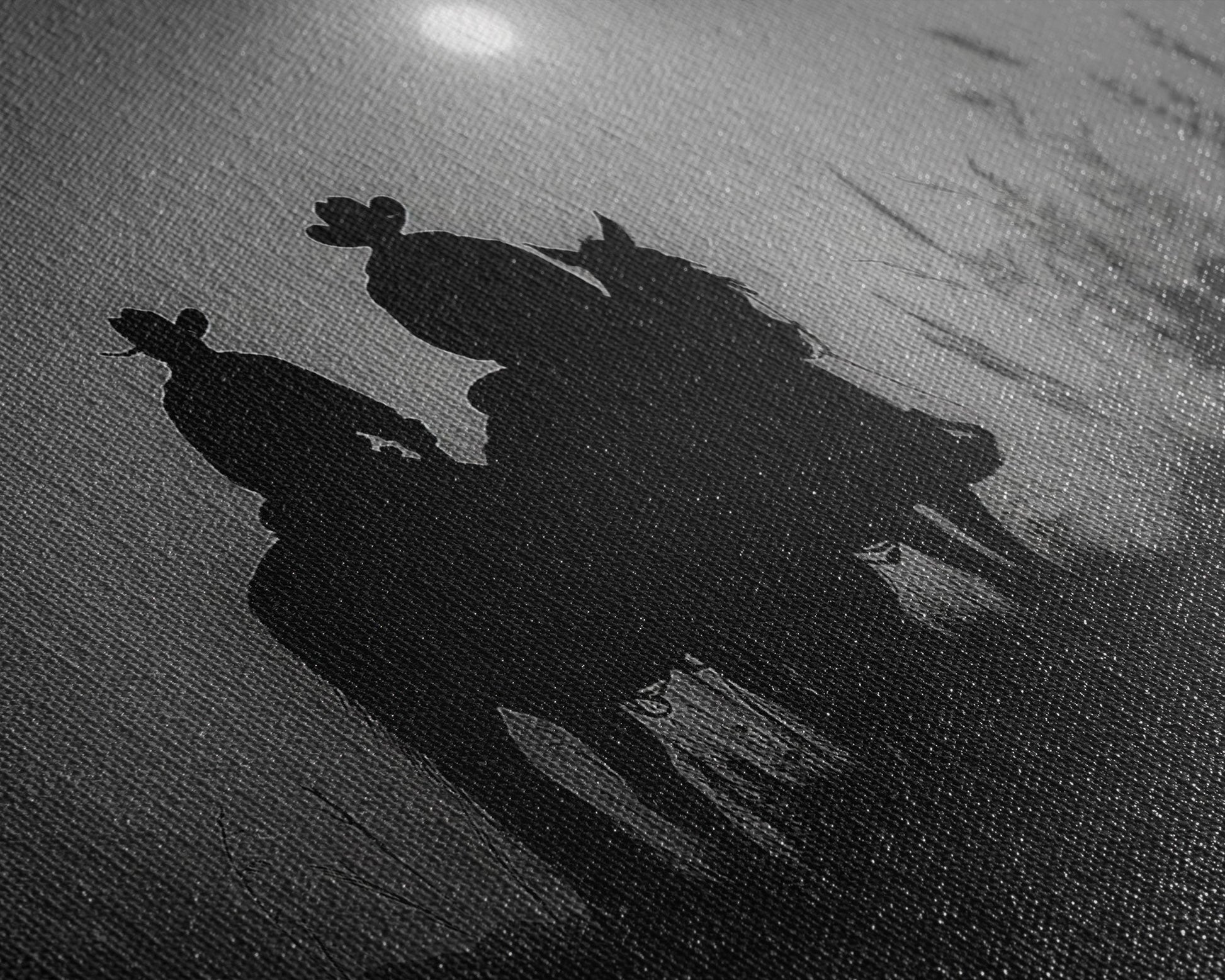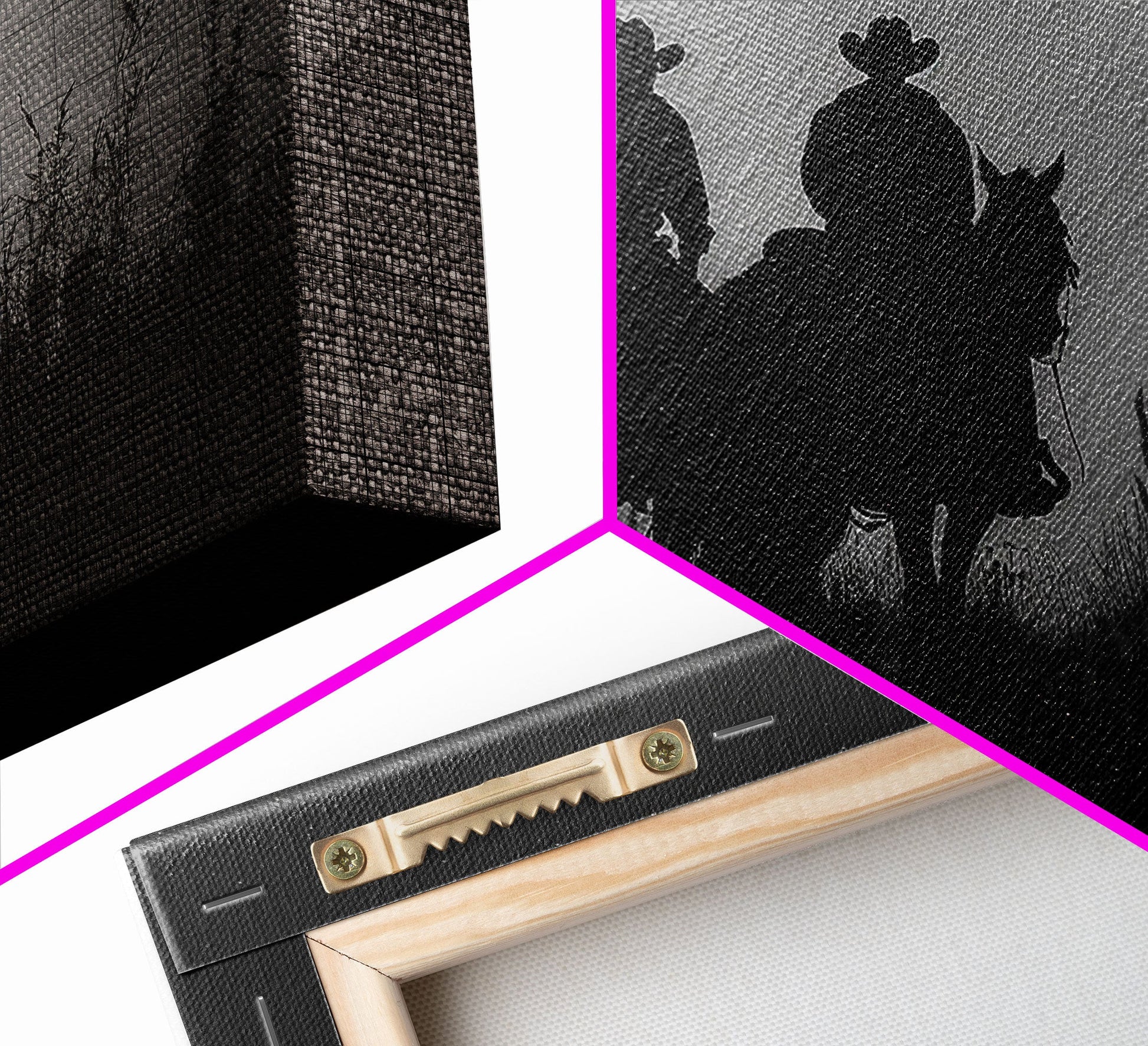 Cowboys Under A Full Moon, Framed Canvas Print, Black and White Western Photography, Wild West Art, Western Decor, Farmhouse Country Art