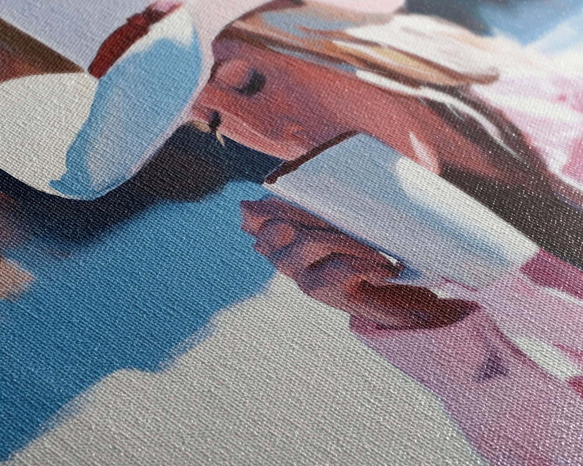 Cowgirl Enjoying A Cup of Coffee, Framed Canvas Print, Winter Wall Art, Pink Decor, Gift For Her, Seasonal Winter Home Decor