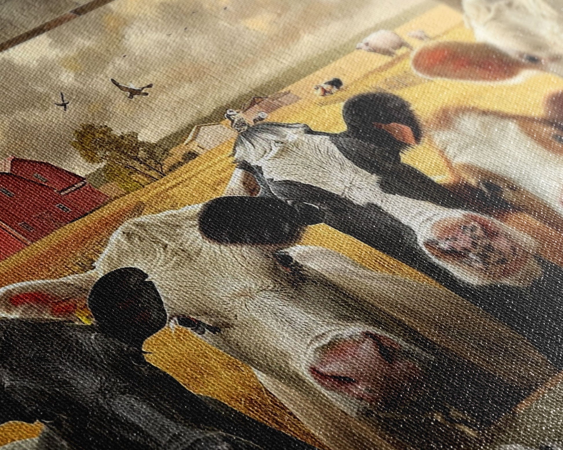 Most of our canvases are made in the USA, with the exception of canvases ordered with the light oak unstained frames, and any large canvases (24x48, 30x60, 16x48 and 20x60) ordered WITH a frame. These are temporarily made in and shipped from Europe, while we try to find a more consistent supplier in the USA.