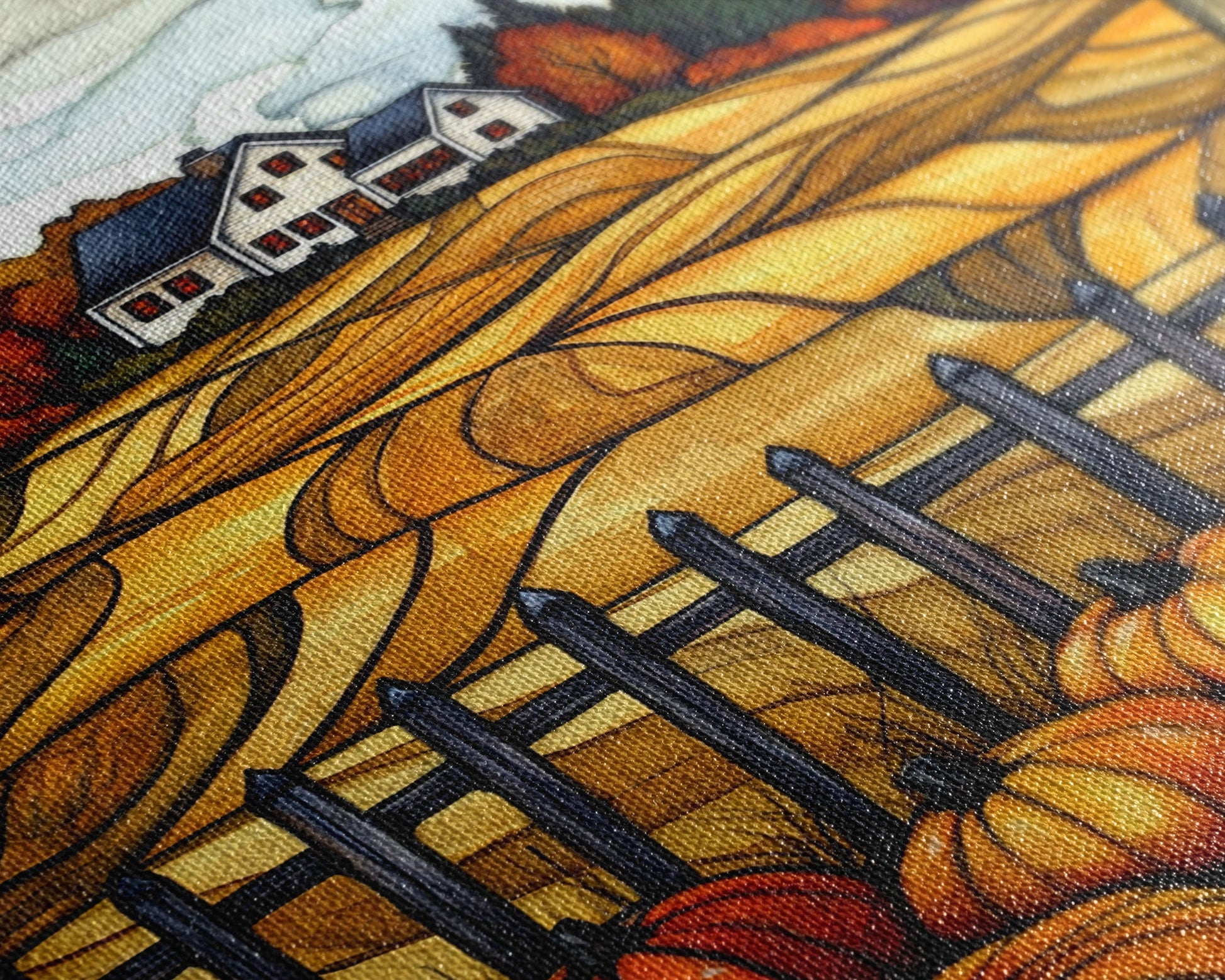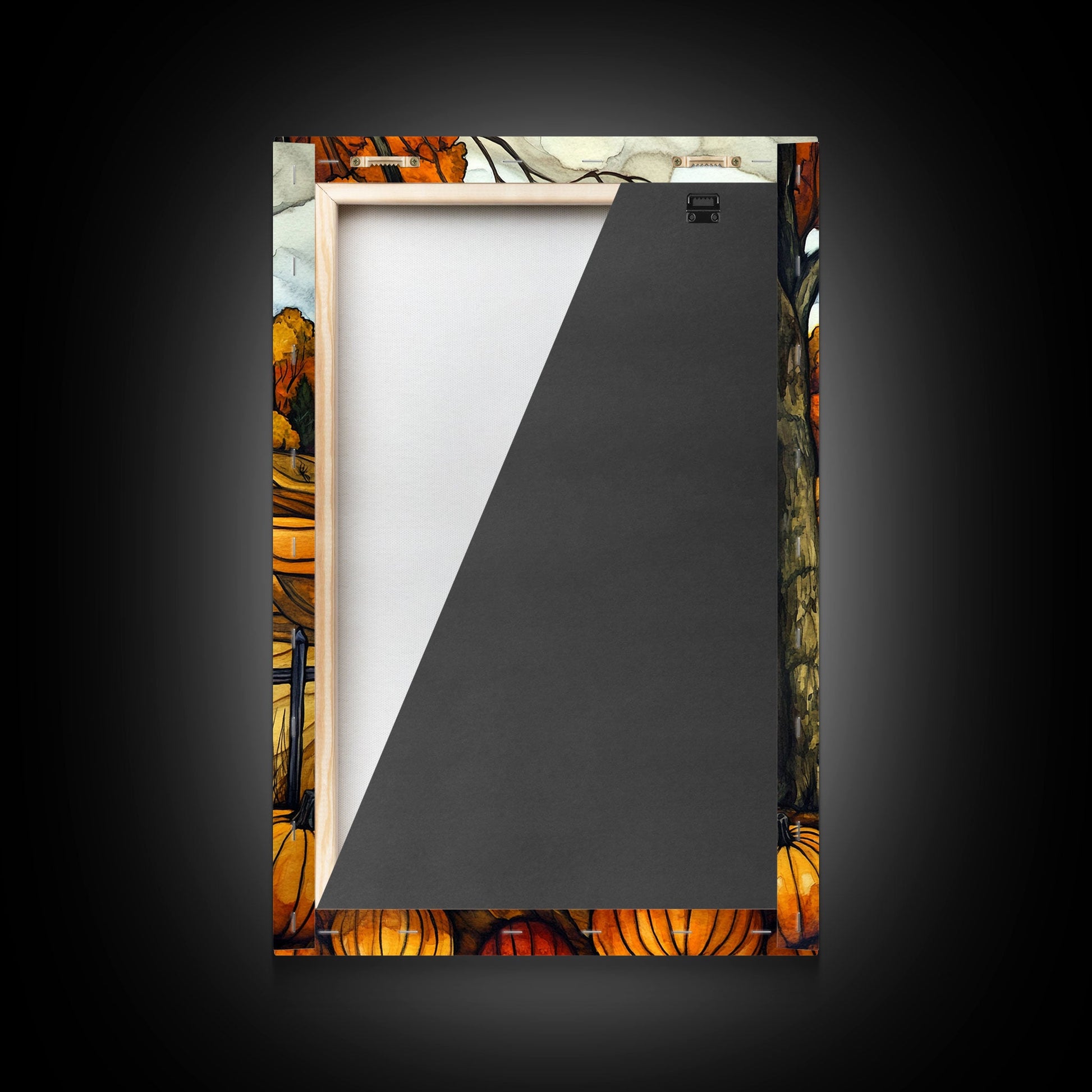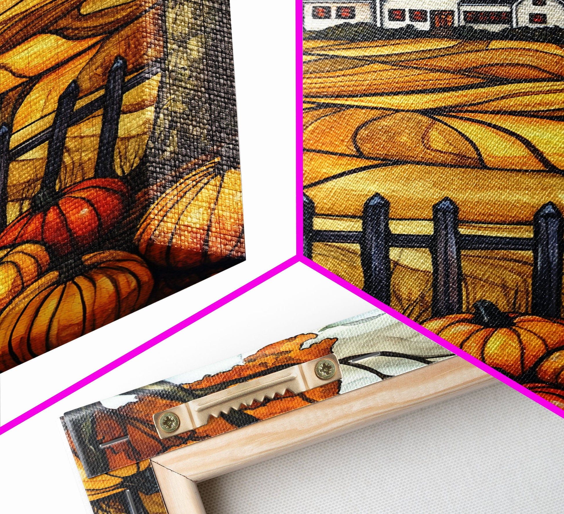 Cozy Fall Farmhouse With Pumpkins Framed Canvas Print Autumn Wall Art Country Farmhouse Decor Best Gift Idea Above Sofa Seasonal Art
