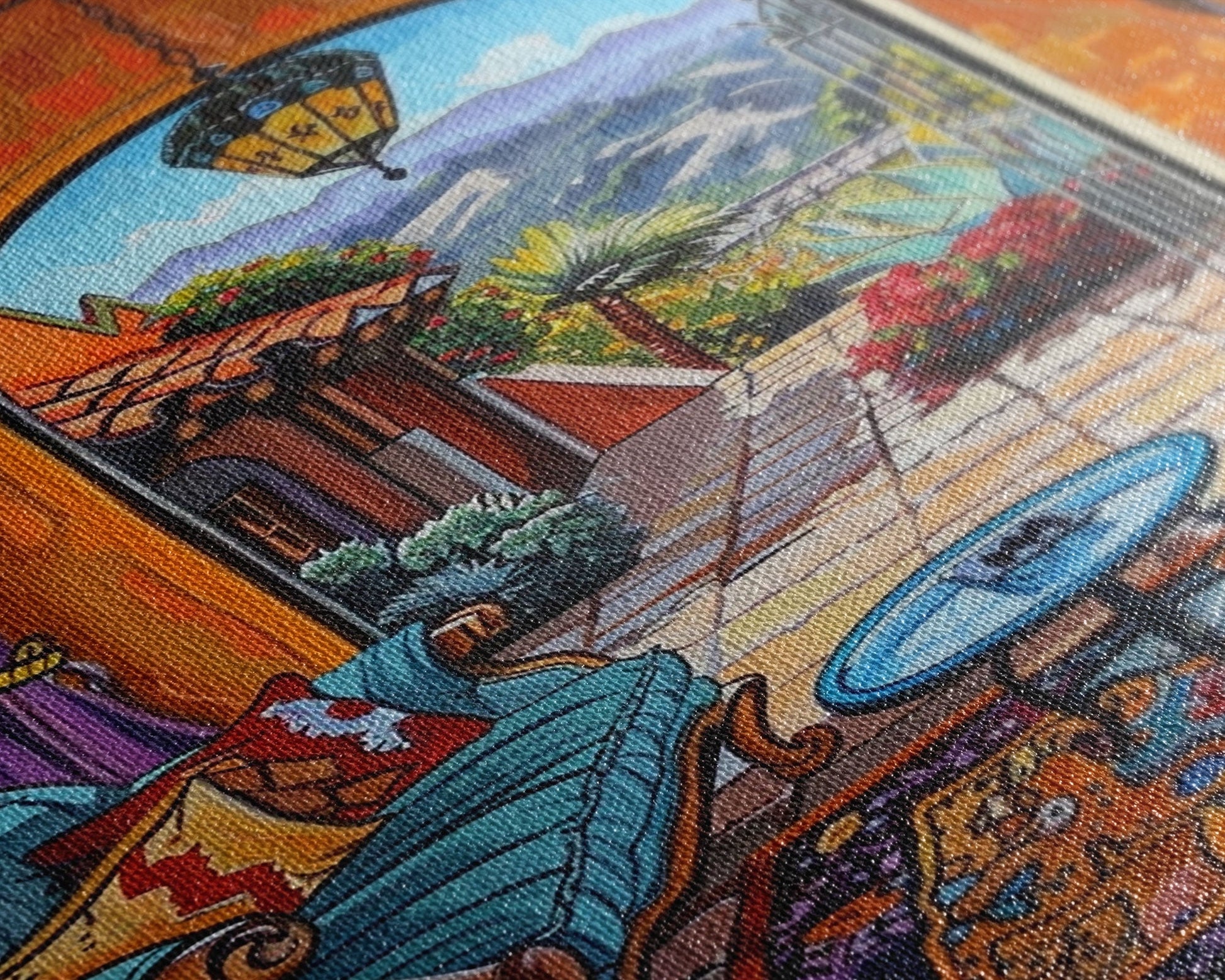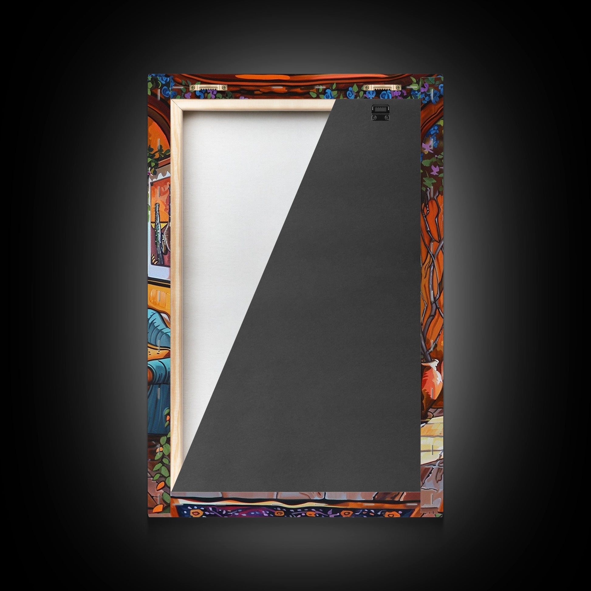 Cozy Southwestern Patio Framed Canvas Print Colorful Courtyard Best Gift Idea Home Decor Bright Seasonal Art Above Sofa Wall Art