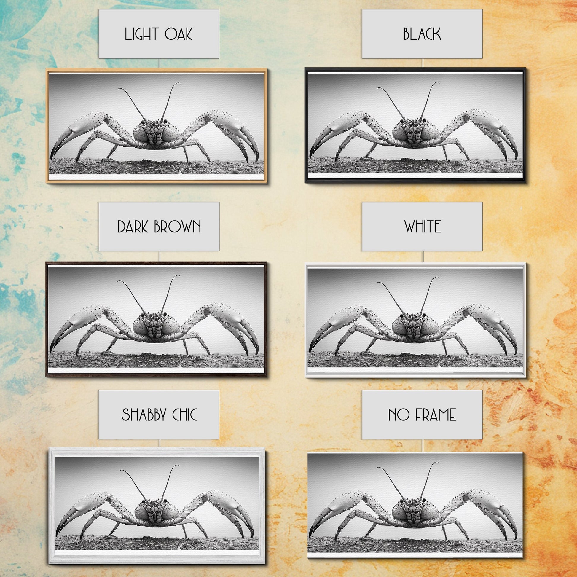 Crab Art, Beach Creature, Monochrome Photography, Nature Close-Up, Framed Canvas Print, Coastal Bathroom Art, Marine Home Style