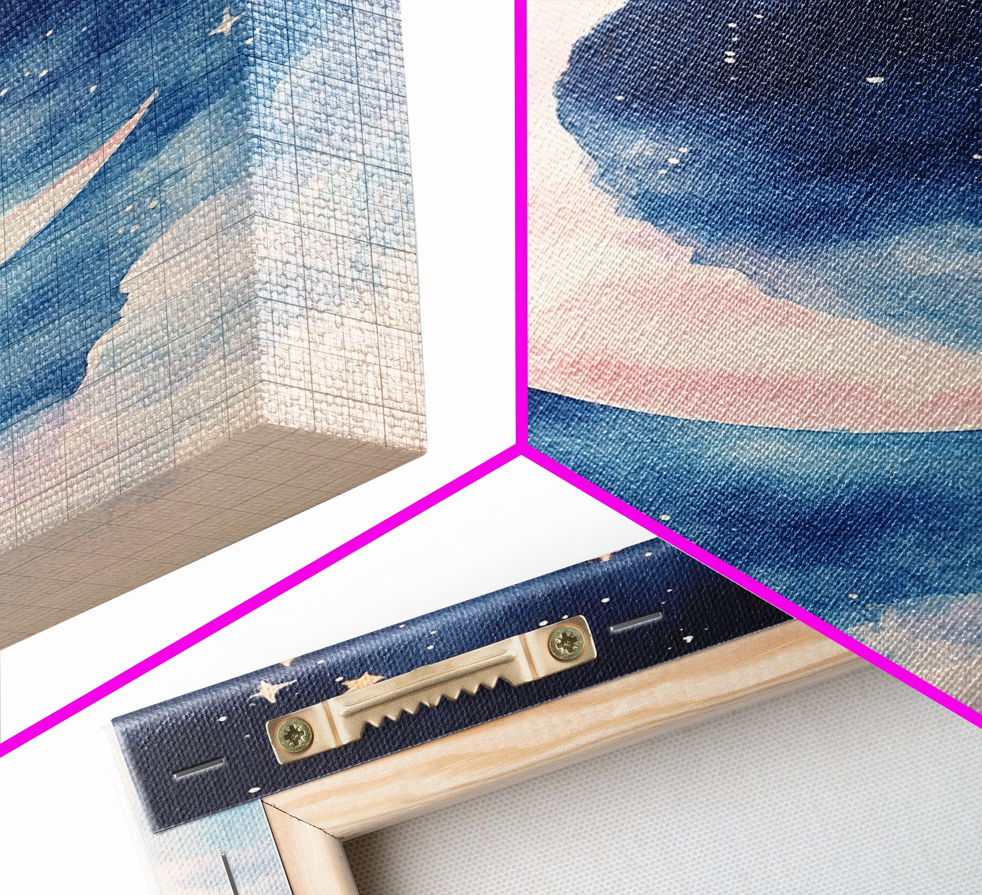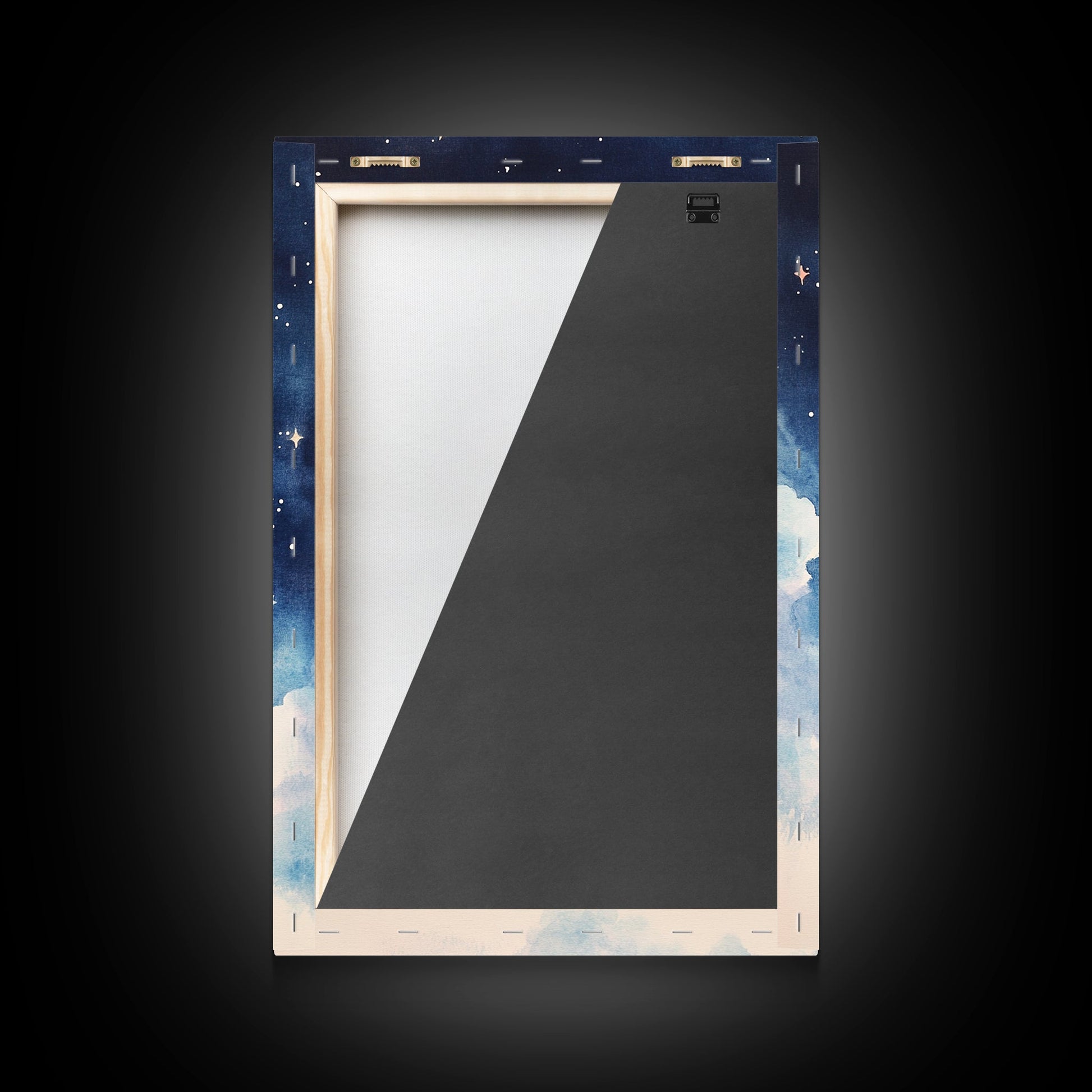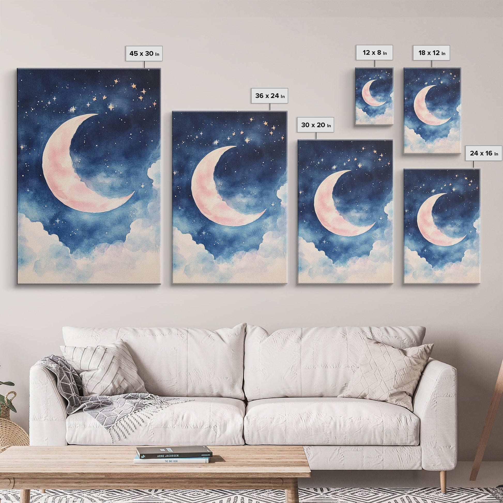 Crescent Moon Painting Canvas Print Bedroom Art Moody Night Sky Painting Above Bed Wall Art Whimsical Art Gift Idea Light Decor