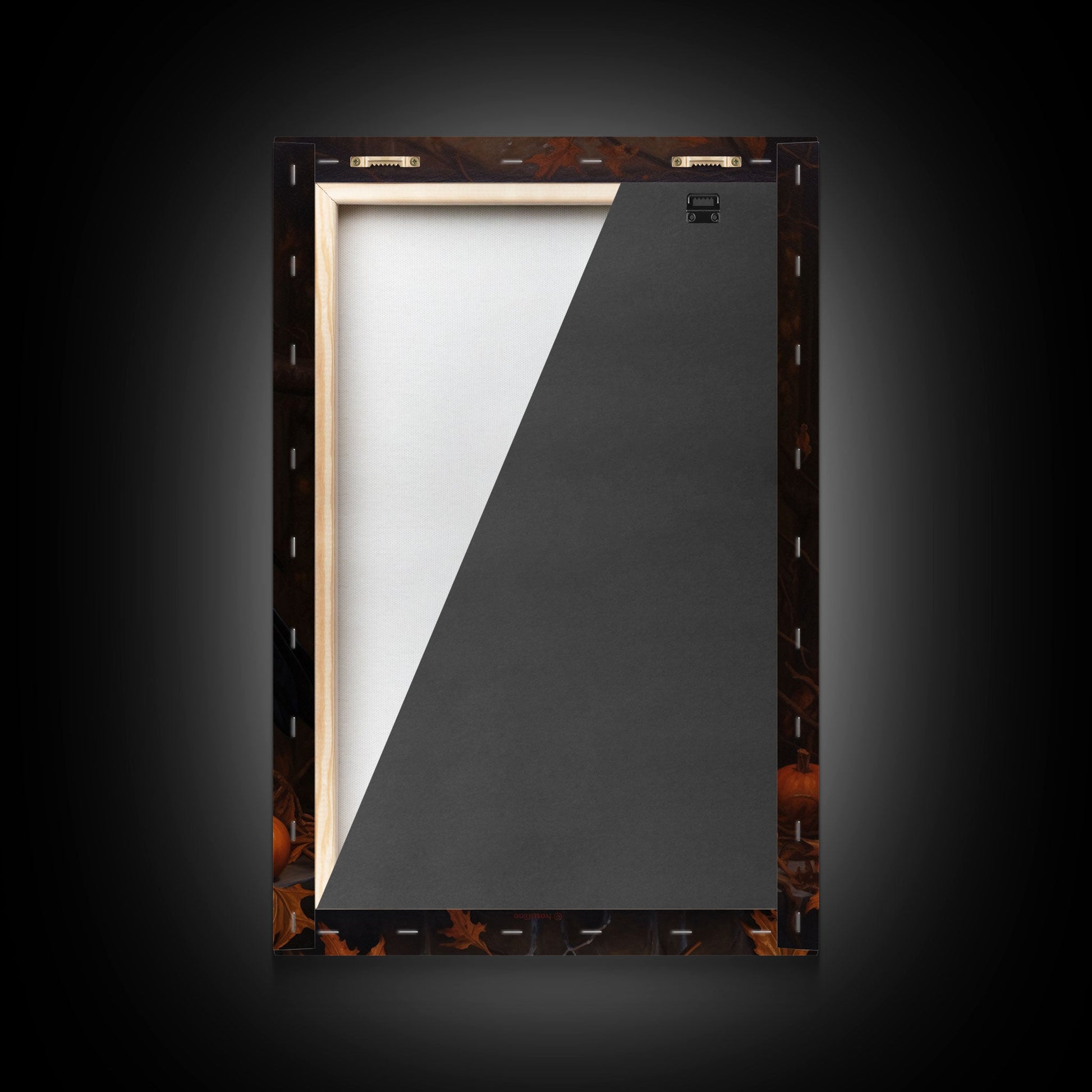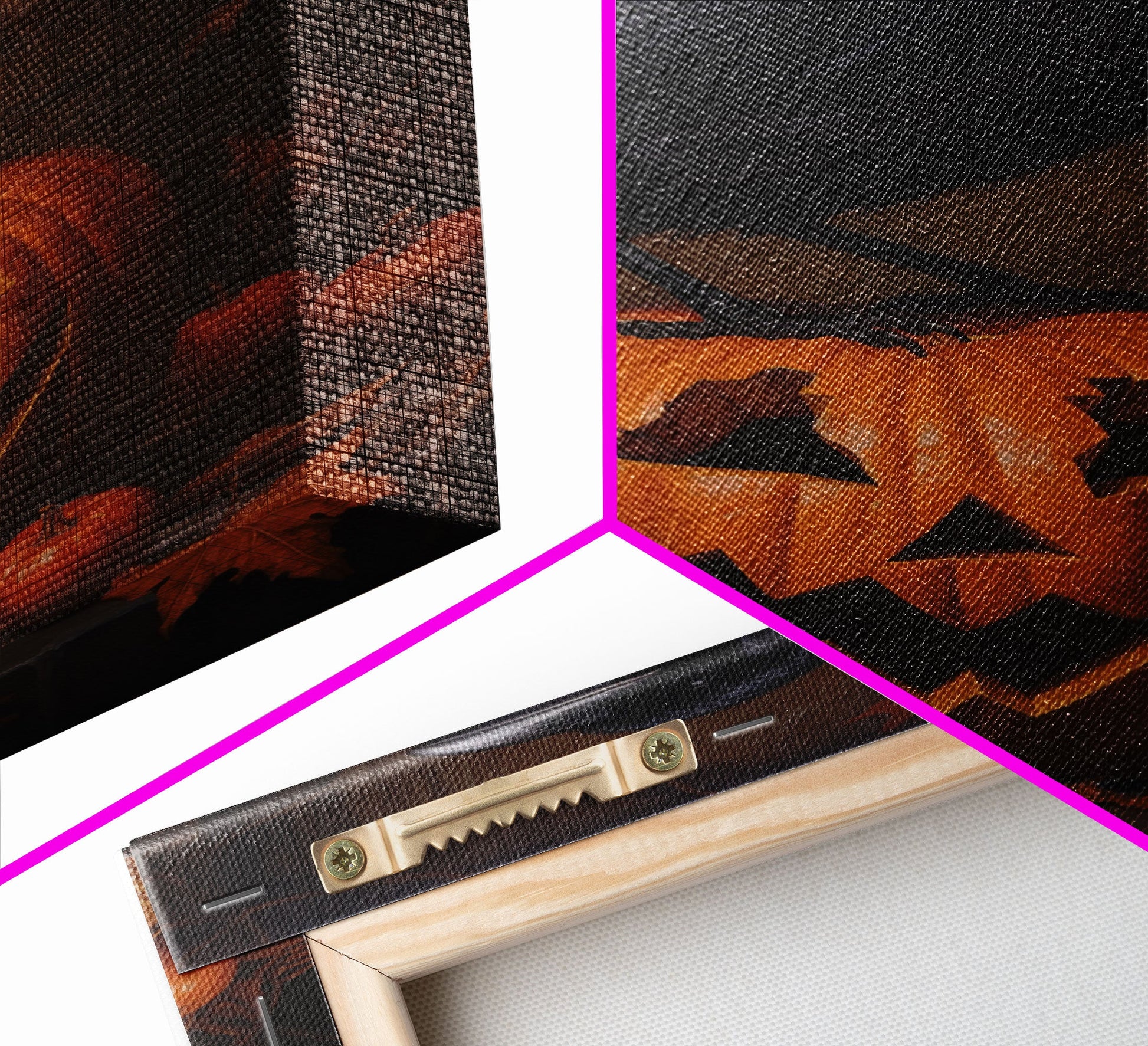 Crow Atop A Jack O Lantern, Framed Canvas Print, Halloween Decor, Raven Painting, Victorian Oil Painting Print, Macabre Horror Print