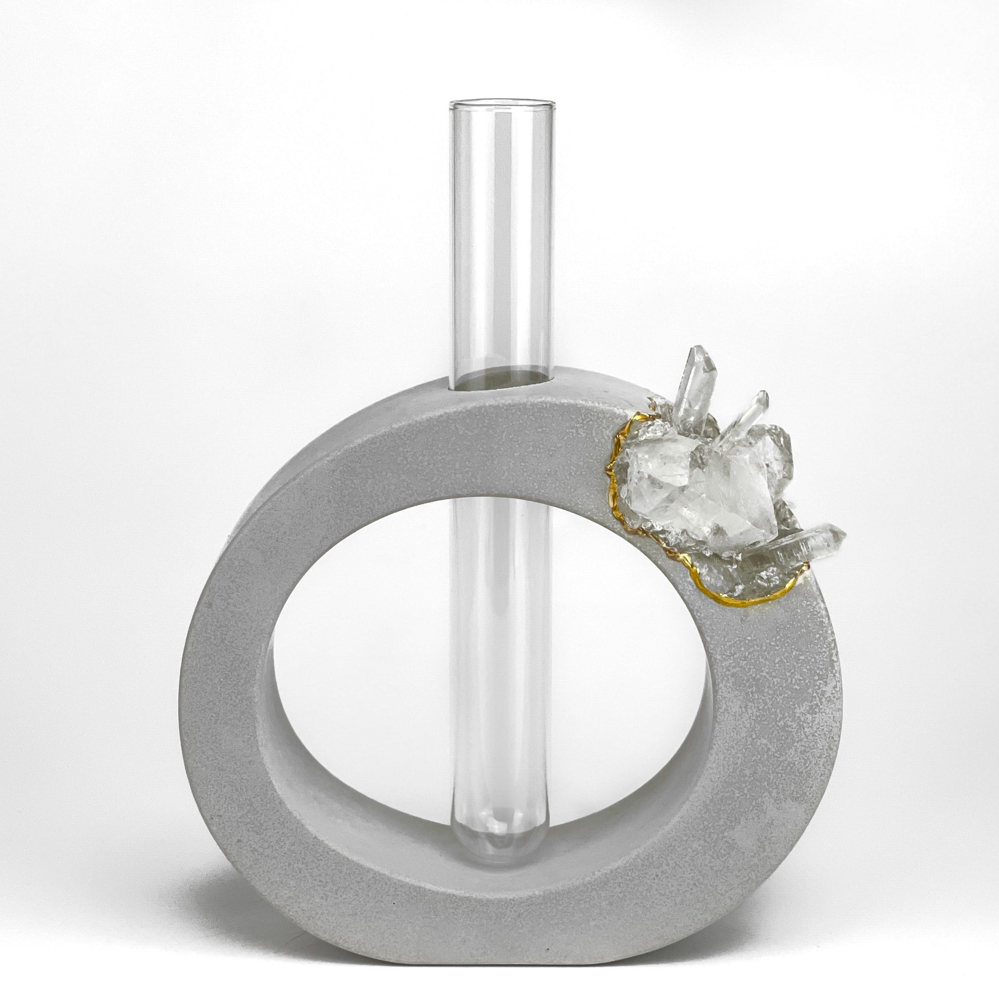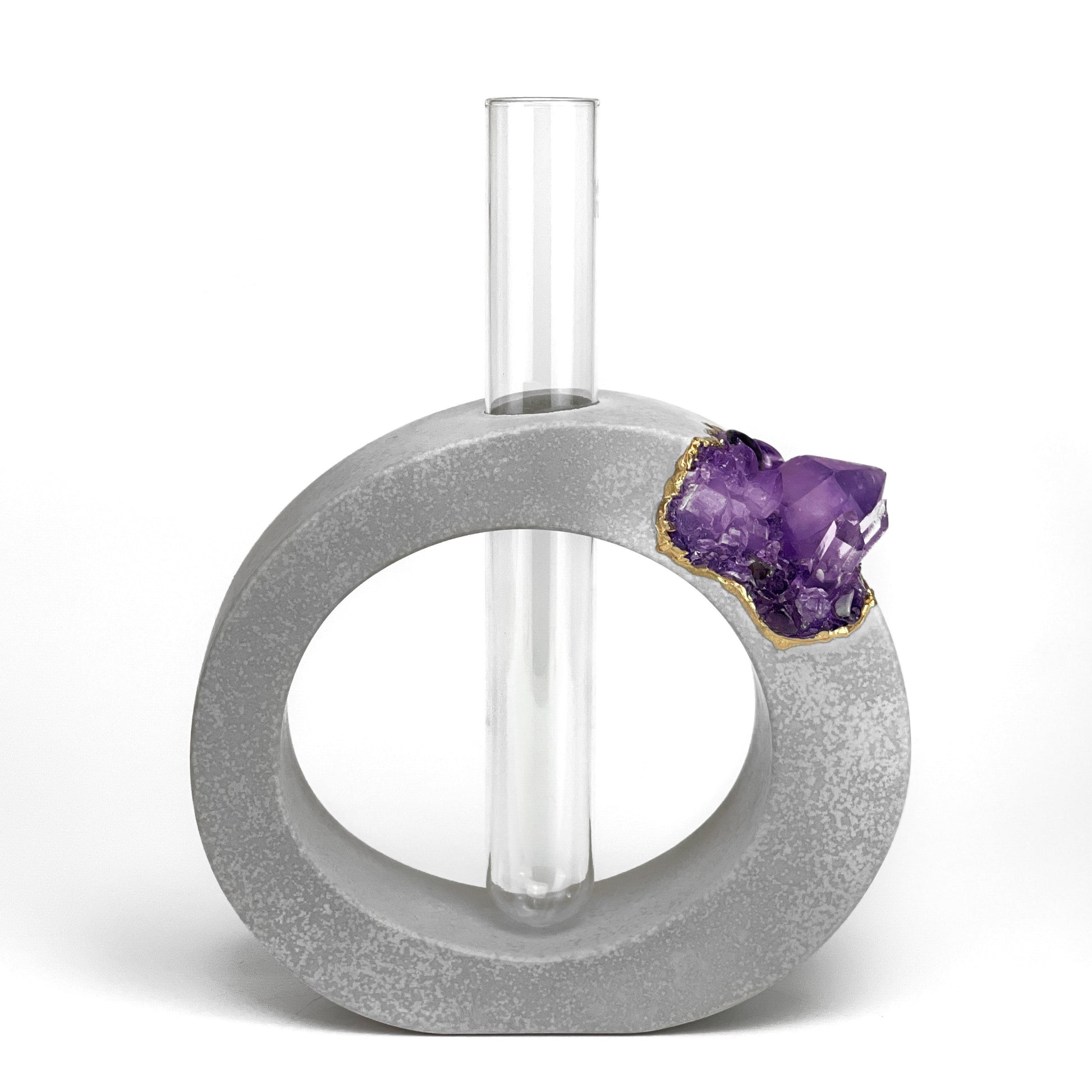 Natural Crystals and Concrete are formed together to create a unique and one-of-a-kind housewarming gift, home accent, and home for your small plants.