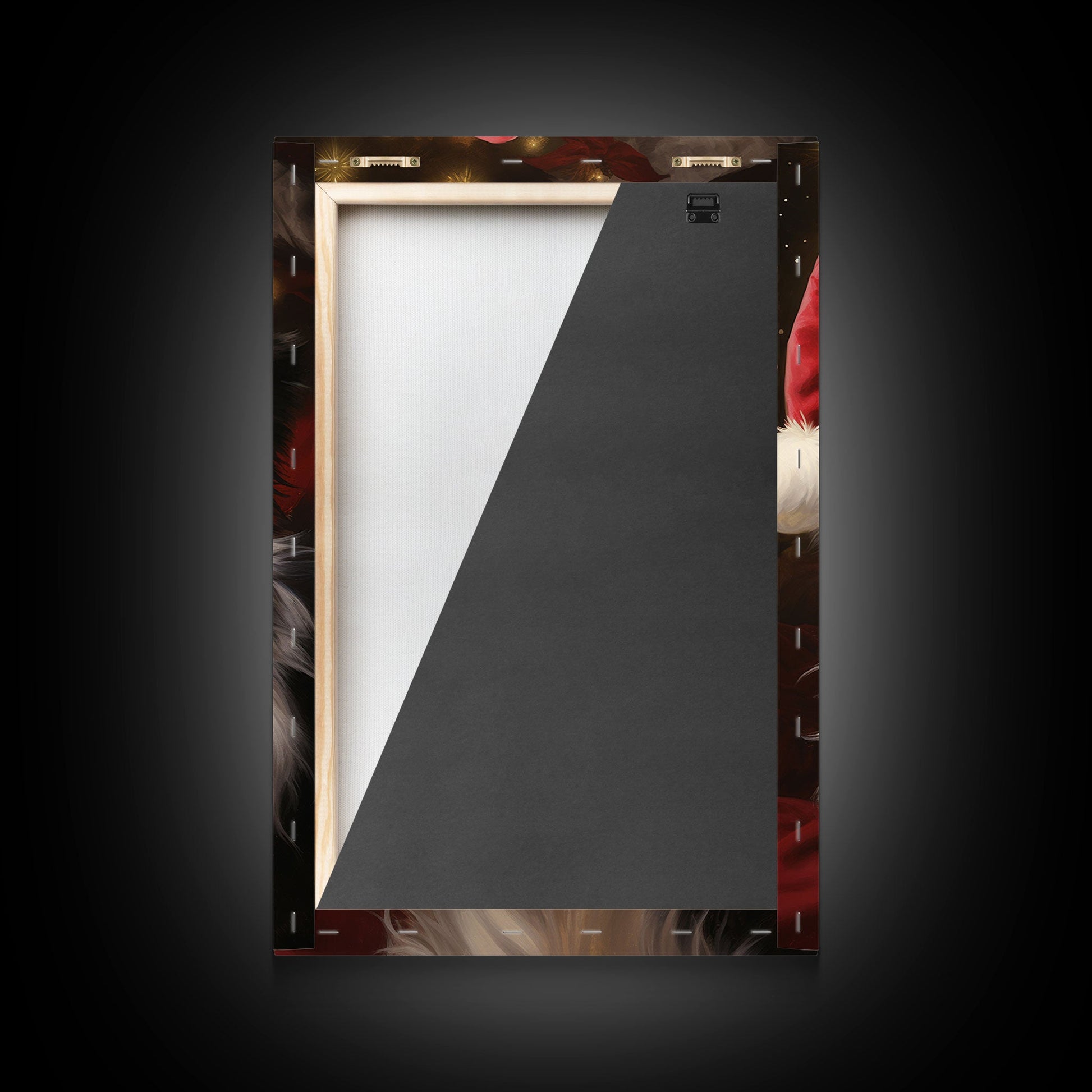 Cute Border Collie In A Santa Hat, Framed Canvas Print, Christmas Decor, Holiday Decor, Seasonal Wall Decor, Farmhouse Christmas