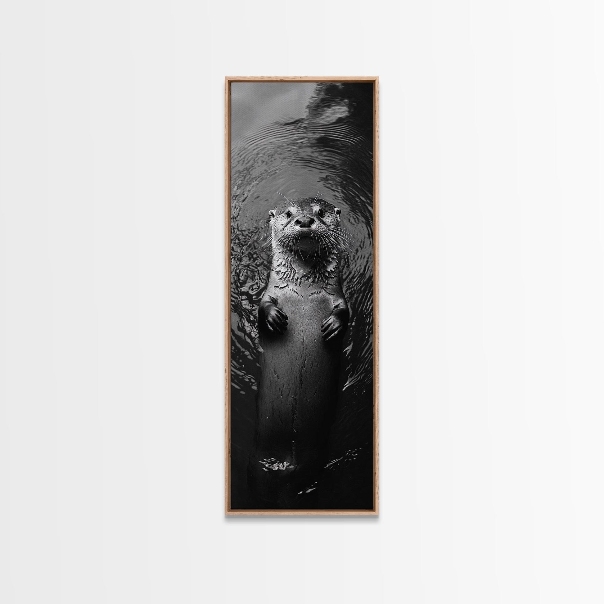 Cute Otter, Wildlife Charm, Animal Portrait, Black White Art, Canvas Print, Kids Room Wall Art, Woodland Nursery, Nature Lover Gift