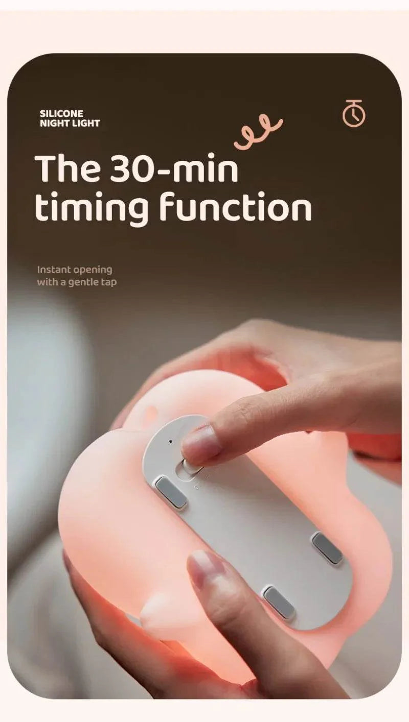 Transform your child's room into a cozy haven with the Pink Piggy Night Light. This cute silicone night lamp is not just an adorable decoration but also a practical lighting solution for bedtime. Featuring a USB charging capability, it provides a warm glow that soothes children and helps them drift off to sleep peacefully.