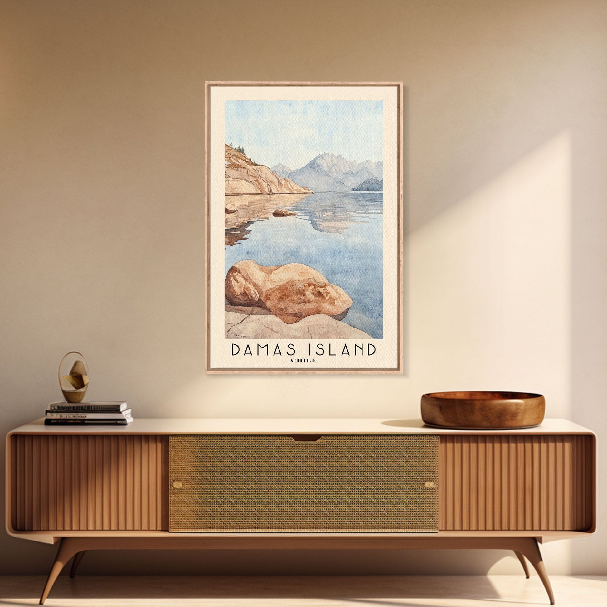 Damas Island, Chile Watercolor Beach Print, Vacation Gift, Chile Wall Art, Framed Canvas Print, Framed Beach Painting
