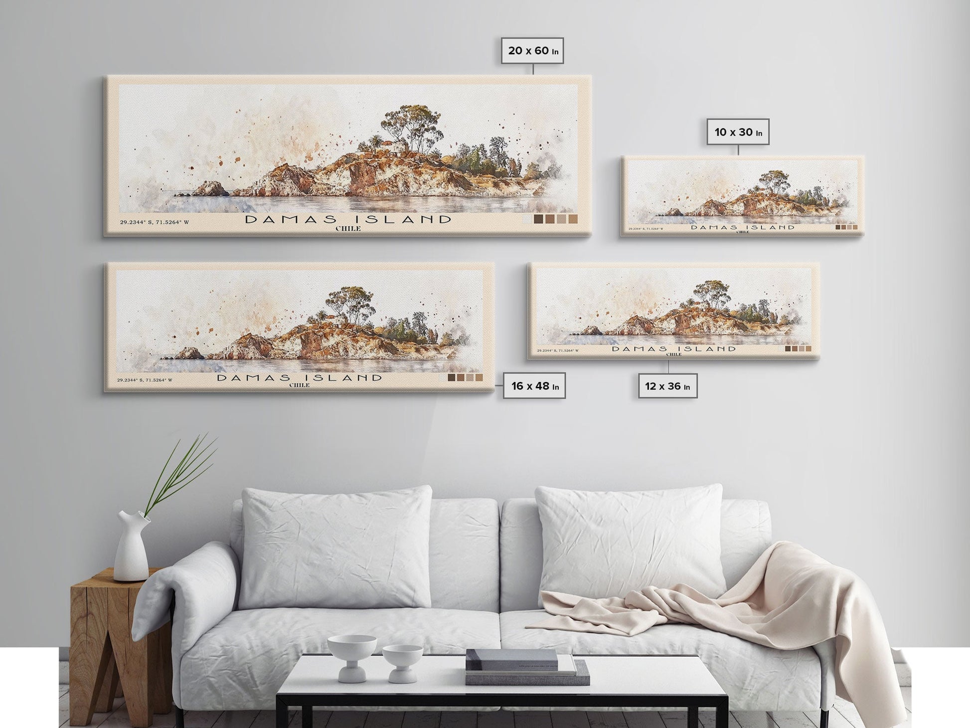 Damas Island, Chile Watercolor Beach Print, Vacation Gift, Chile Wall Art, Framed Canvas Print, Framed Beach Painting
