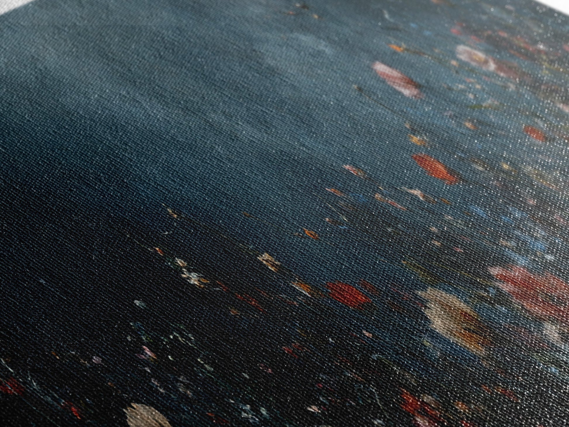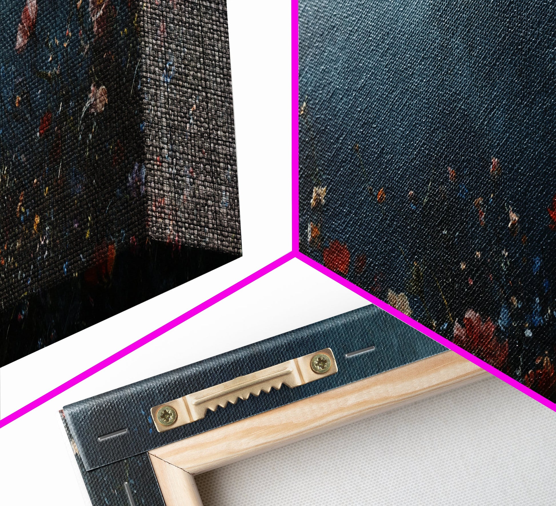 Dark & Moody Wild Flowers At Night, Framed Canvas Print, Panoramic Thought Provoking Wall Art, Above Bed Art, Dark Floral Painting