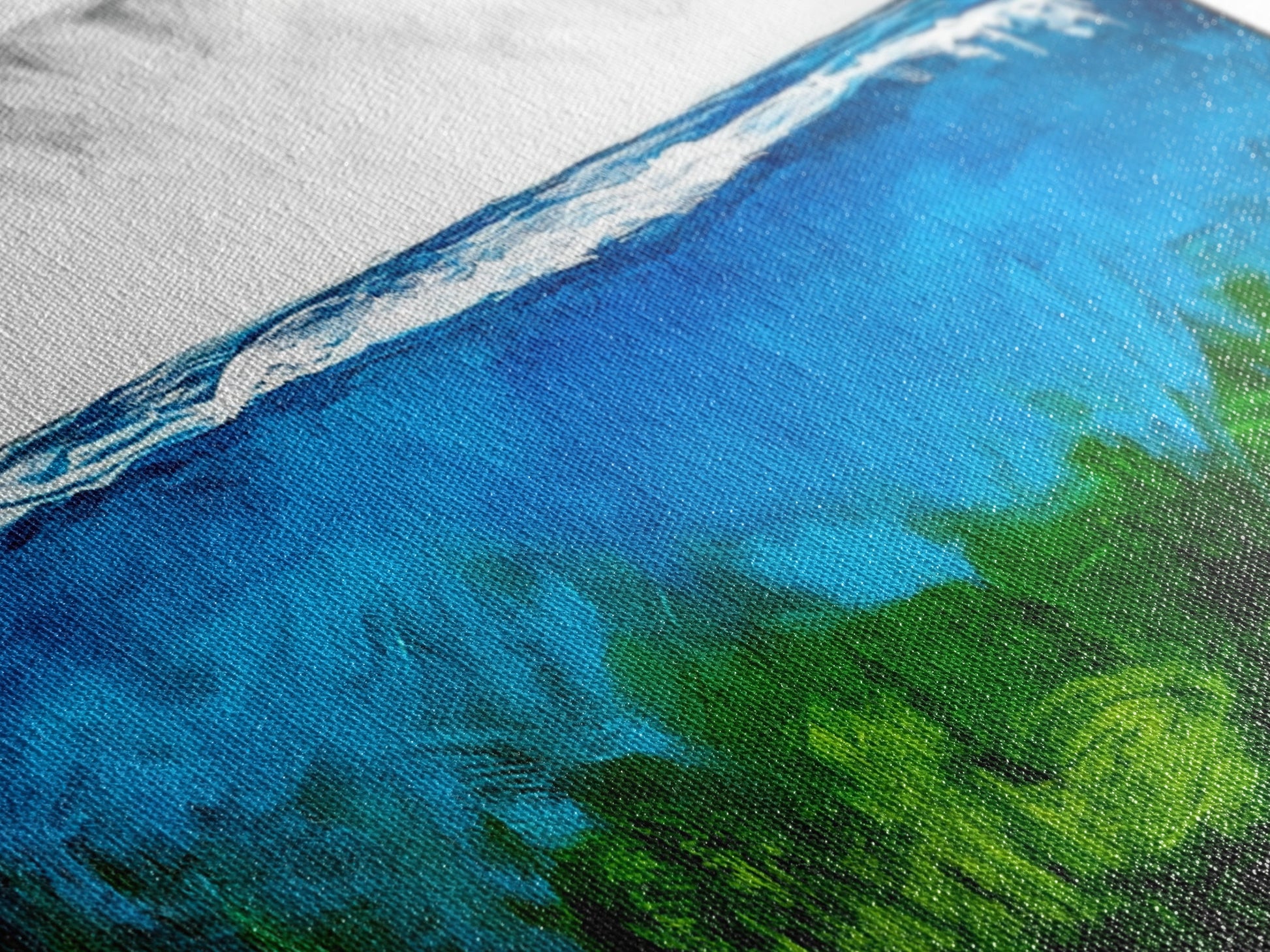 Most of our canvases are made in the USA, with the exception of canvases ordered with the light oak unstained frames, and any large canvases (24x48, 30x60, 16x48 and 20x60) ordered WITH a frame. These are temporarily made in and shipped from Europe, while we try to find a more consistent supplier in the USA.