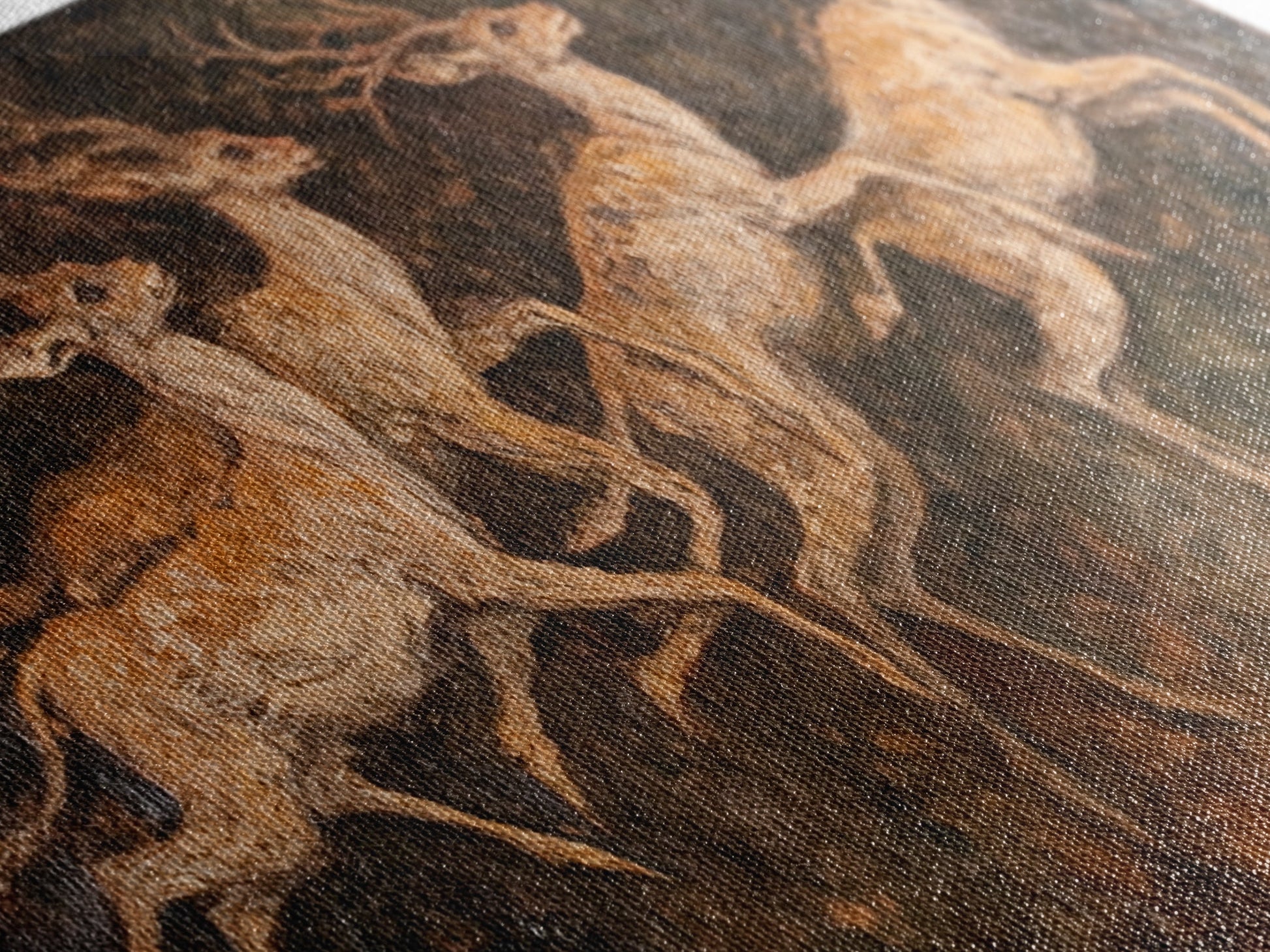 Deer In The Forest 19th Century Folk Art Style Canvas Print, Folk Art Oil Painting Print, Liminal Art, Abstract Painting Home Decor