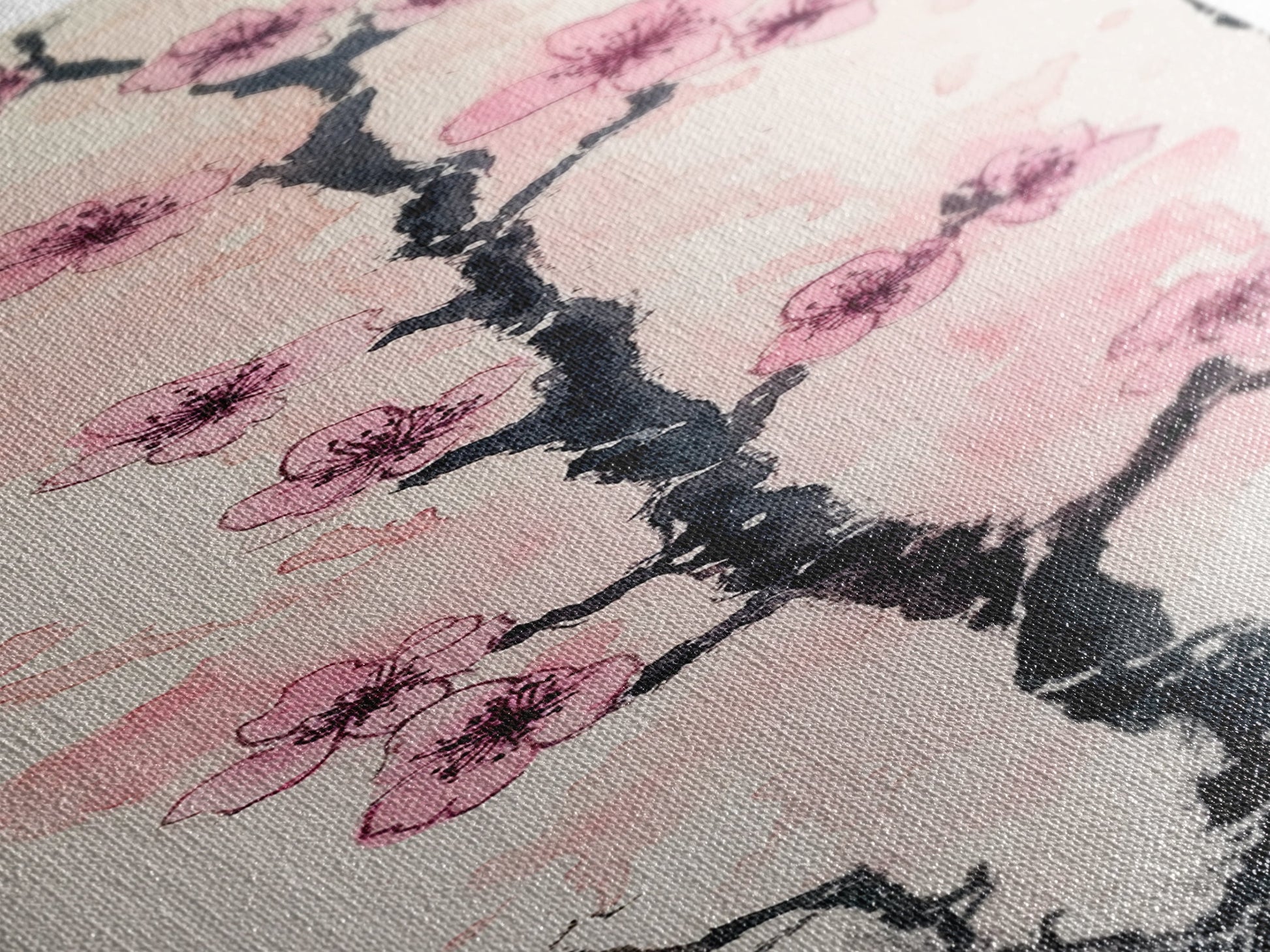 Delicate Cherry Tree in Bloom Painting - Canvas Print for Japanese Floral Art, Spring Blossom Decor, Nature-Inspired Wall Art, Botanical Print