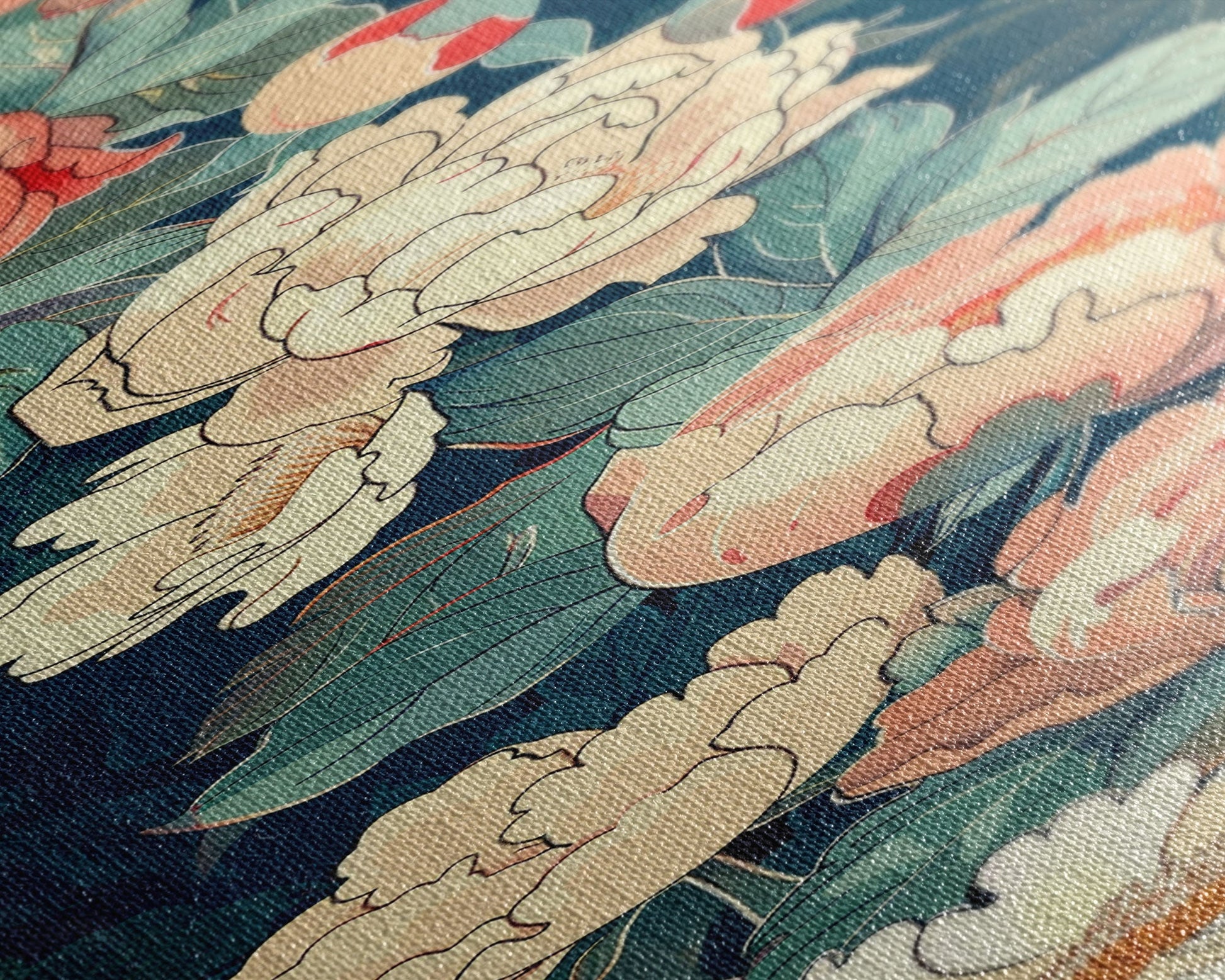 Delicate Peony Blossoms in Soft Pastel Hues on Japanese-Inspired Tall Vertical Canvas Print for Elegant Floral Decor