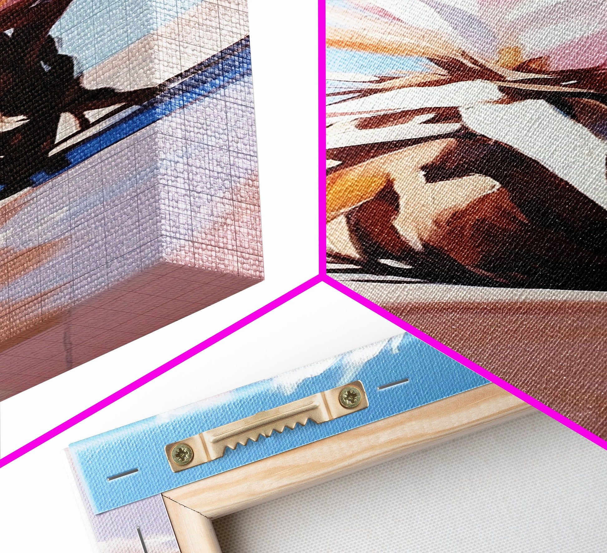 Hello and thank you for taking the time to view our modern high quality giclée artwork! We offer both posters and stretched canvas prints. Our posters are printed on Ultra Matte 60 lb / 230 GSM high quality photo paper, with a thickness of 10 mil. Our canvases are printed on museum grade 350 GSM canvas material with ECO friendly archival grade ink, then hand stretched and stapled over premium, FSC certified and shrink resistant frames. Designed and built to last a lifetime.