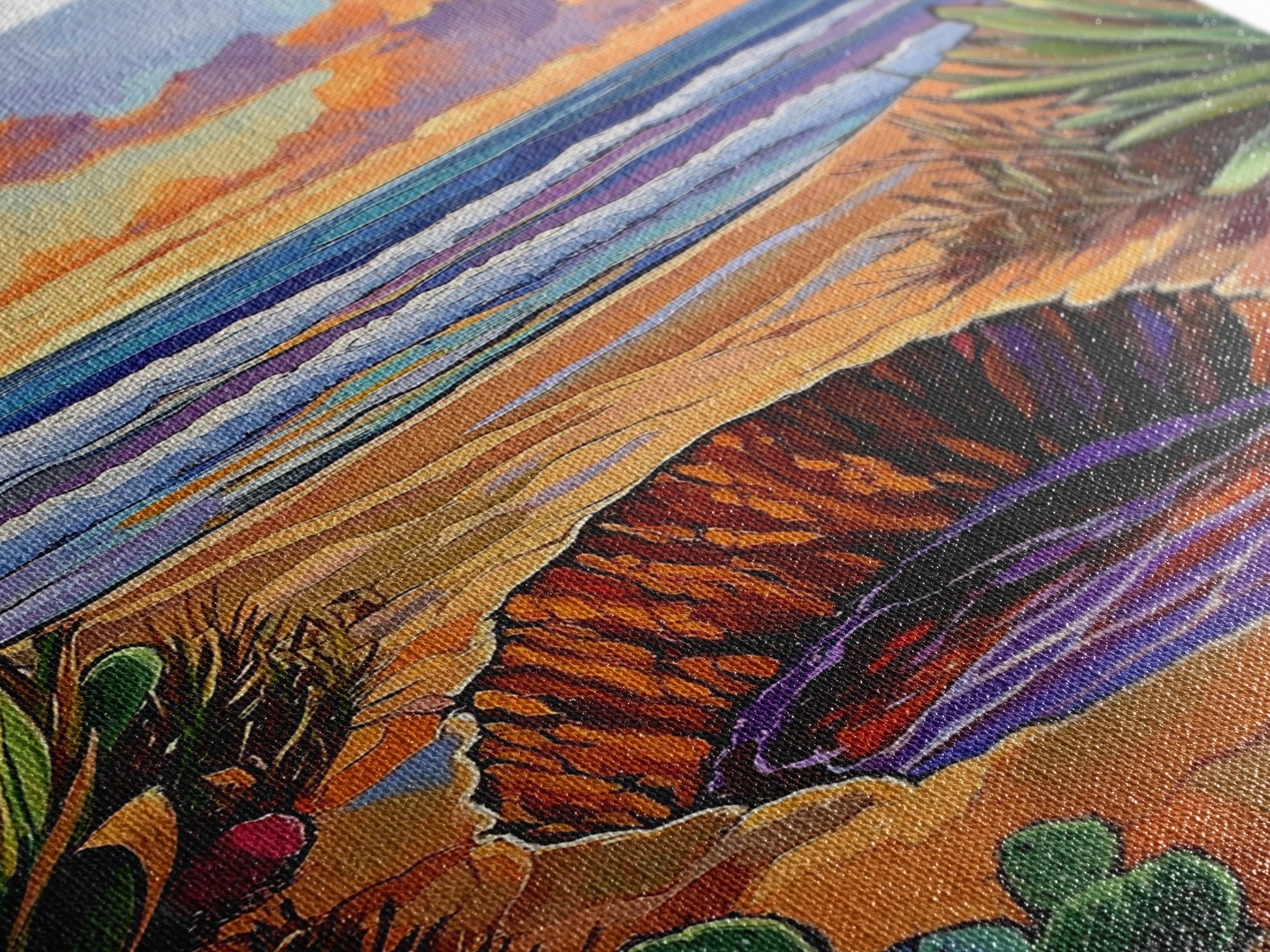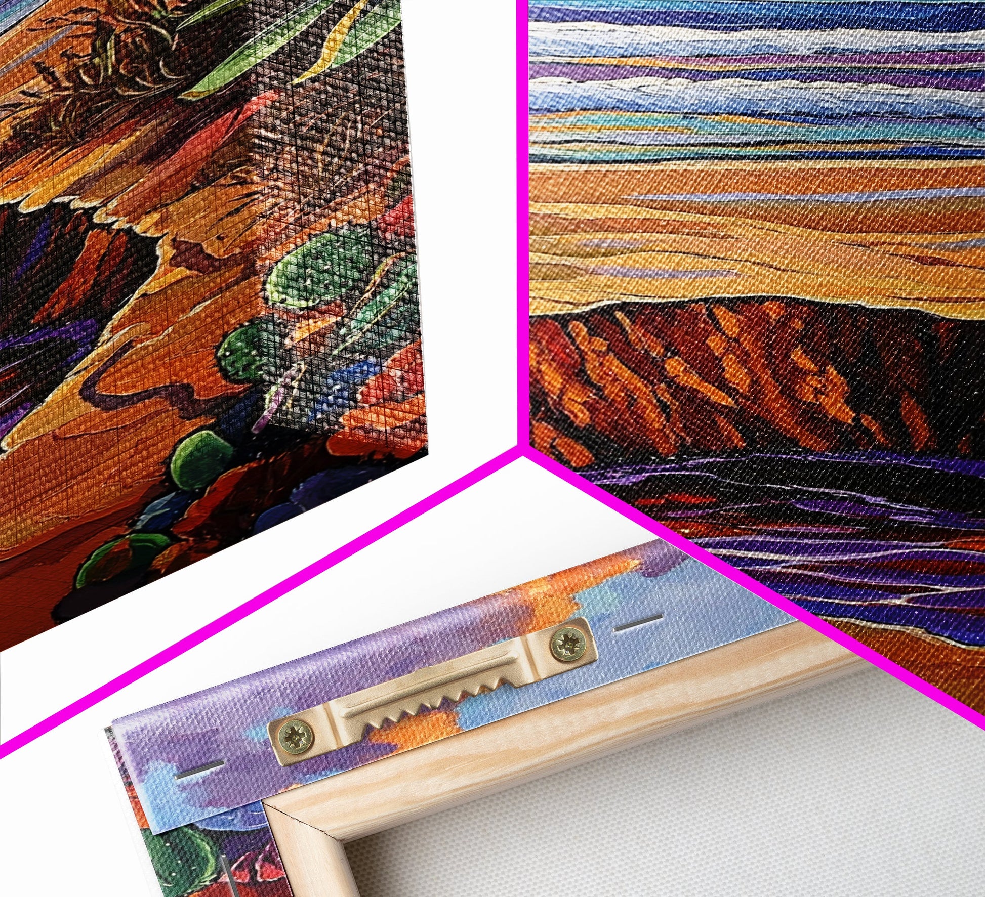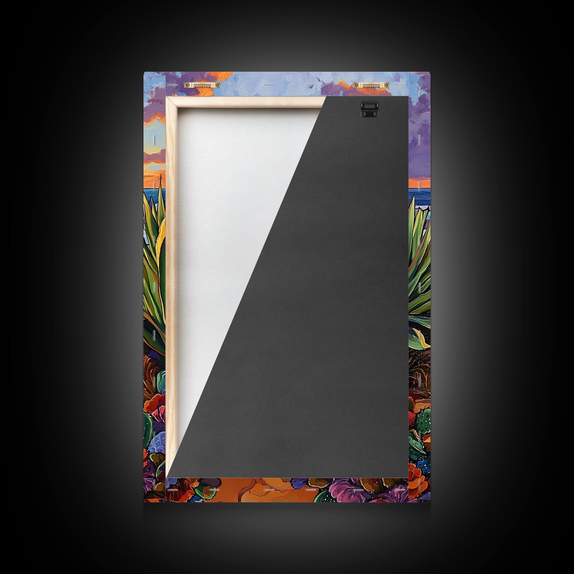 Desert Coast, Sunset Beach, Nature Hole, Surreal Art, Framed Canvas Print, Bedroom Wall Art, trippy boho decor, colorful landscape